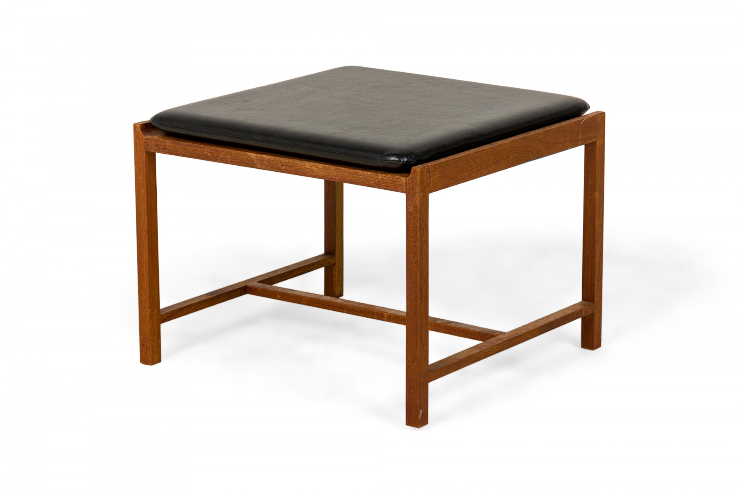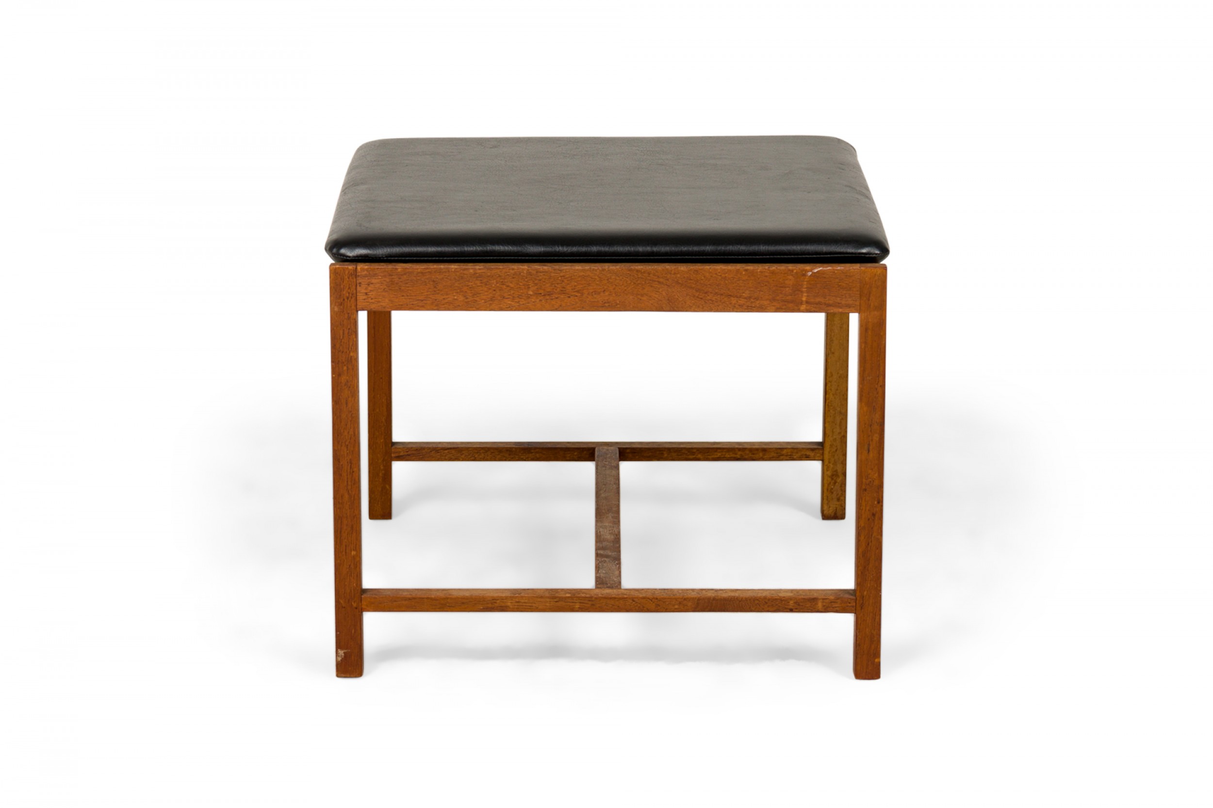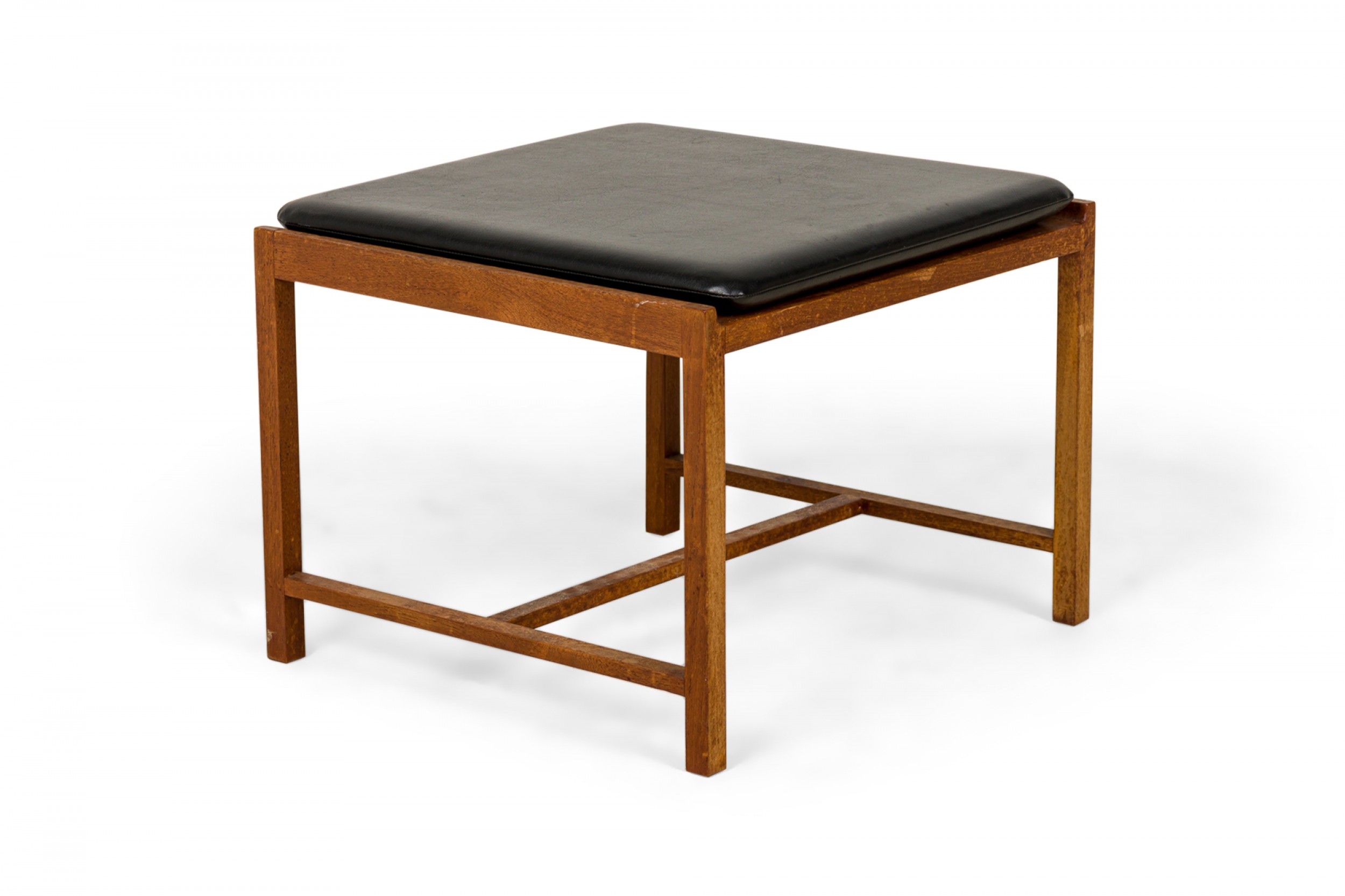 SET of 3 Norwegian Mid-Century low stools / side tables with rectangular walnut frames with stretcher bases, topped with black leather upholstered seats / tops. (INGMAR RELLING FOR BROTHERS BINDEIM)(PRICED AS SET).