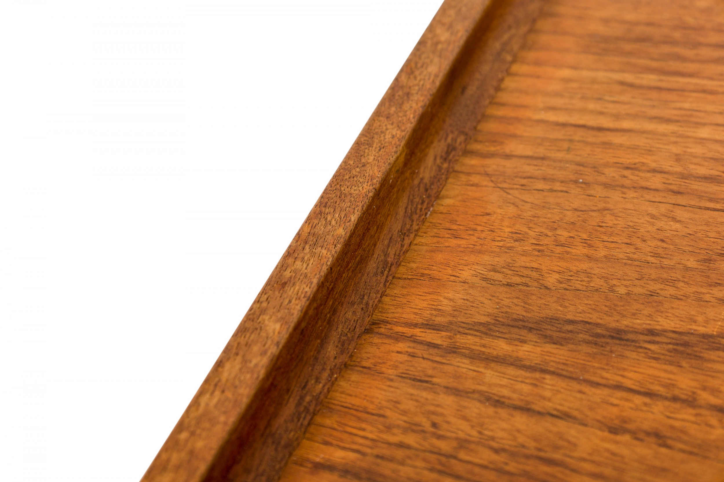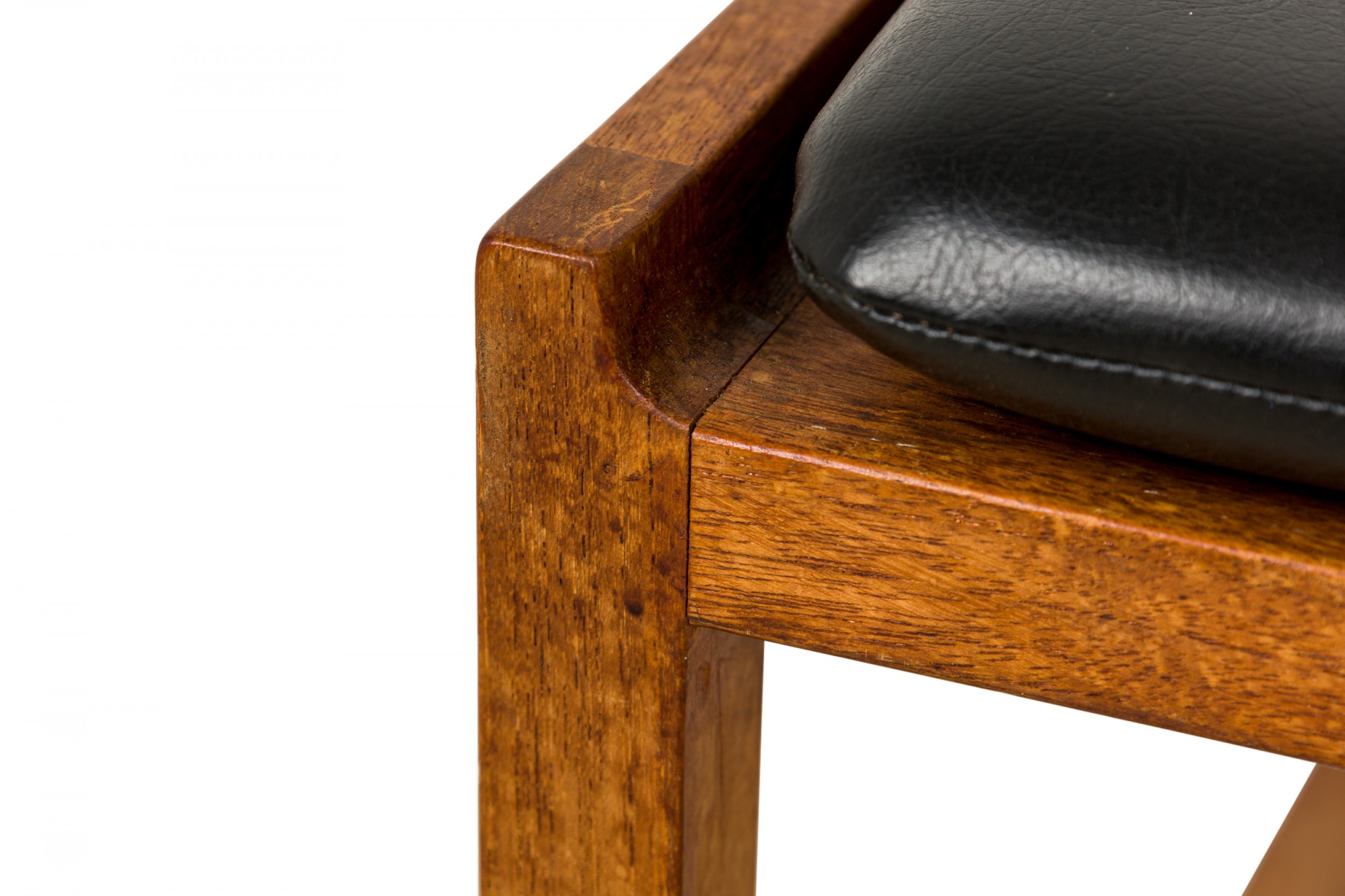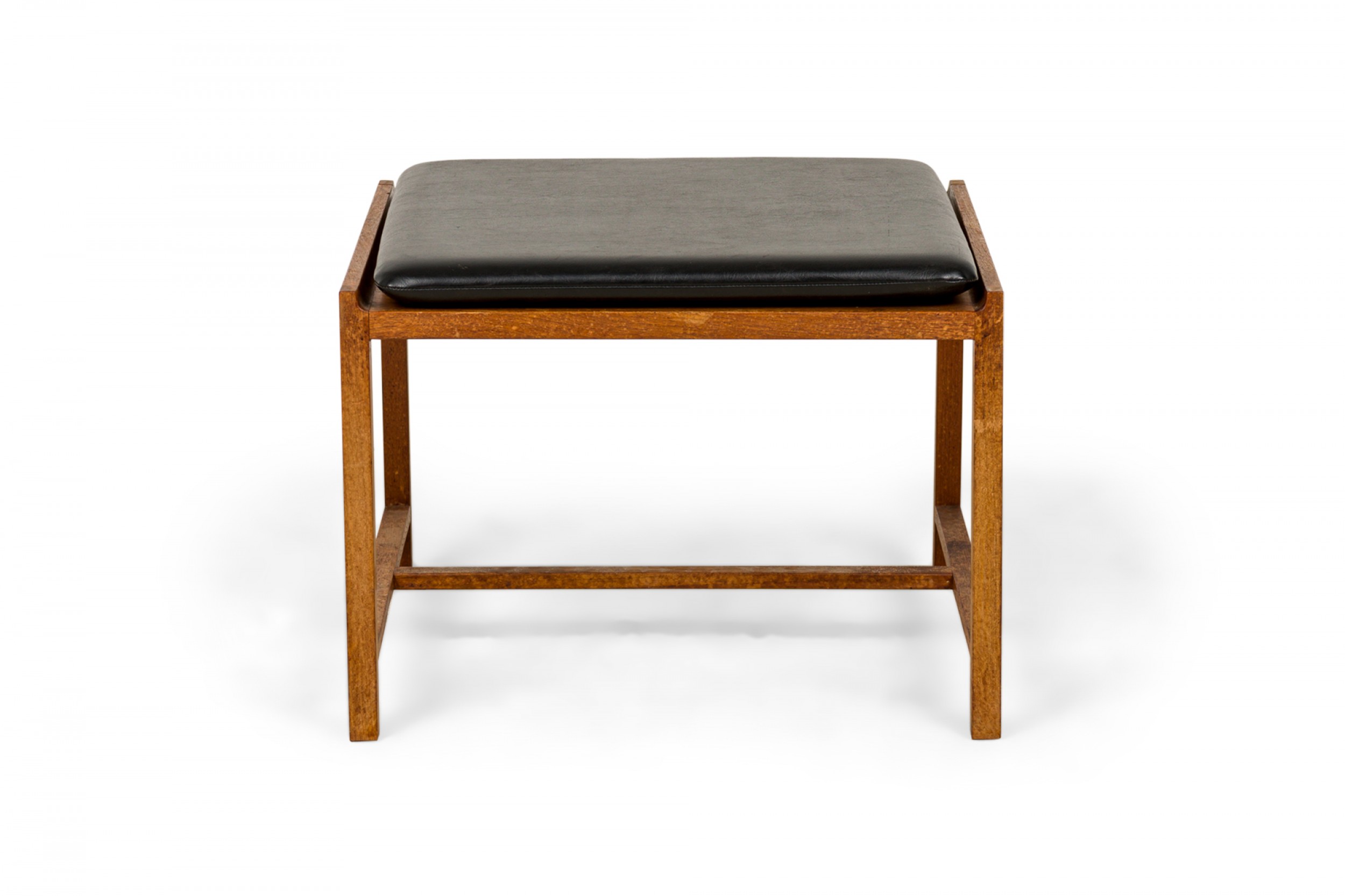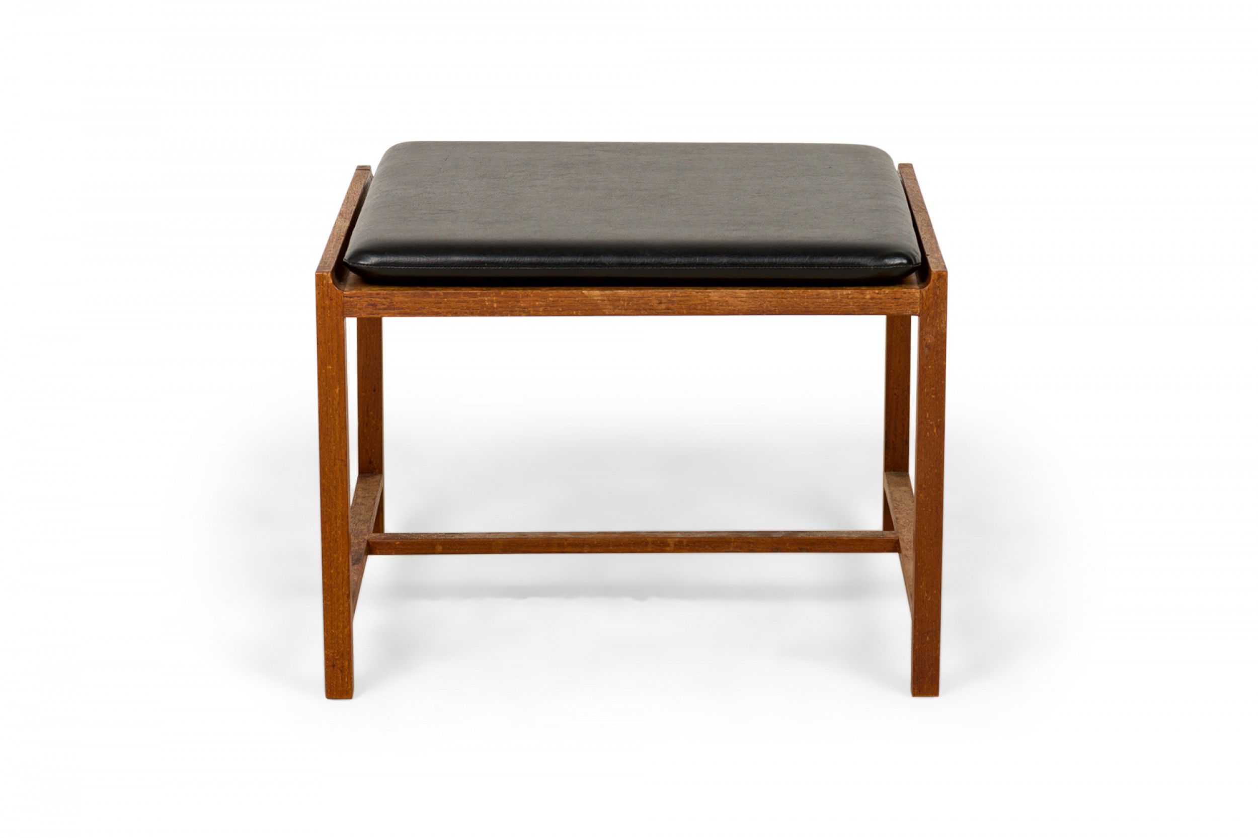 SET of 3 Norwegian Mid-Century low stools / side tables with rectangular walnut frames with stretcher bases, topped with black leather upholstered seats / tops. (INGMAR RELLING FOR BROTHERS BINDEIM)(PRICED AS SET).