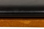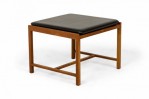 Style: Mid-Century Materials & Techniques: Leather, upholstered, walnut, wood Category: Tables Good; Wear consistent with age and use