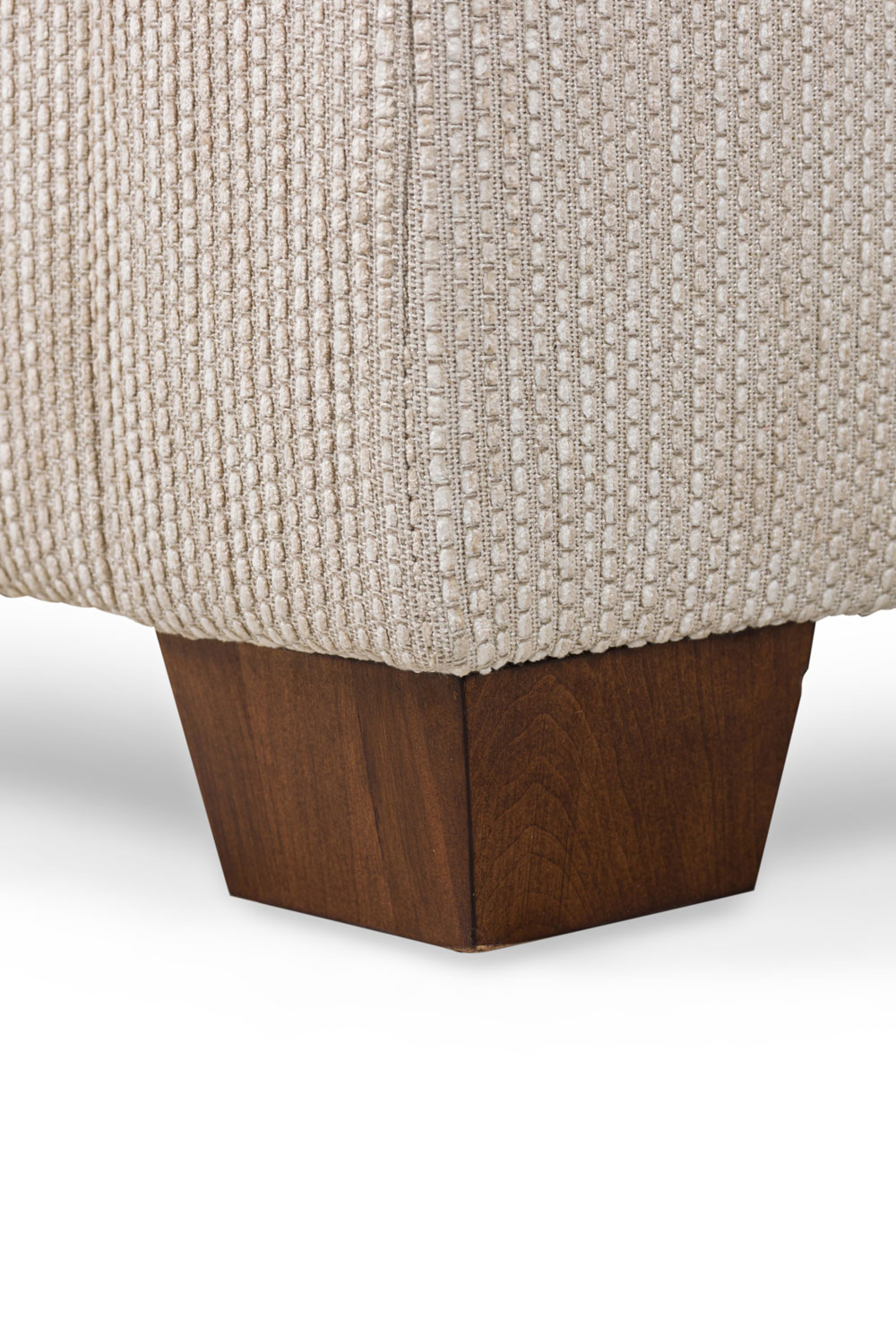 SET of 3 American Contemporary club chairs upholstered in off-white chinille fabric with loose boxed border seat cushion resting on mahogany stained tapered boxed legs (style of JEAN MICHEL FRANK)(PRICED AS SET) (AVAILABLE INDIVIDUALLY)