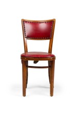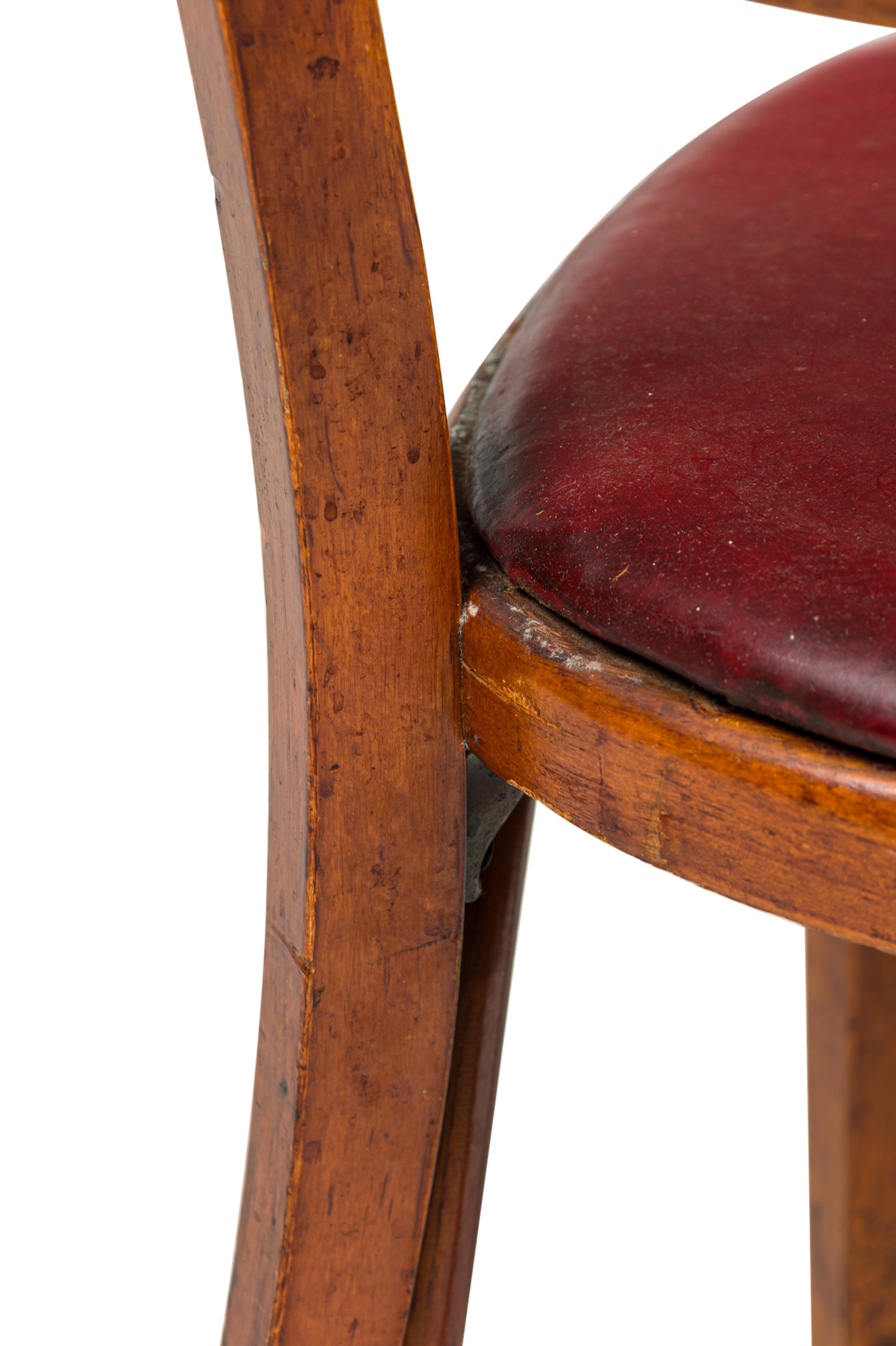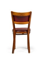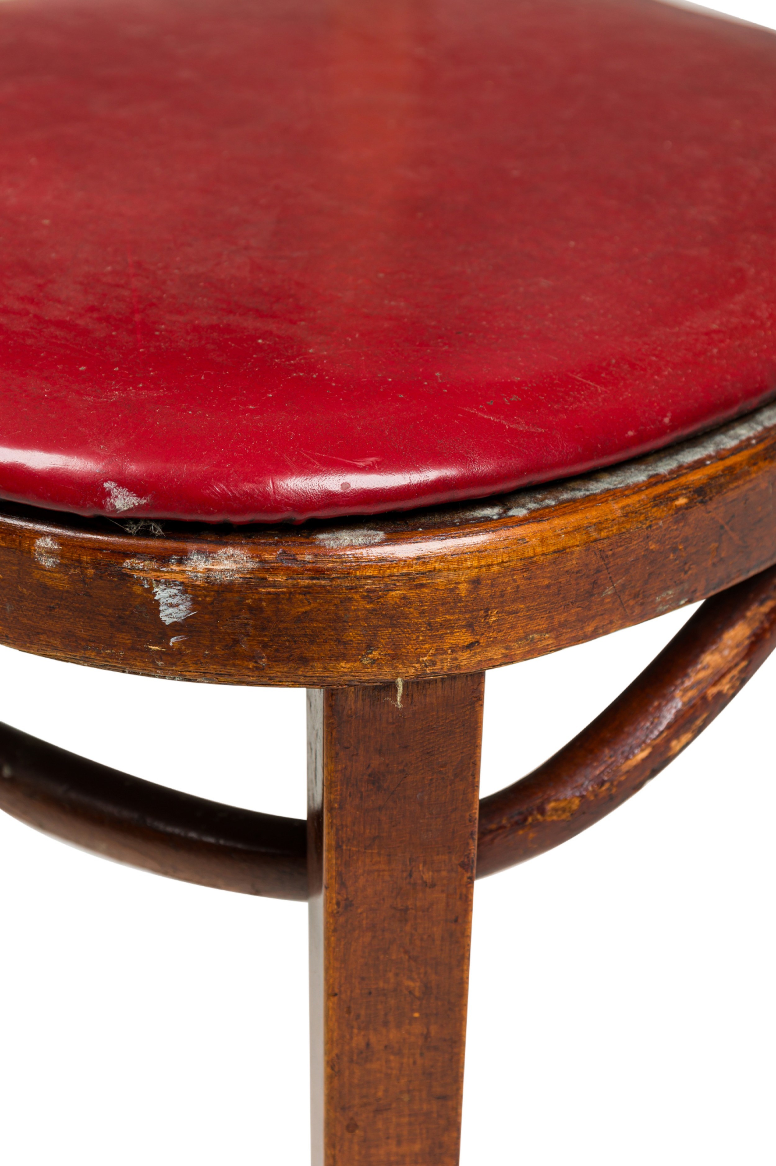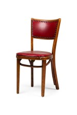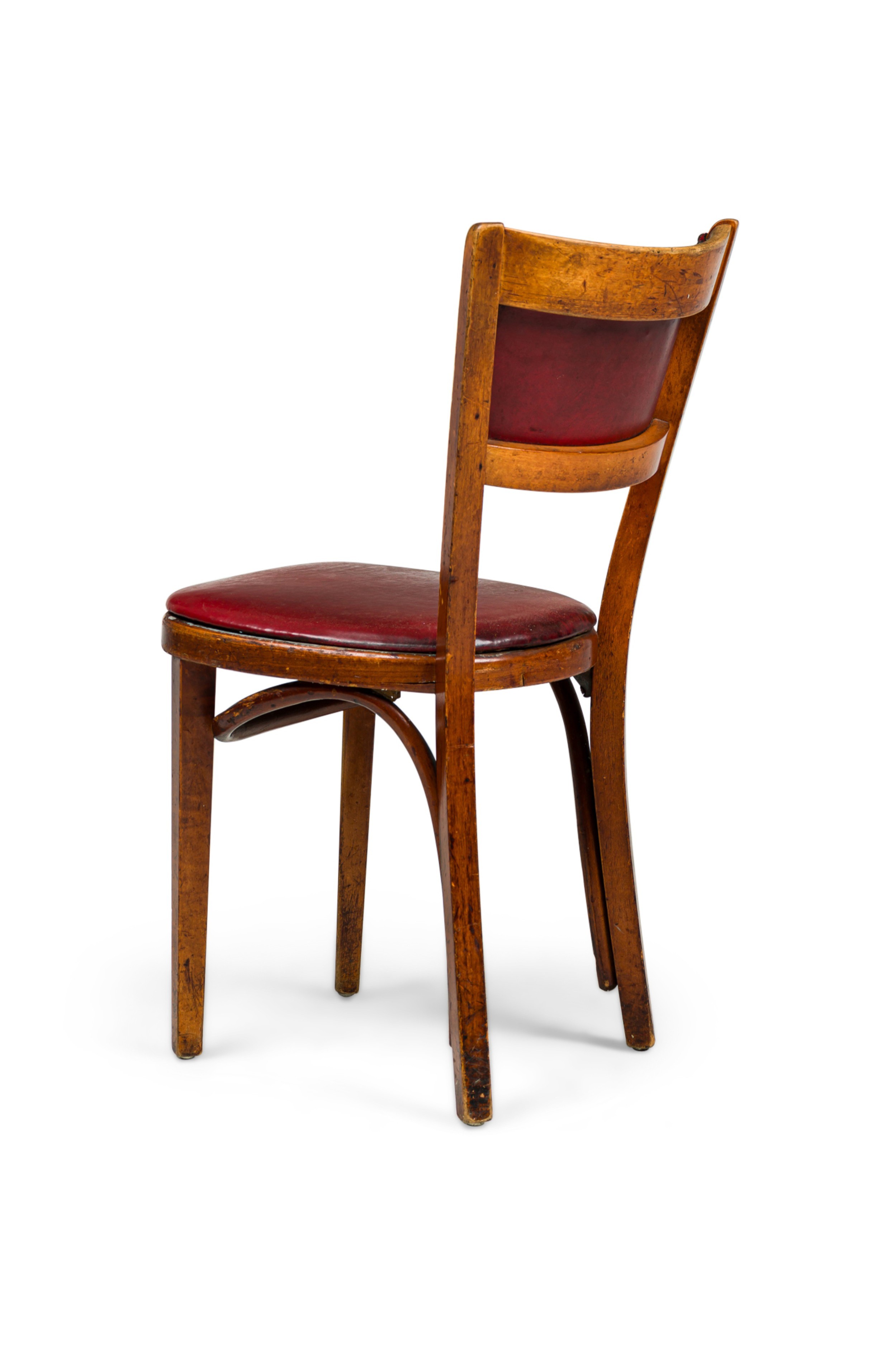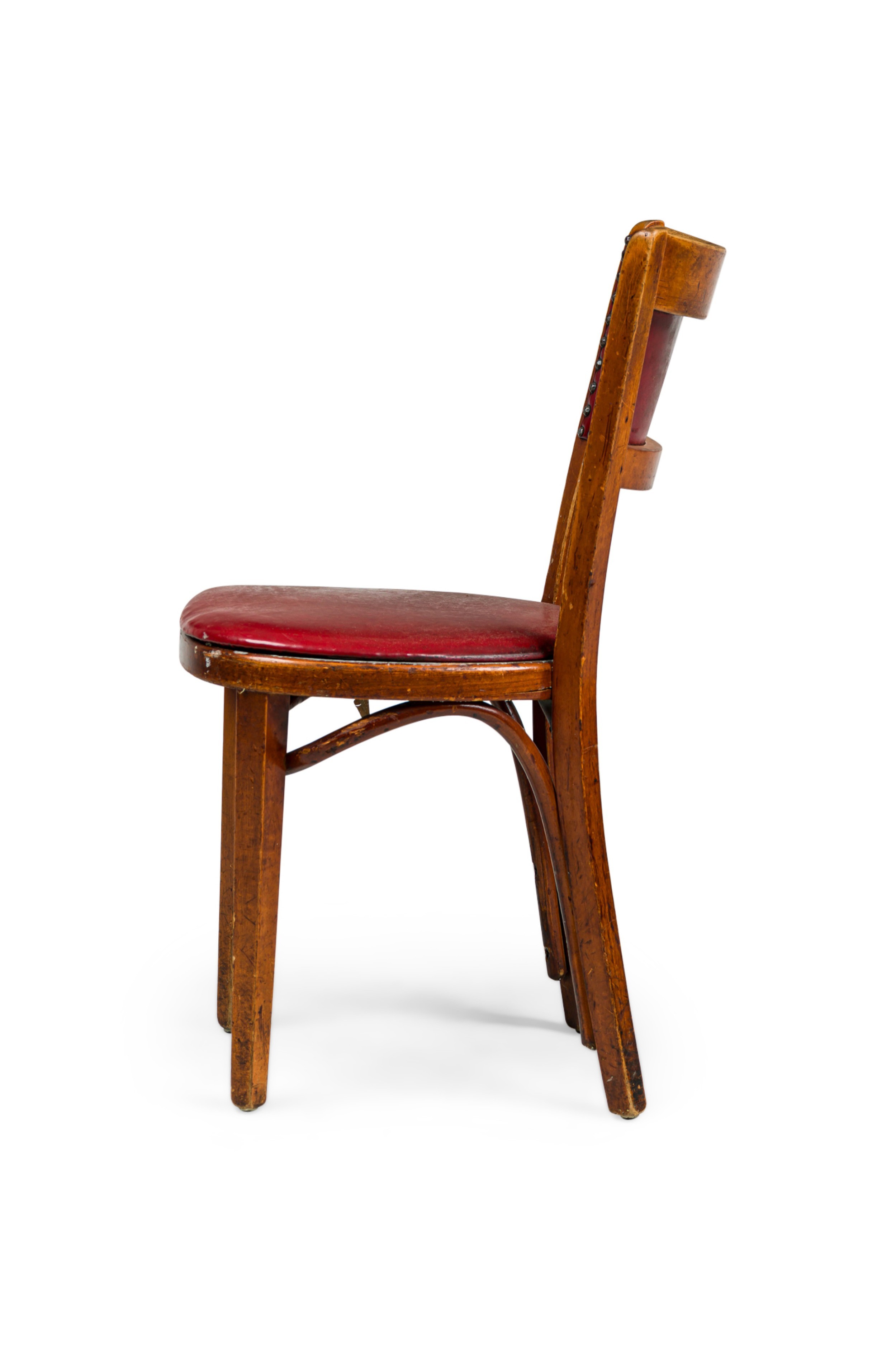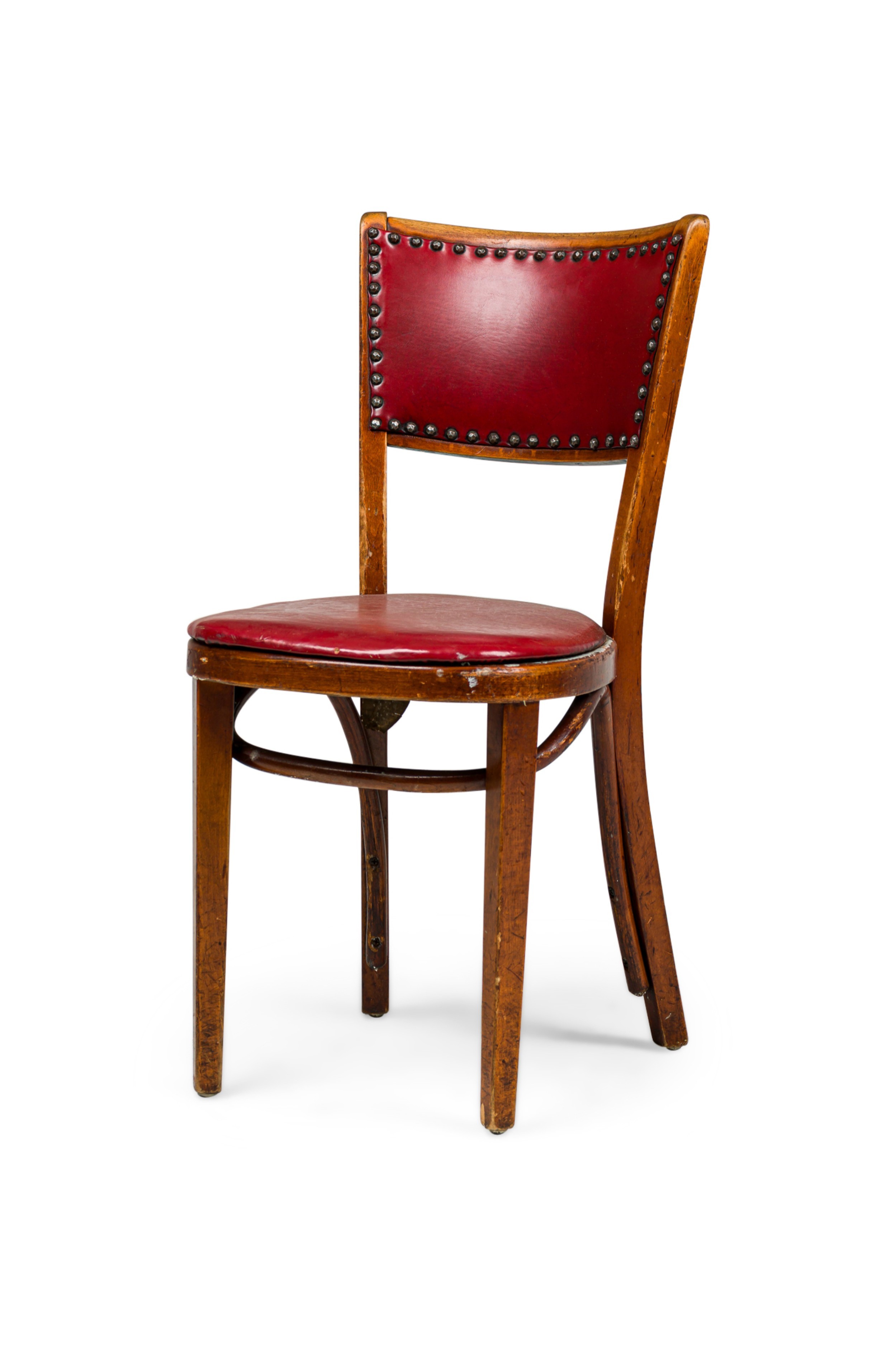 30 American Mid-Century dining side chairs with a red vinyl seat and back with naihead trim and having a bentwood stretcher (PRICED EACH) (similar set of 18-NWL7232).