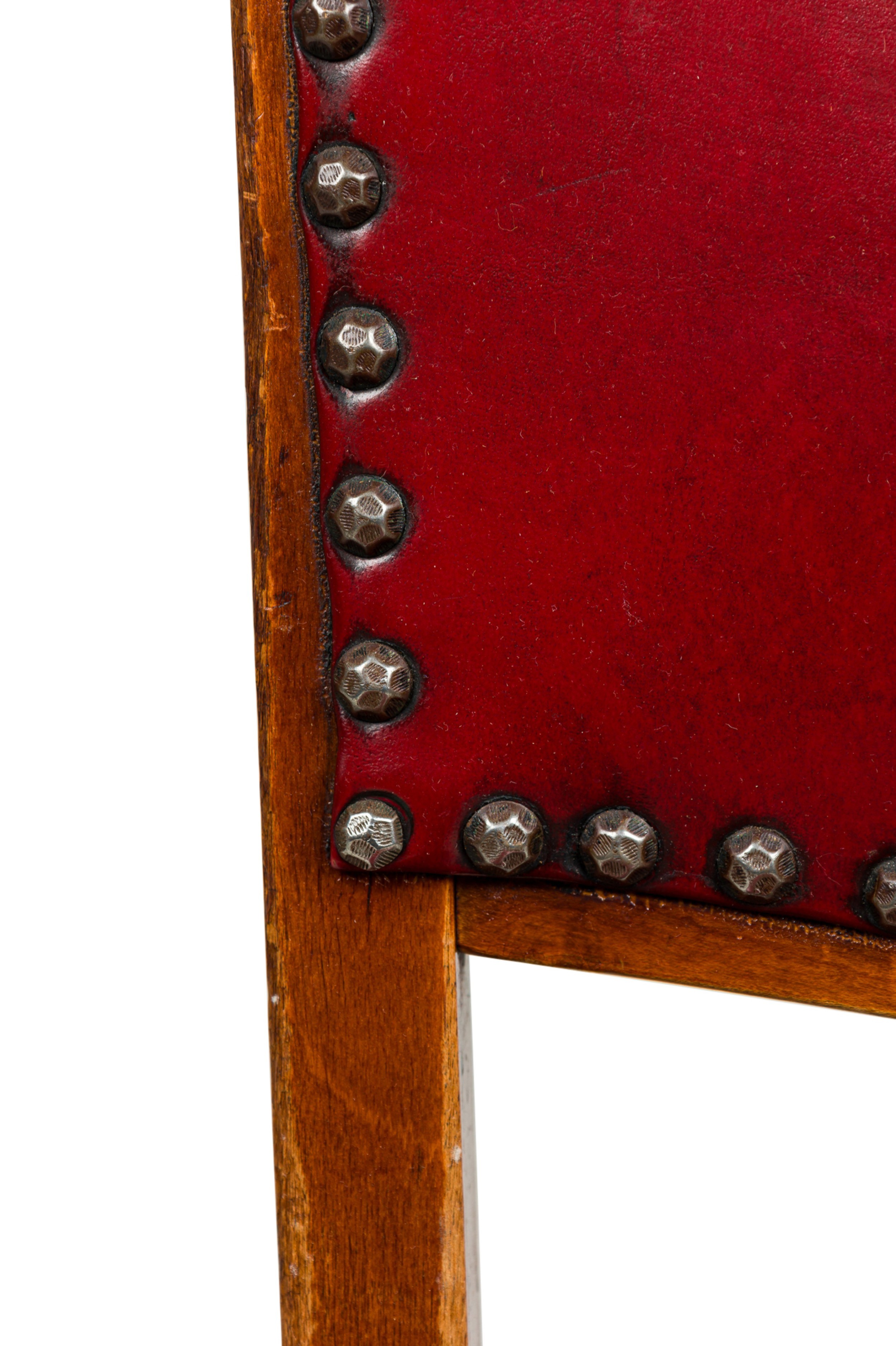 30 American Mid-Century dining side chairs with a red vinyl seat and back with naihead trim and having a bentwood stretcher (PRICED EACH) (similar set of 18-NWL7232)