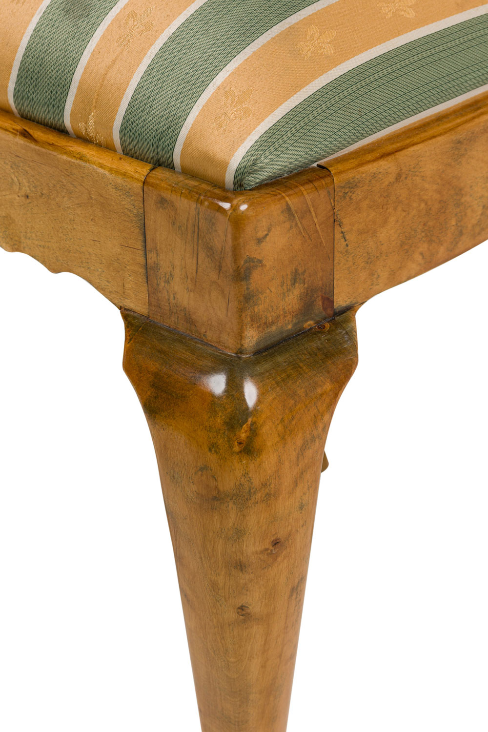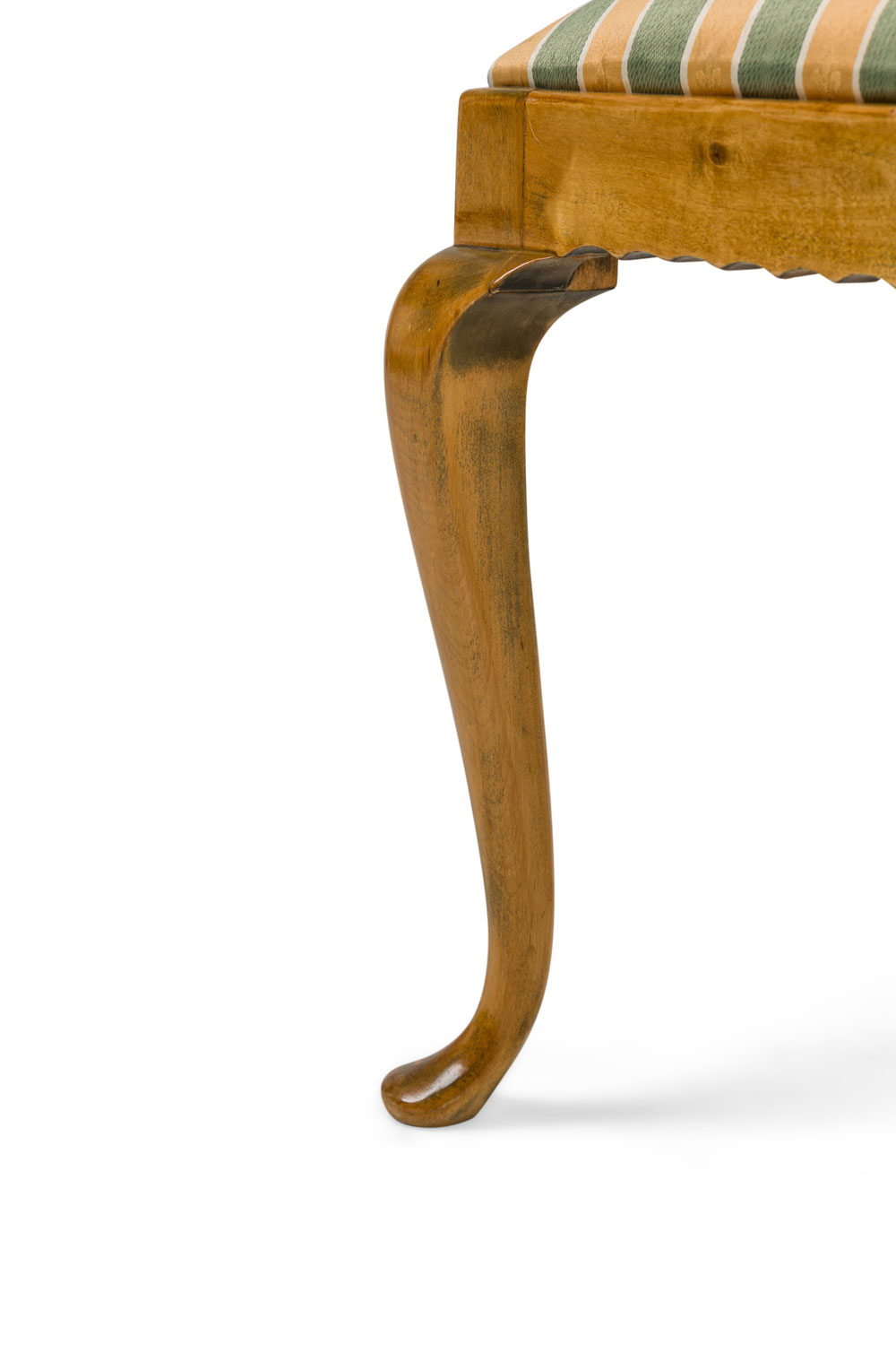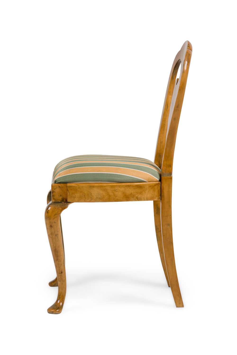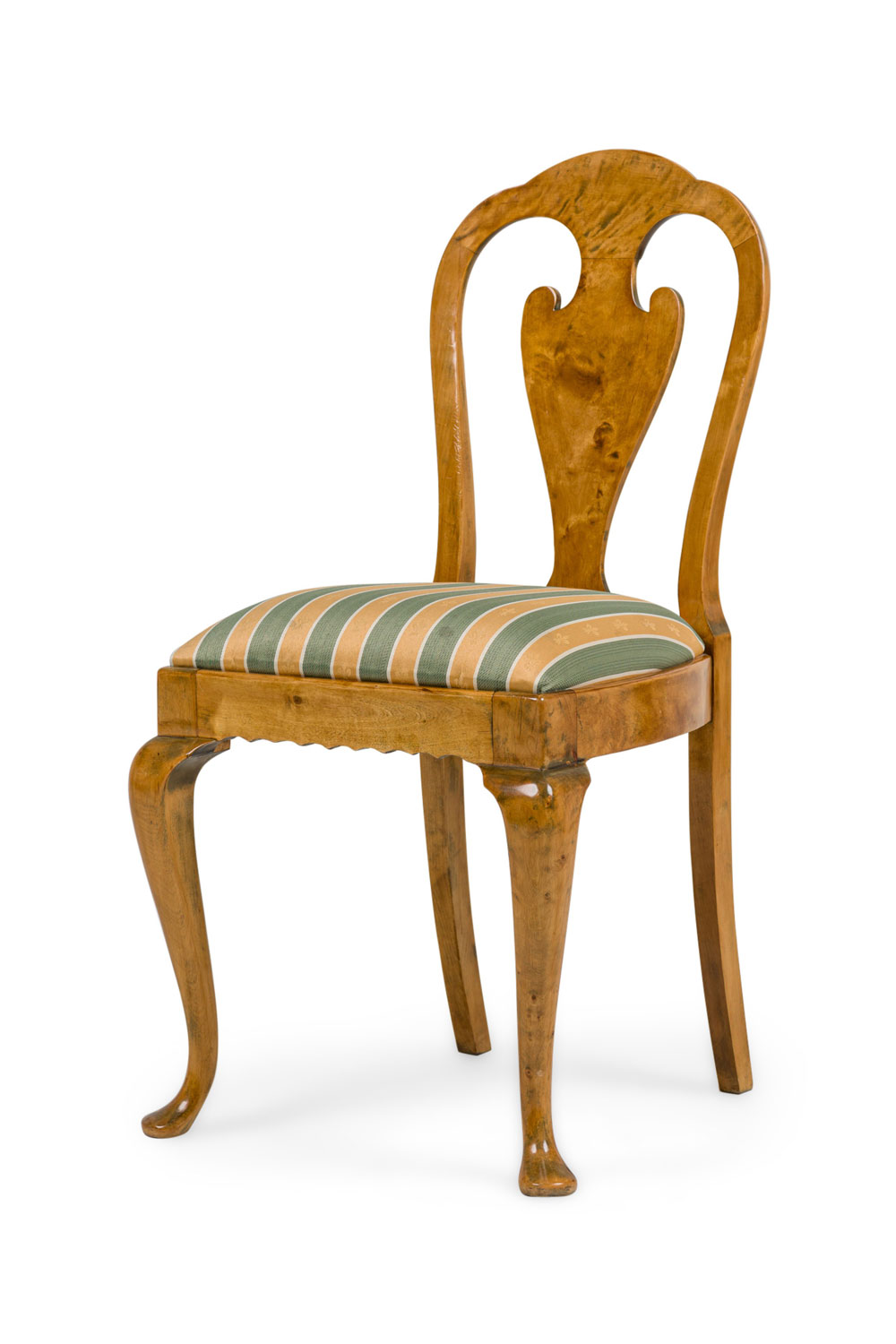SET of 4 English Queen Anne style (20th Century) side chairs with a green and cream vertical stripped upholstered slipseat cushion with an open splat form back (PRICED AS SET)