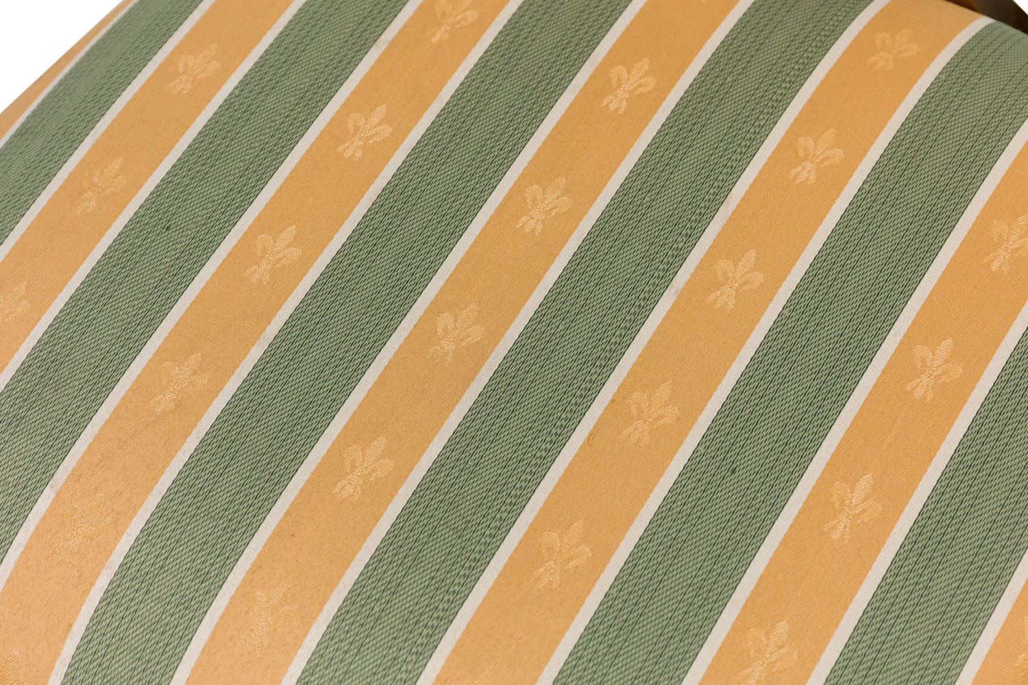 Style: English Materials & Techniques: Fabric, wood Category: Seating, Office/Library, Dining Room Condition: Good condition consistent with age and use