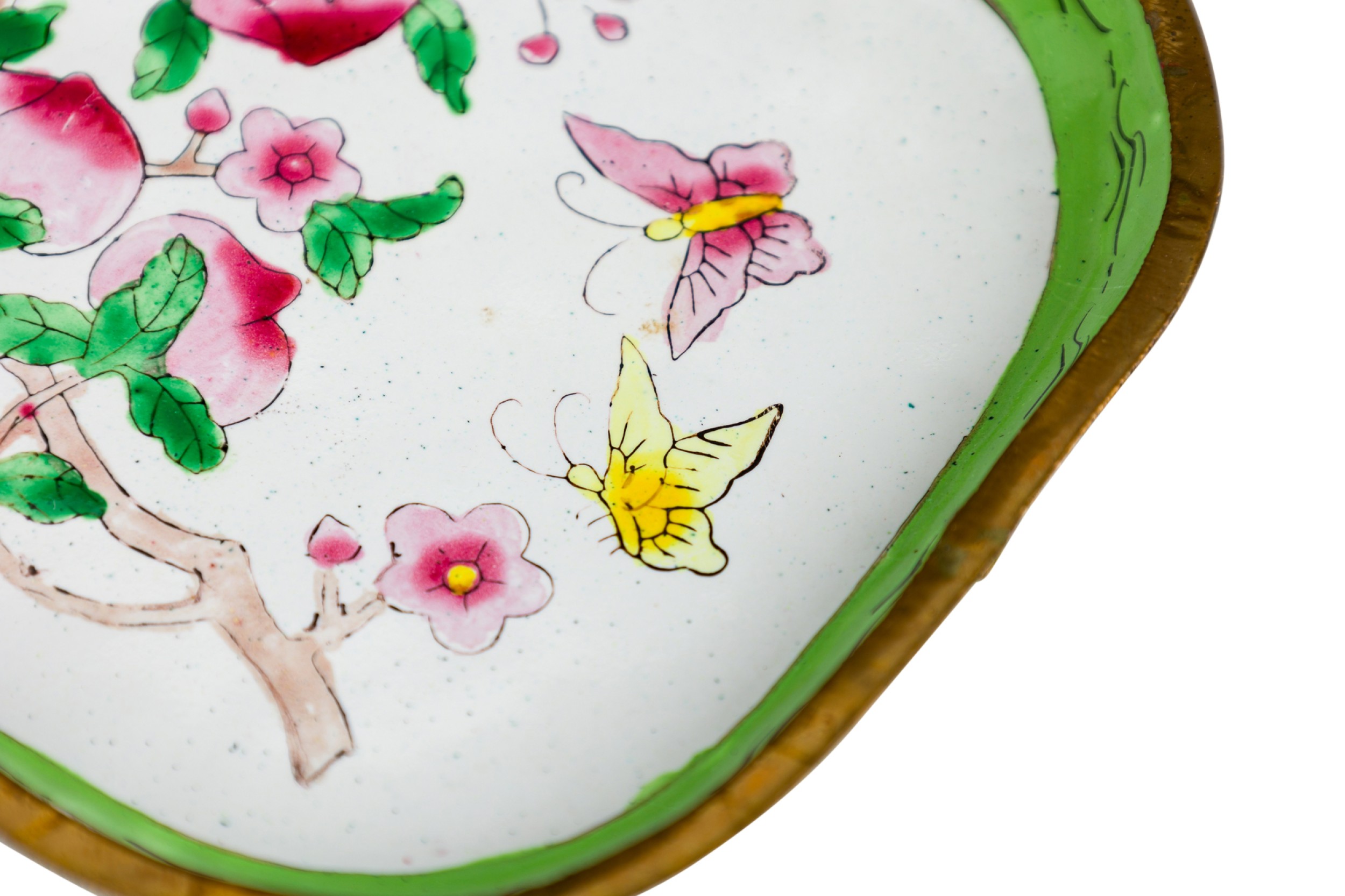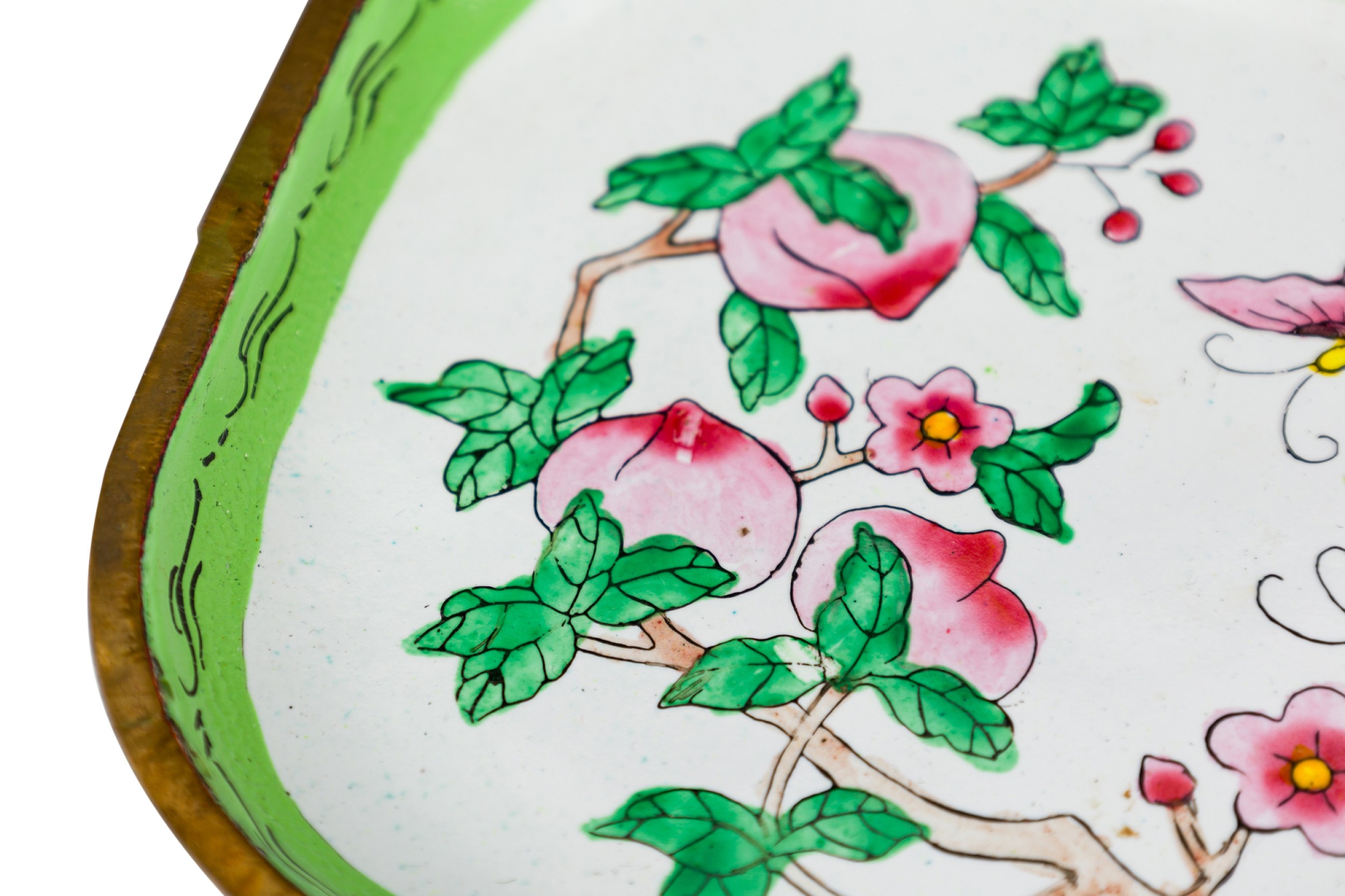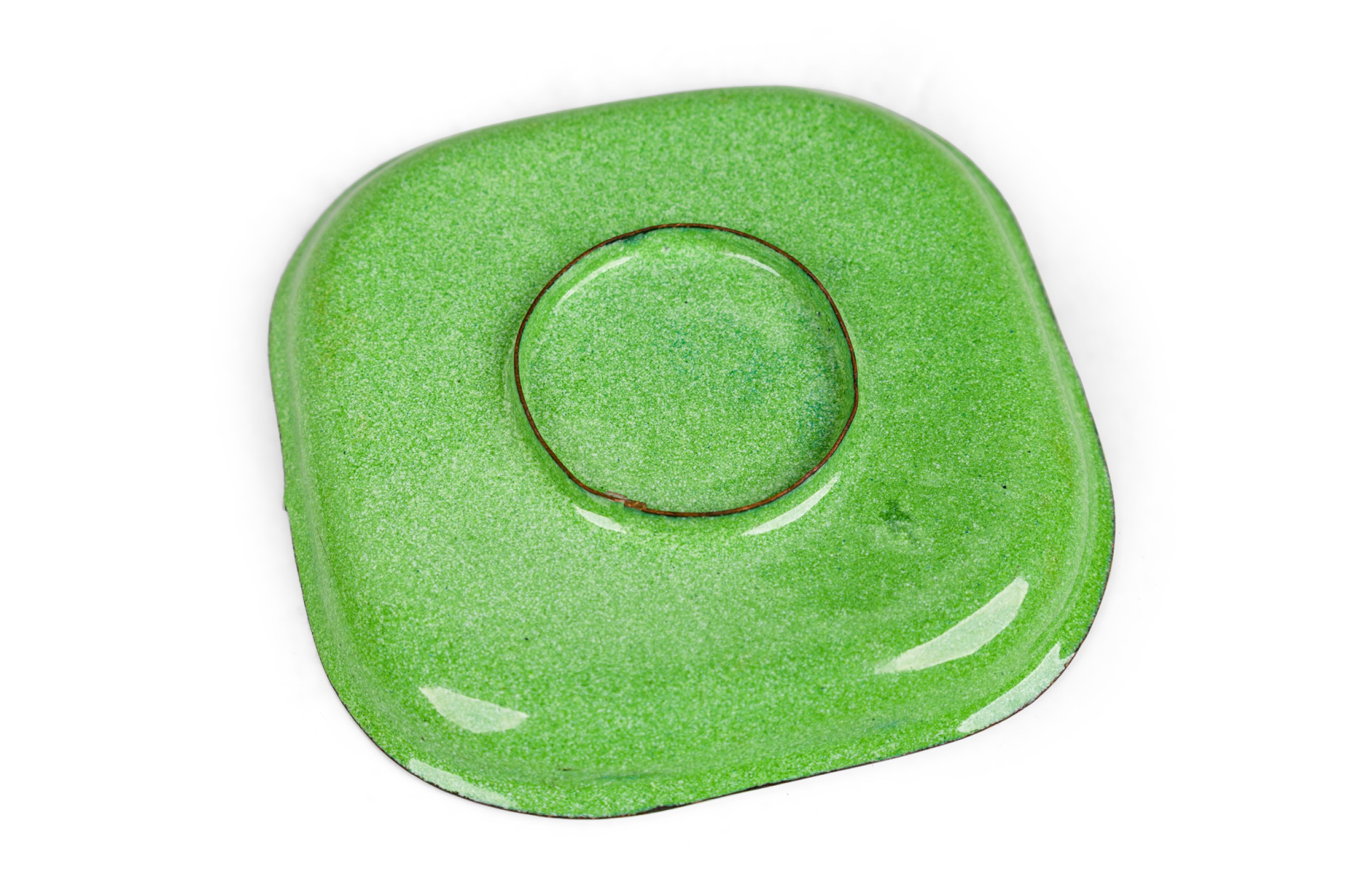 SET of 4 French Victorian green and white enamel on copper square shaped plates with a floral design (PRICED AS SET)