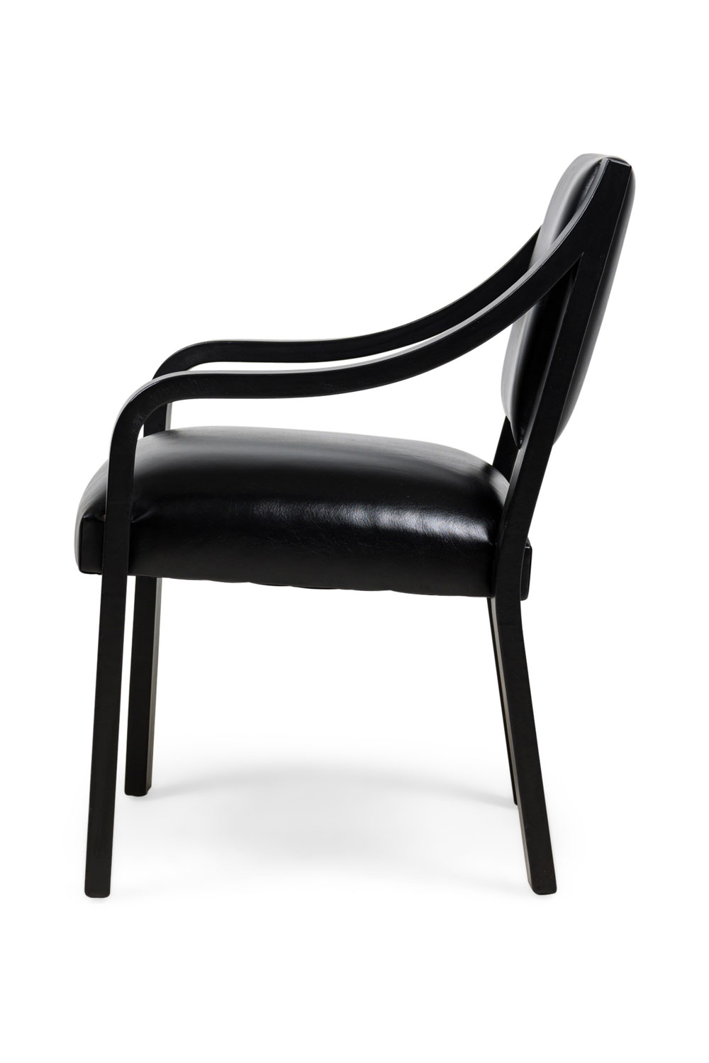 SET of 4 American mid-century black leather armchairs with black leather wrapped frame, seat and backrest (KARL SPRINGER LTD) (PRICED AS SET)