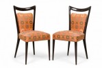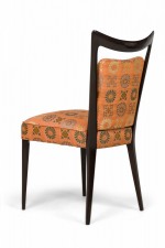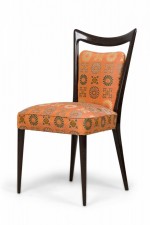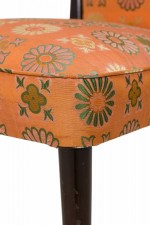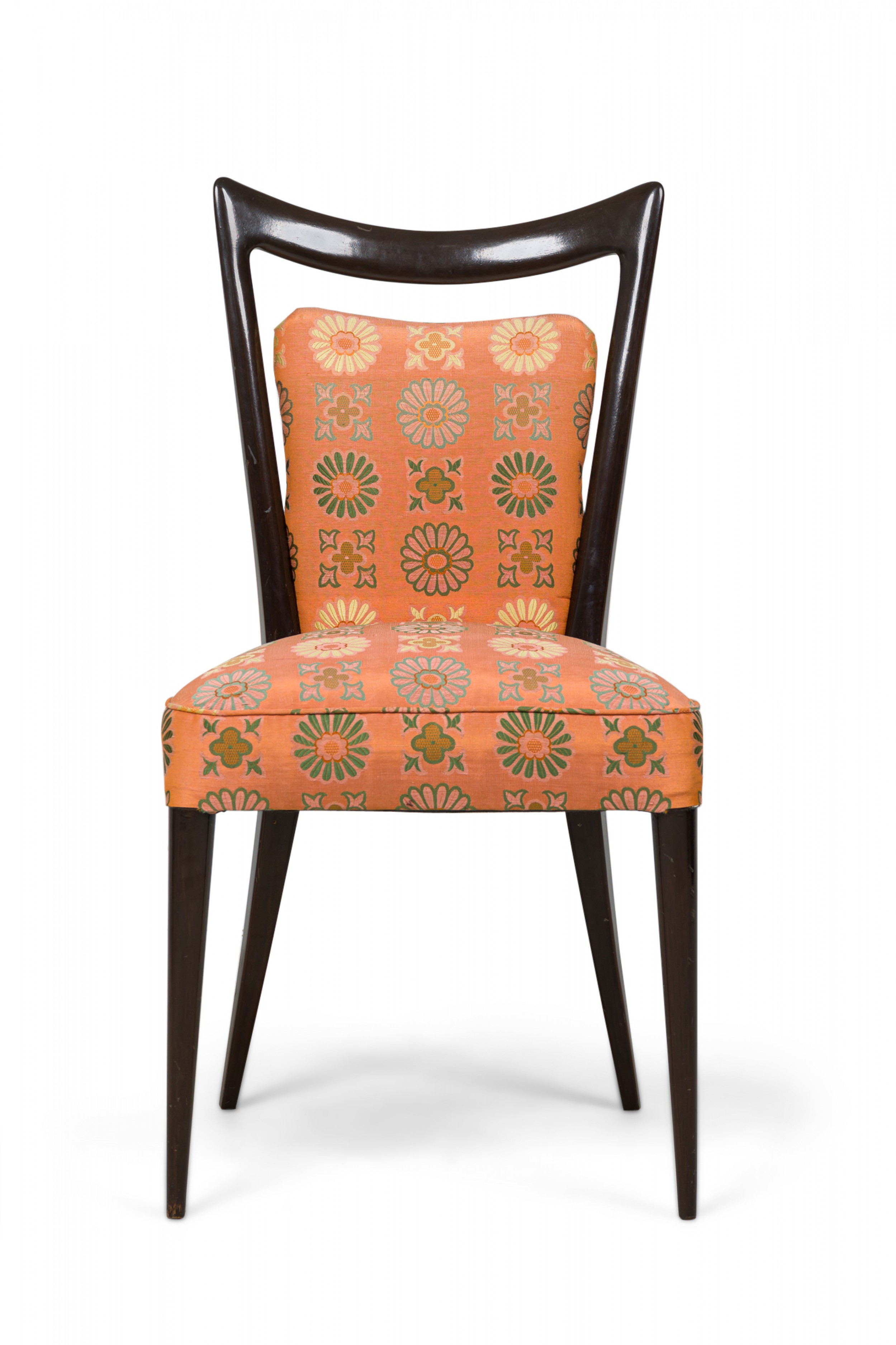 SET of 4 Mid-Century (1950s) Italian dining side chairs with molded backs, upholstered in a peach floral patterned fabric, standing on 4 tapered conical legs. (MELCHIORRE BEGA) (PRICED AS SET) (Similar set of 6 chairs: REG4090B).