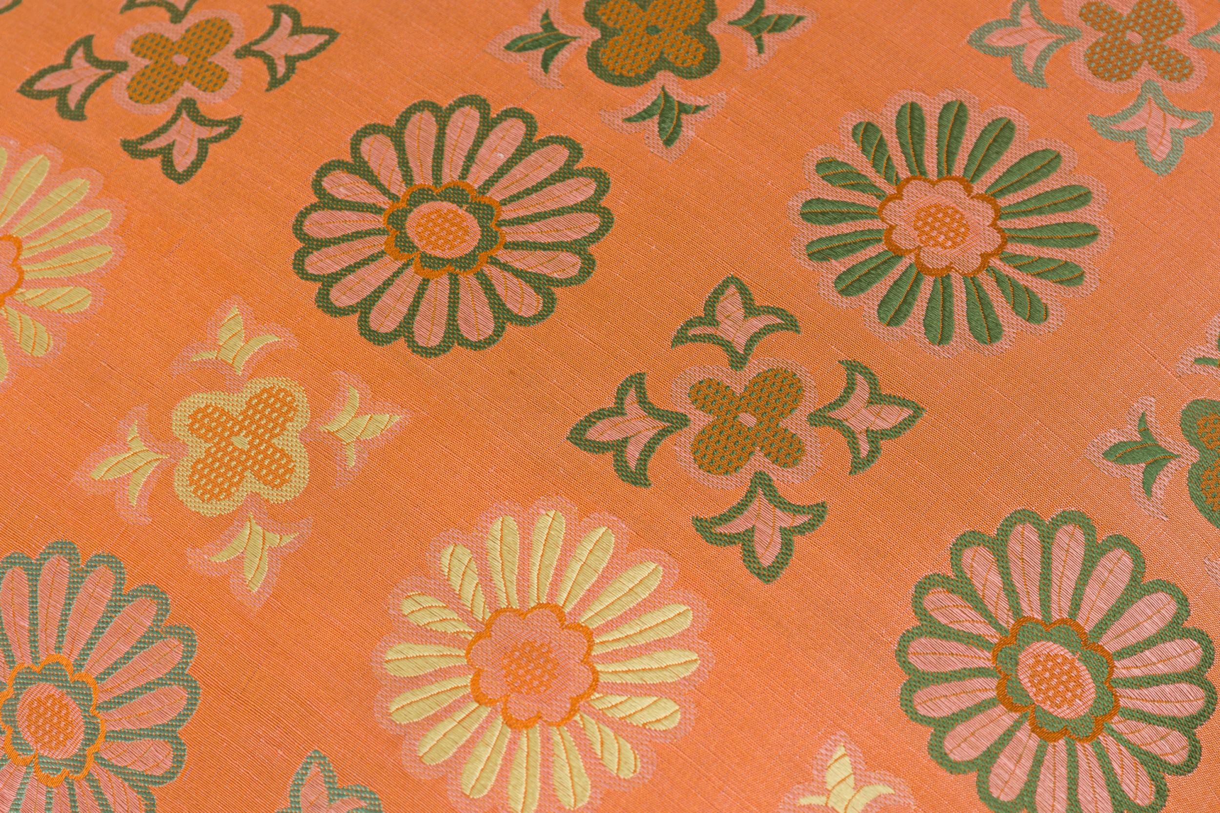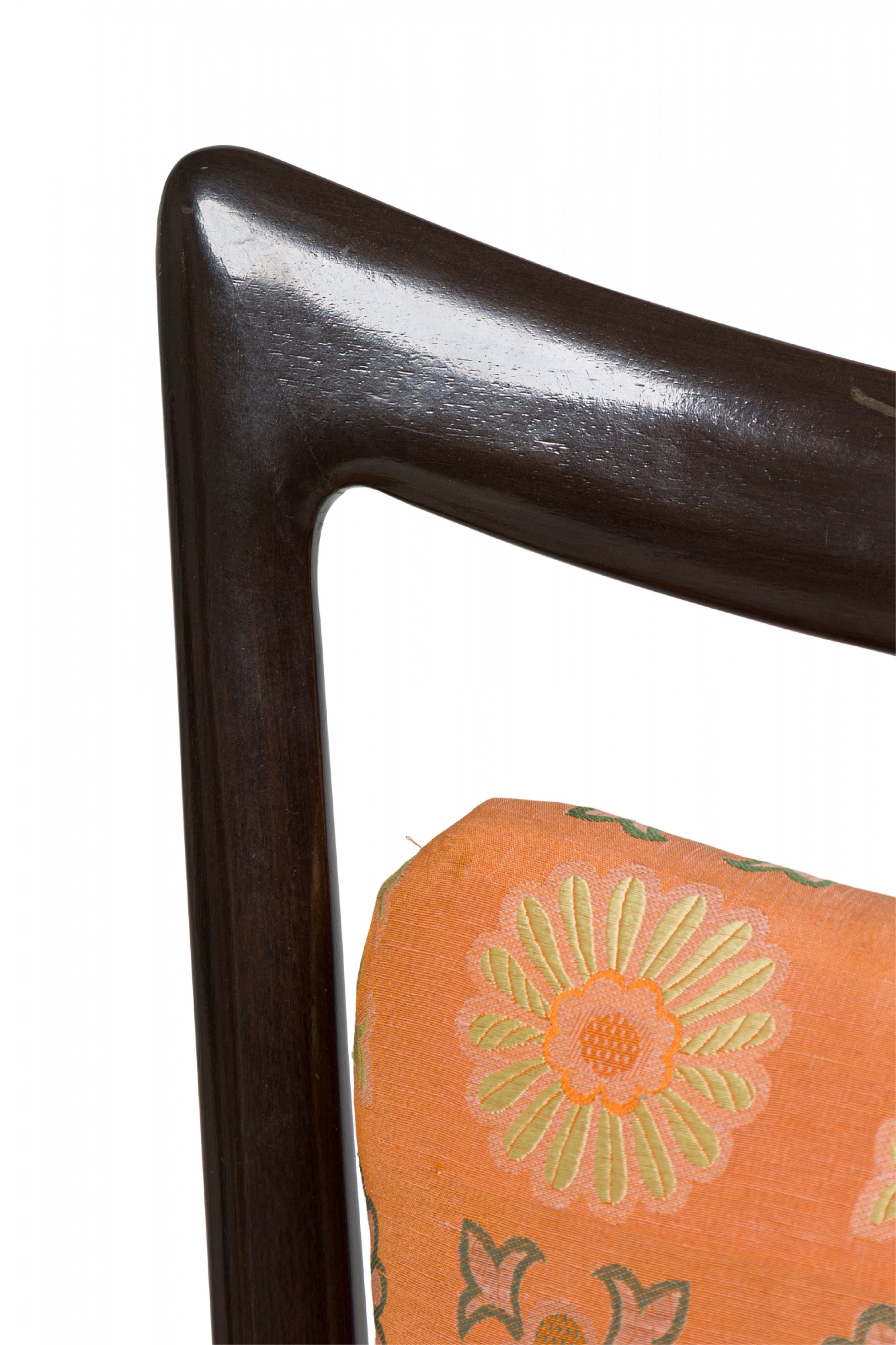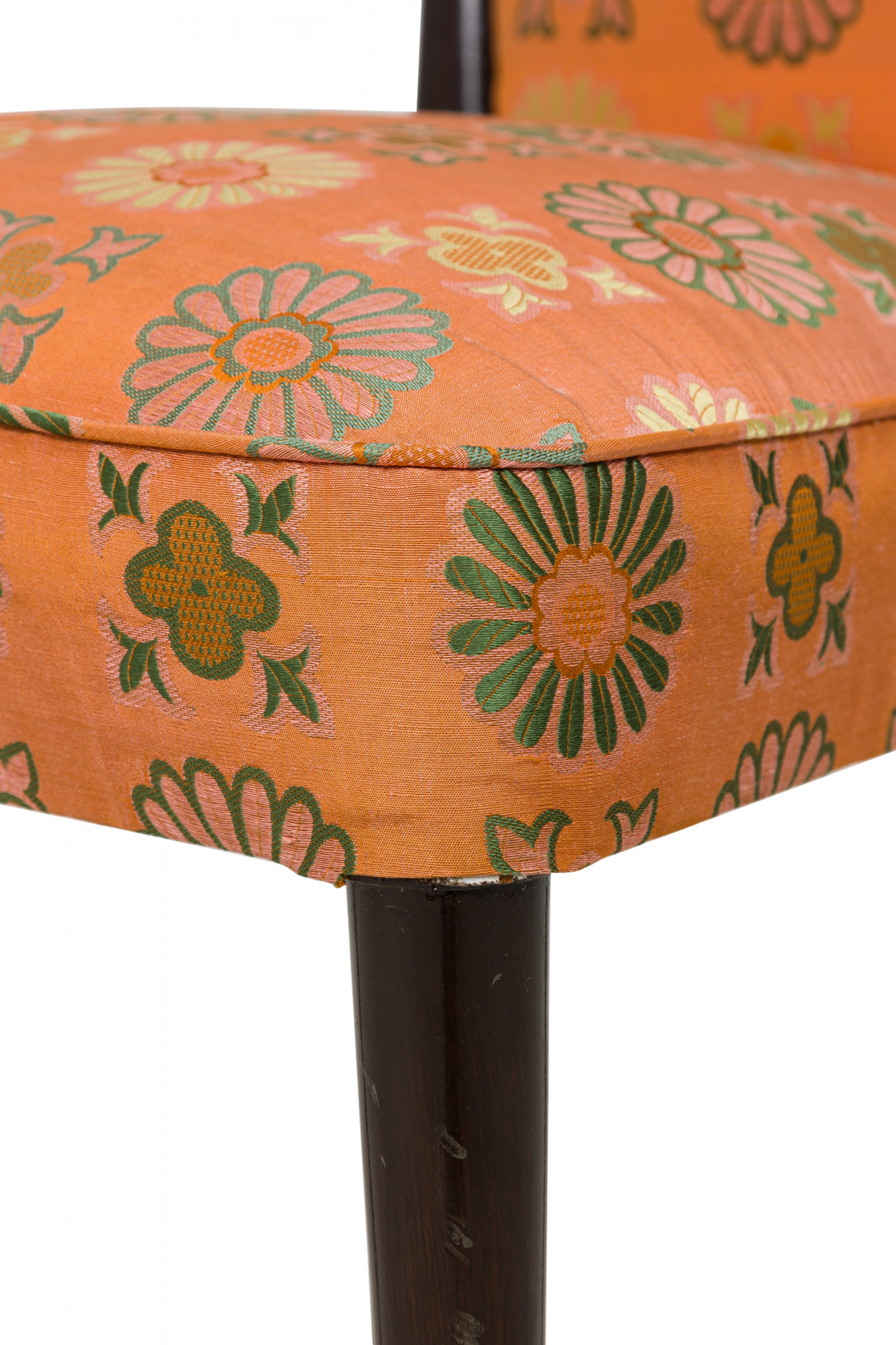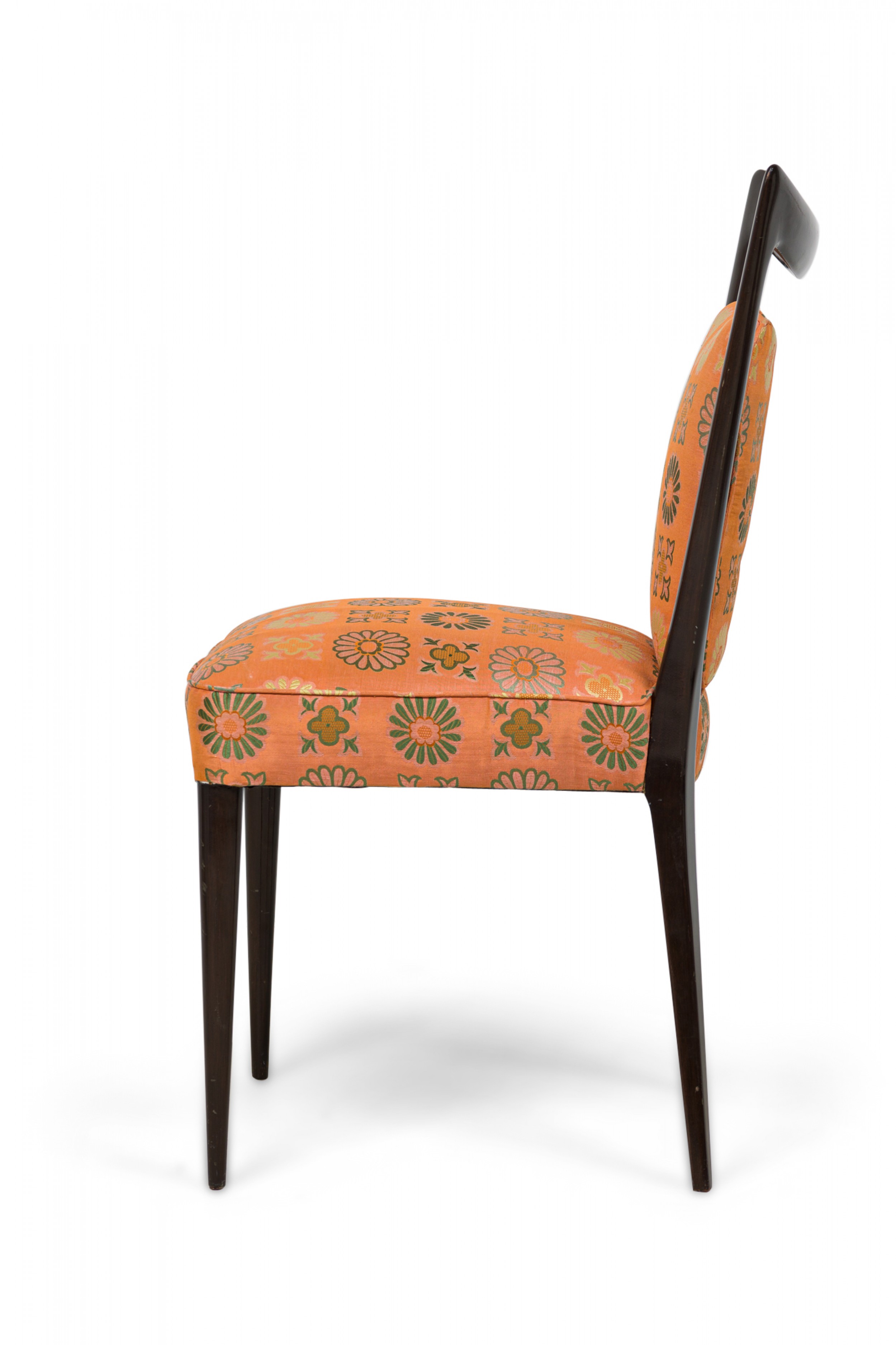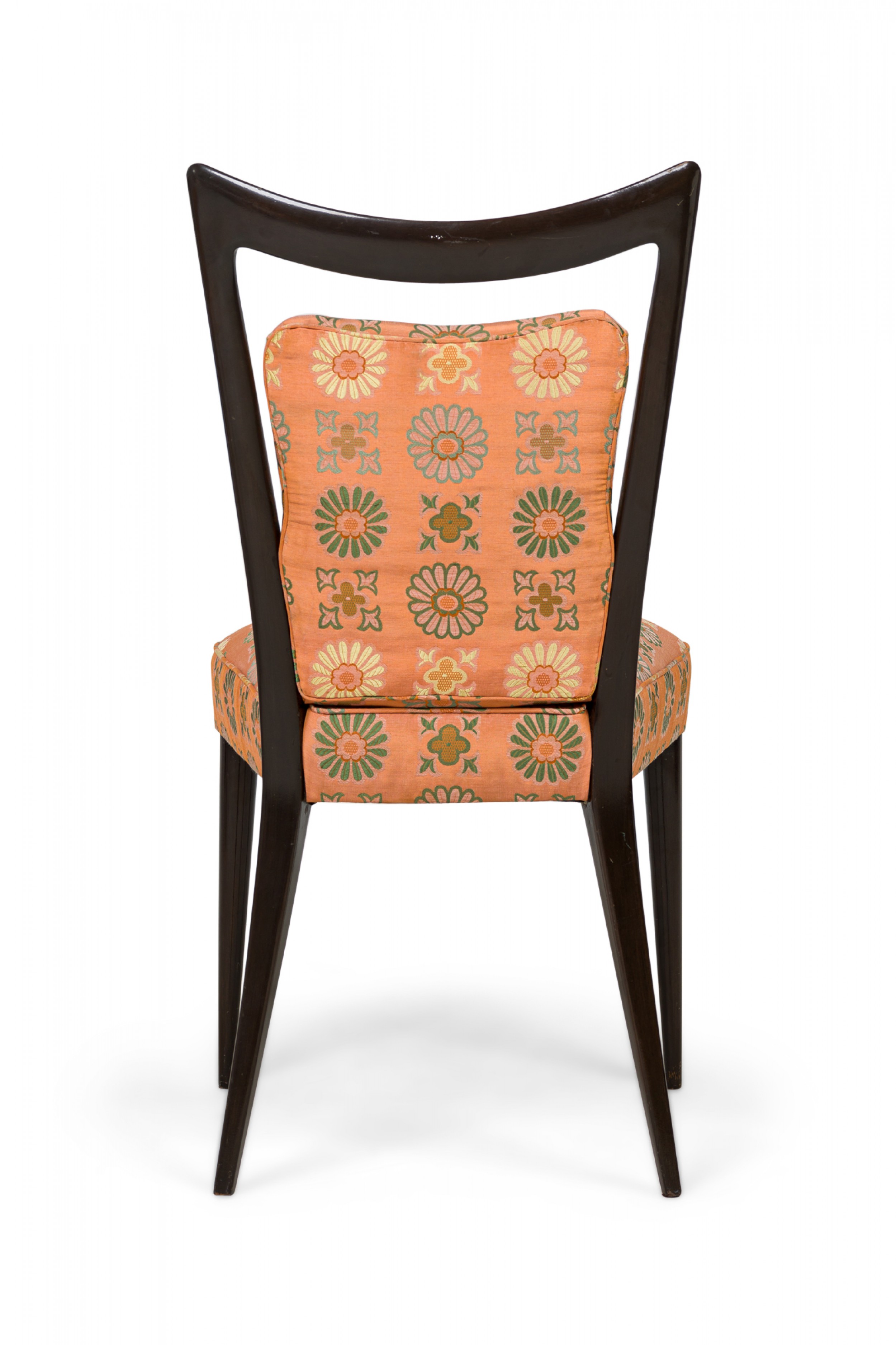 SET of 4 Mid-Century (1950s) Italian dining side chairs with molded backs, upholstered in a peach floral patterned fabric, standing on 4 tapered conical legs. (MELCHIORRE BEGA) (PRICED AS SET) (Similar set of 6 chairs: REG4090B)