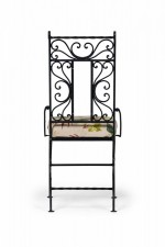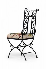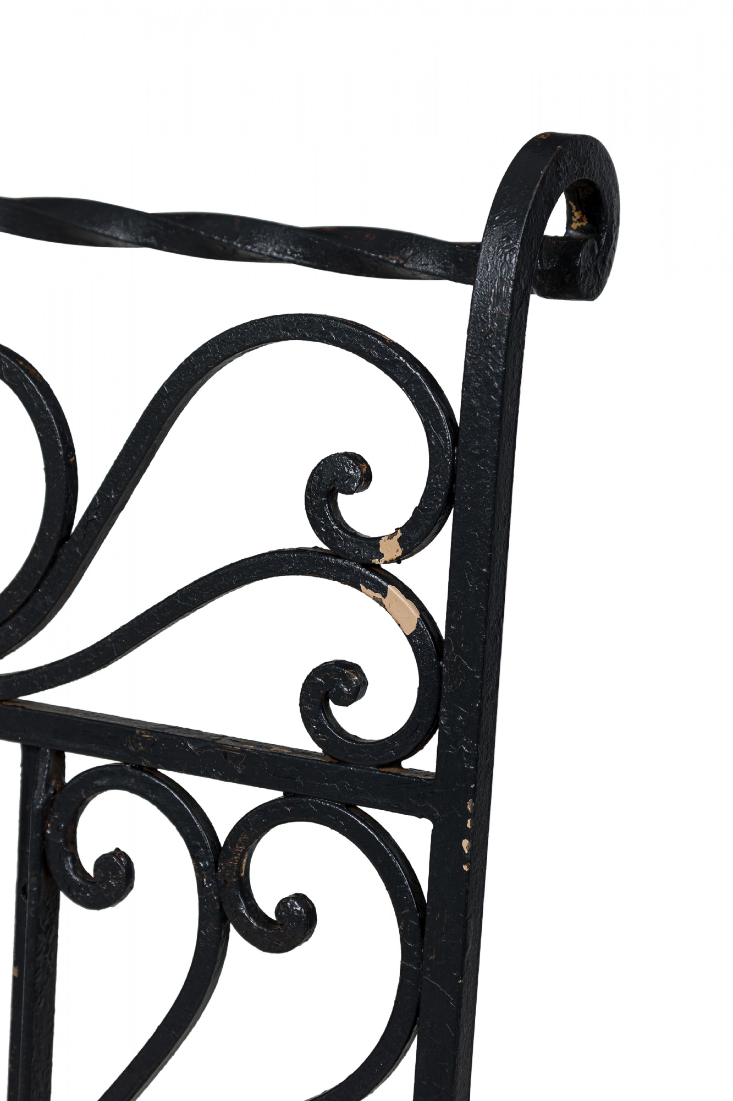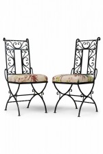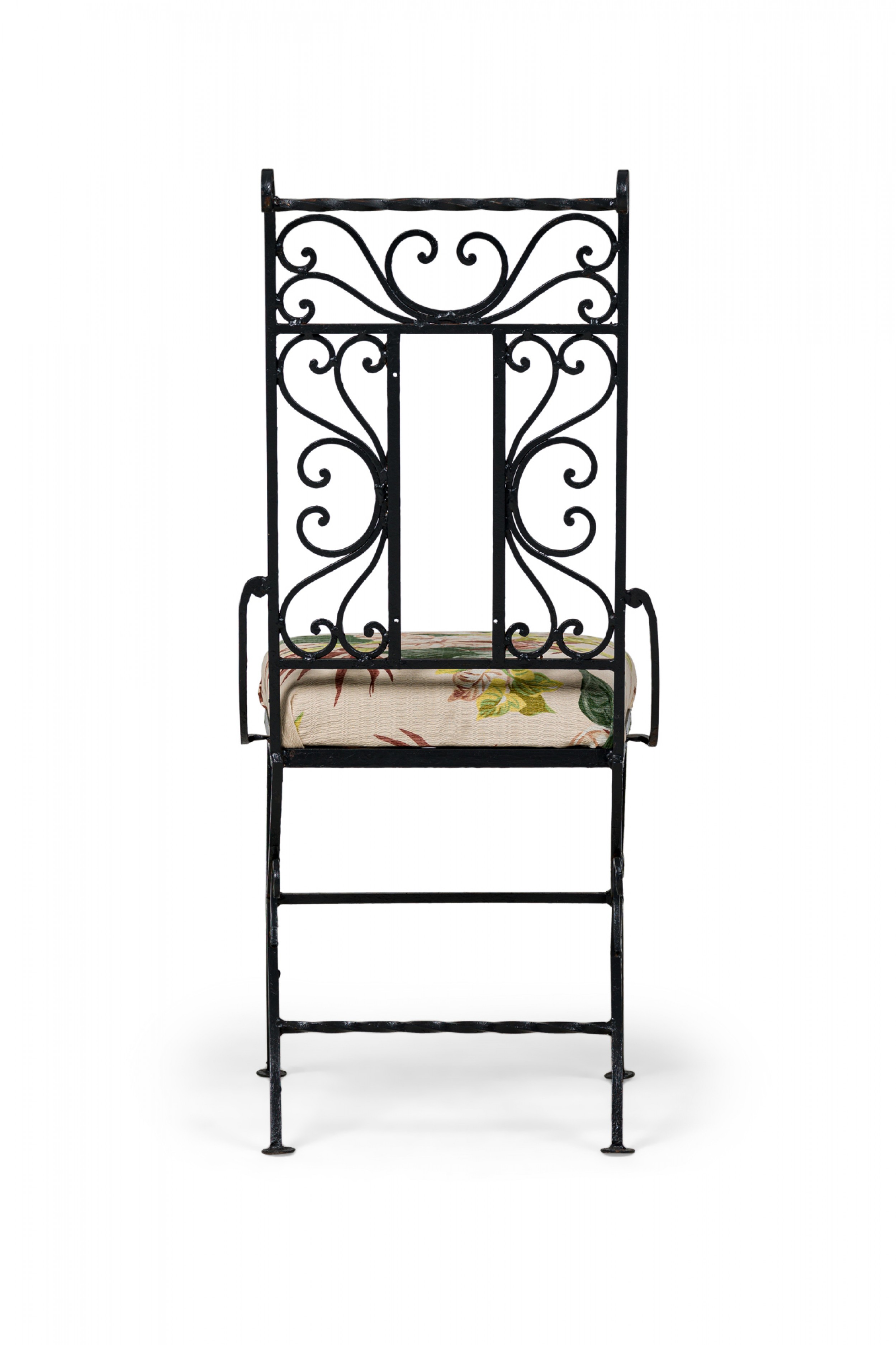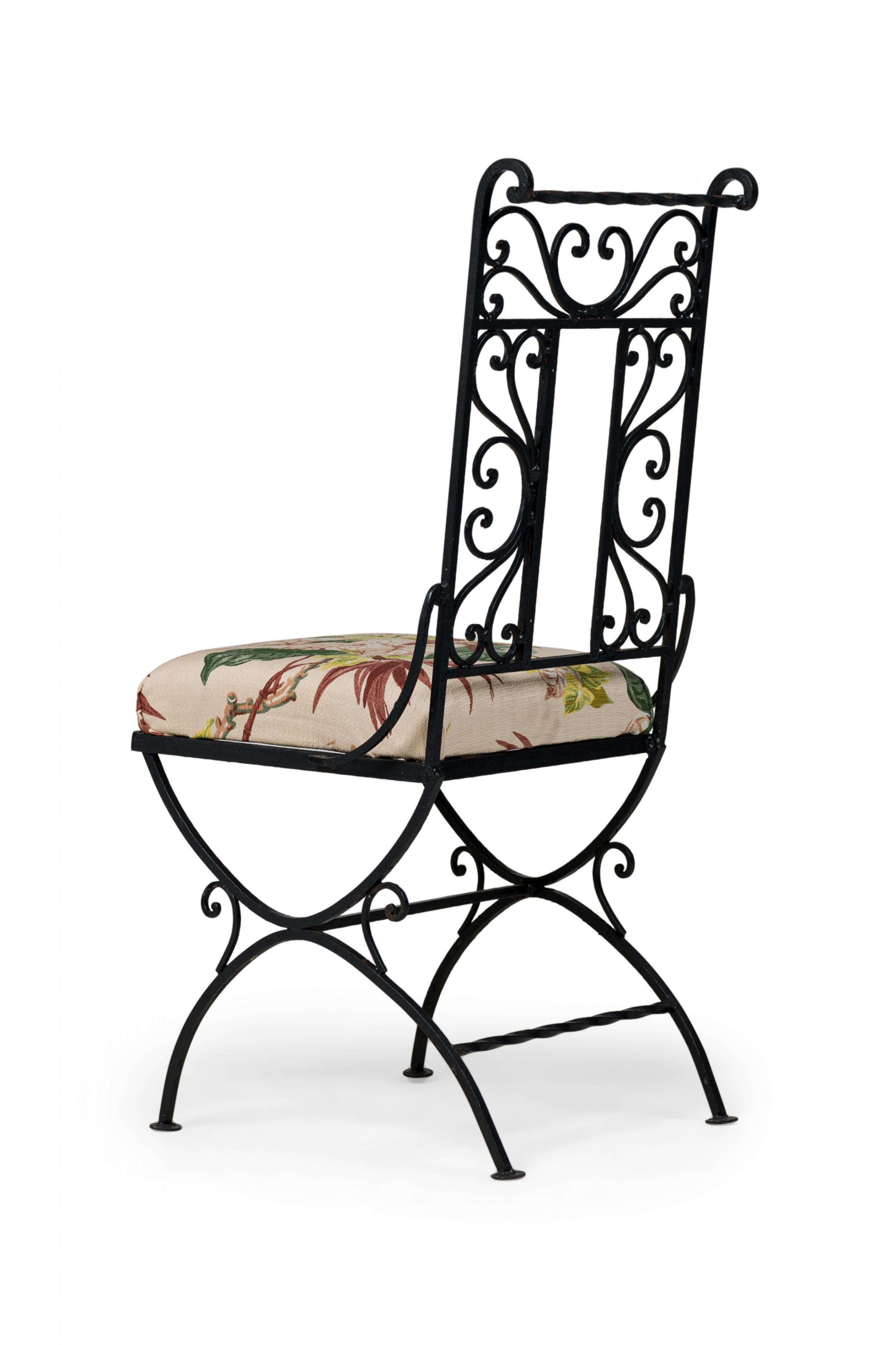 Set of 4 Mid-Century Black Wrought Iron Floral Upholstered Side Chairs