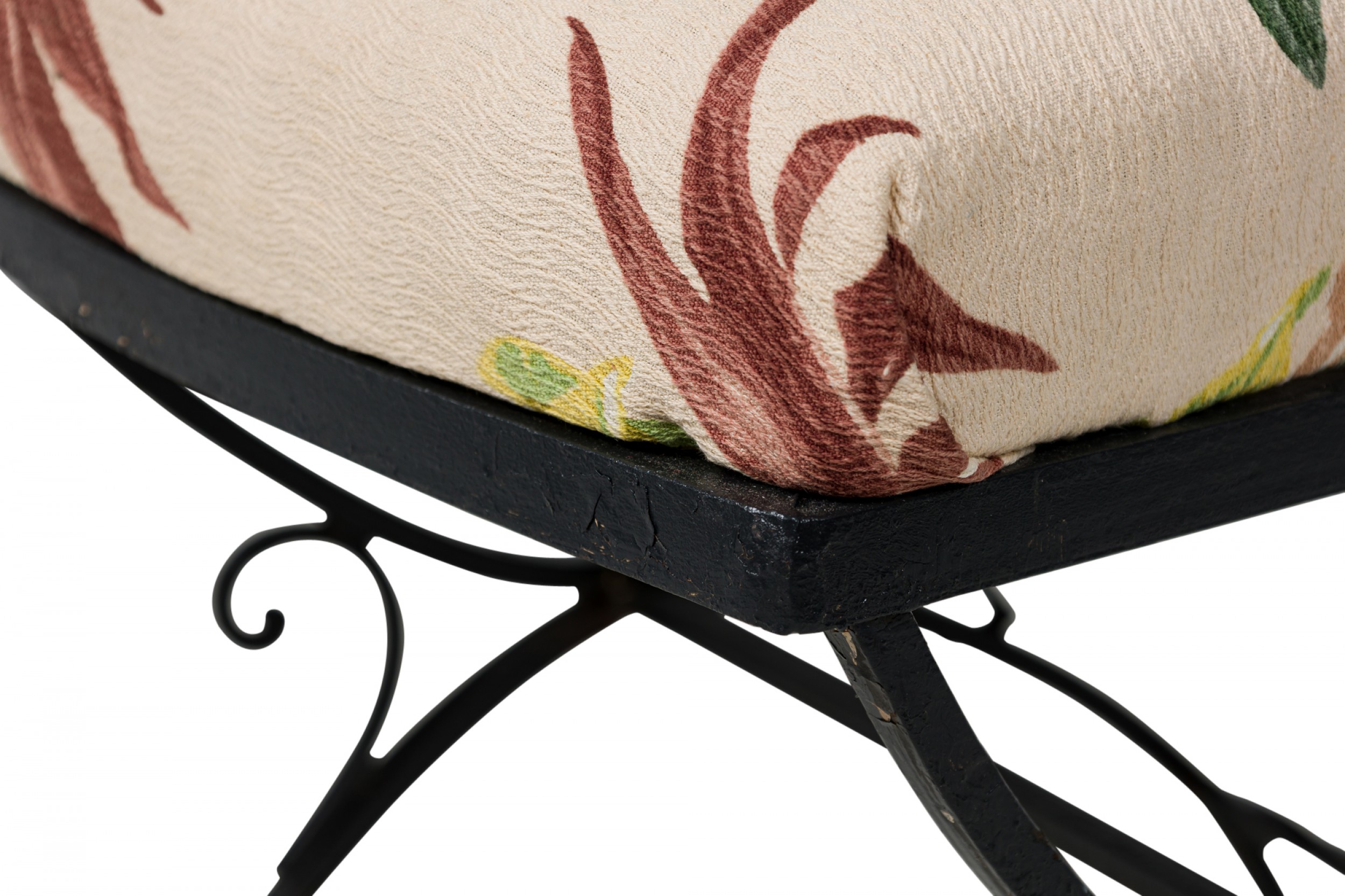 Style: Mid-Century Materials & Techniques: Fabric, iron, metal, upholstered Category: Seating Condition: One seat has slightly different floral upholstery.