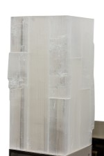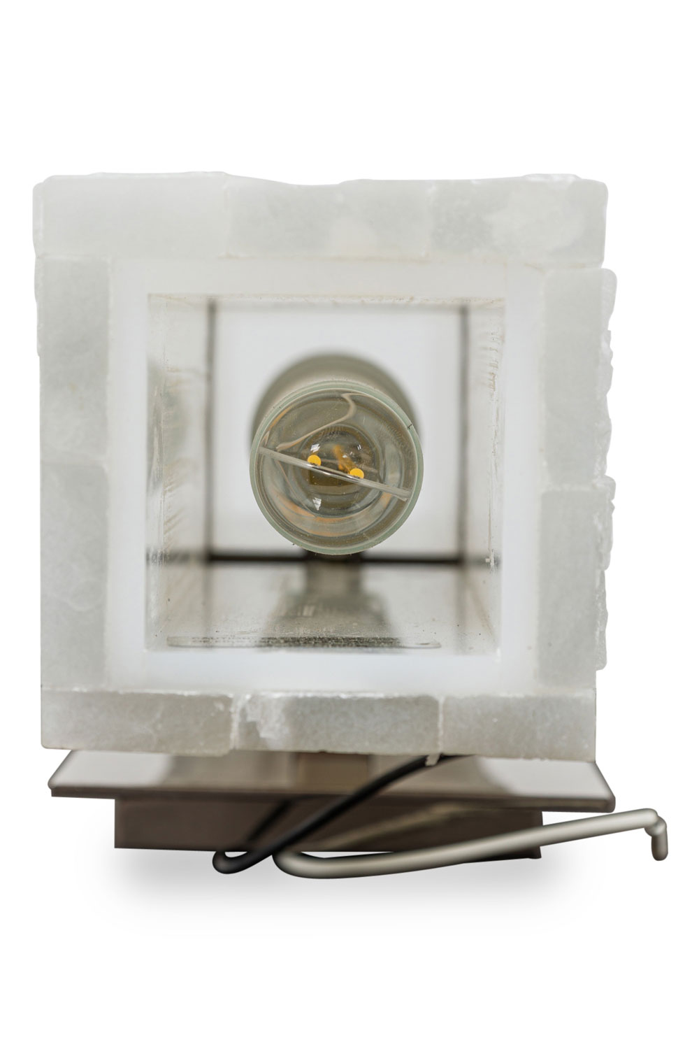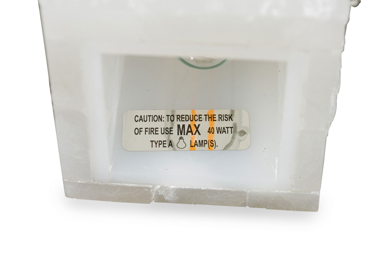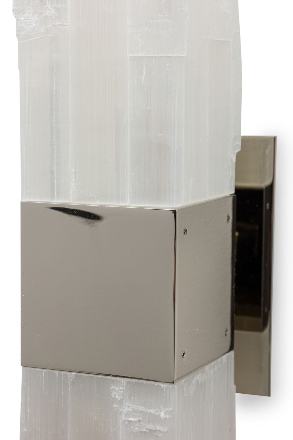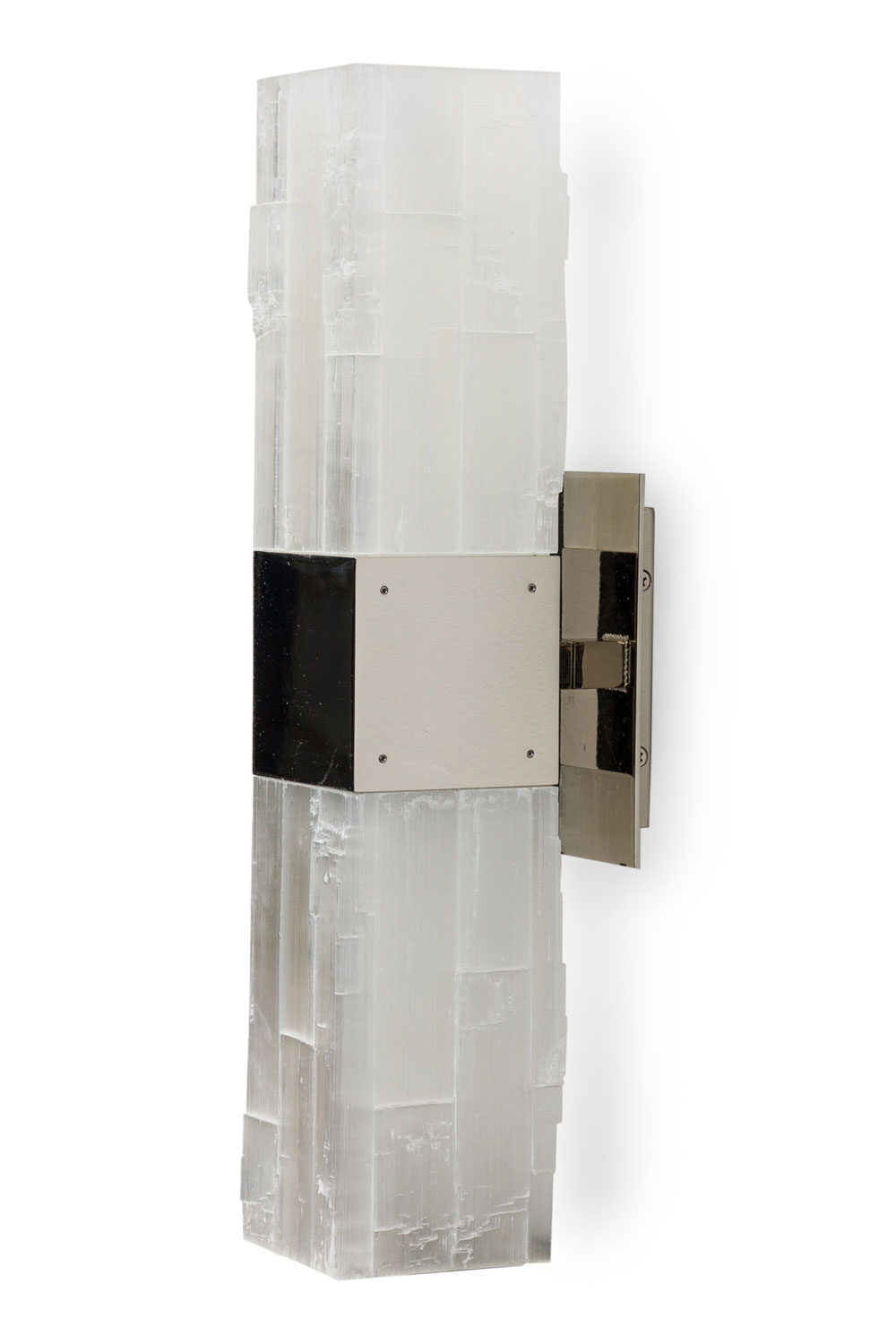 SET of 4 American Mid-Century style "Seville" rectangular form selenite sconces with a brick design and a centered brushed metal bracket support (RON DIER) (PRICED AS SET OF 4)