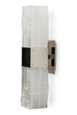 SET of 4 American Mid-Century style "Seville" rectangular form selenite sconces with a brick design and a centered brushed metal bracket support (RON DIER) (PRICED AS SET OF 4).