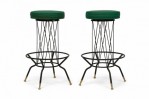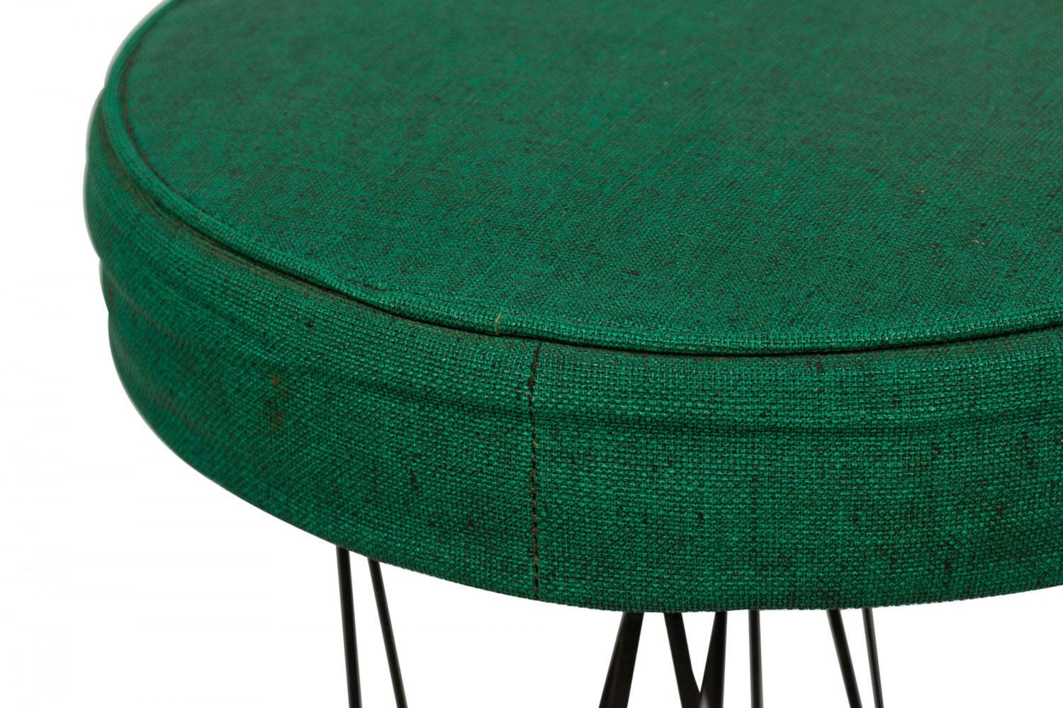Set of 4 Troy Sunshade Mid-Century American Black Metal Green Upholstered Swivel Bar Stools