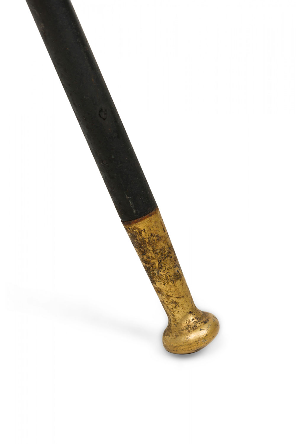 Style: Mid-Century Materials & Techniques: Brass, fabric, metal, upholstered, vinyl Category: Bar, Seating Condition: Wear to finish. 14" seat diameter. Good; Wear consistent with age and use