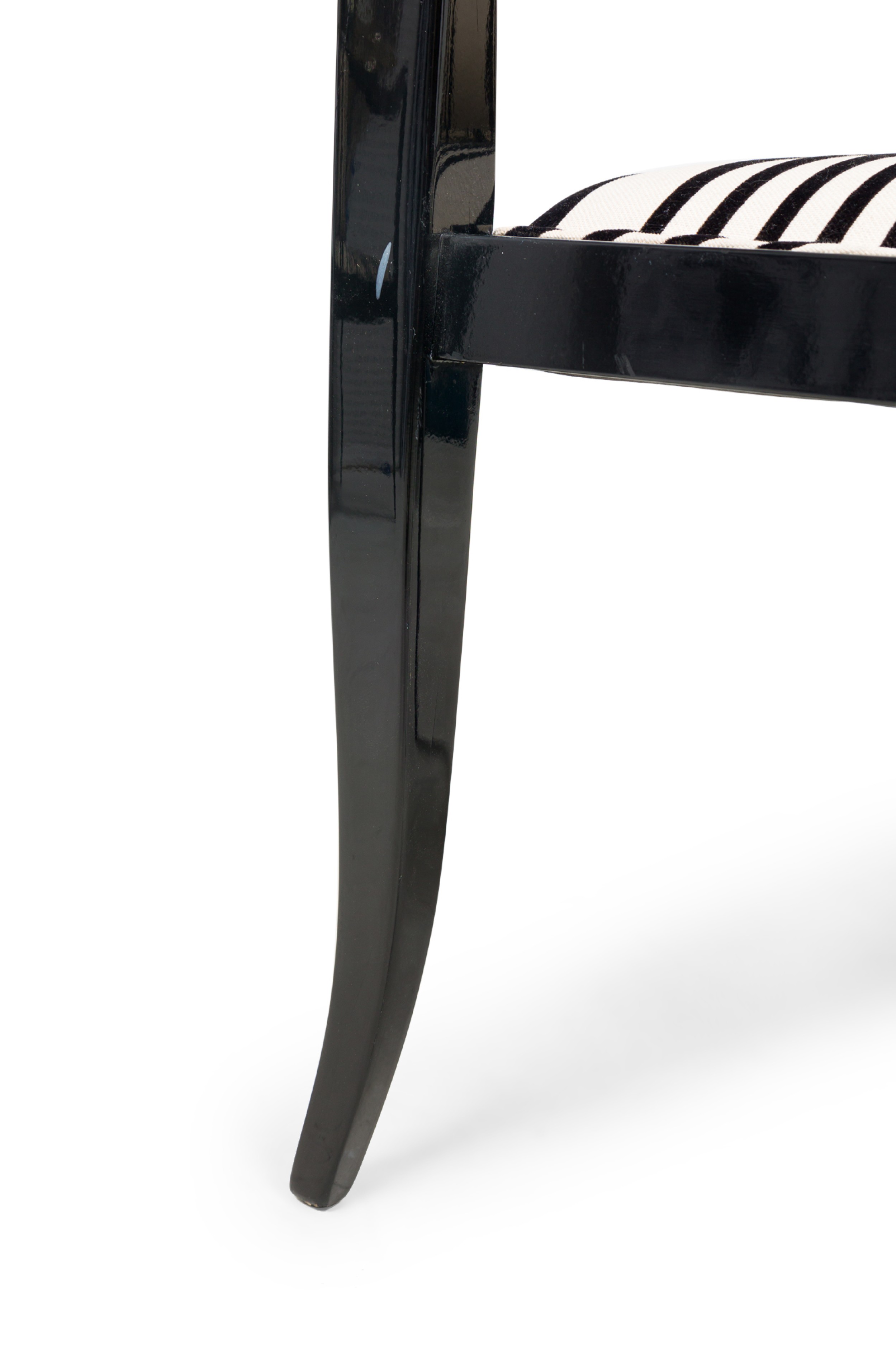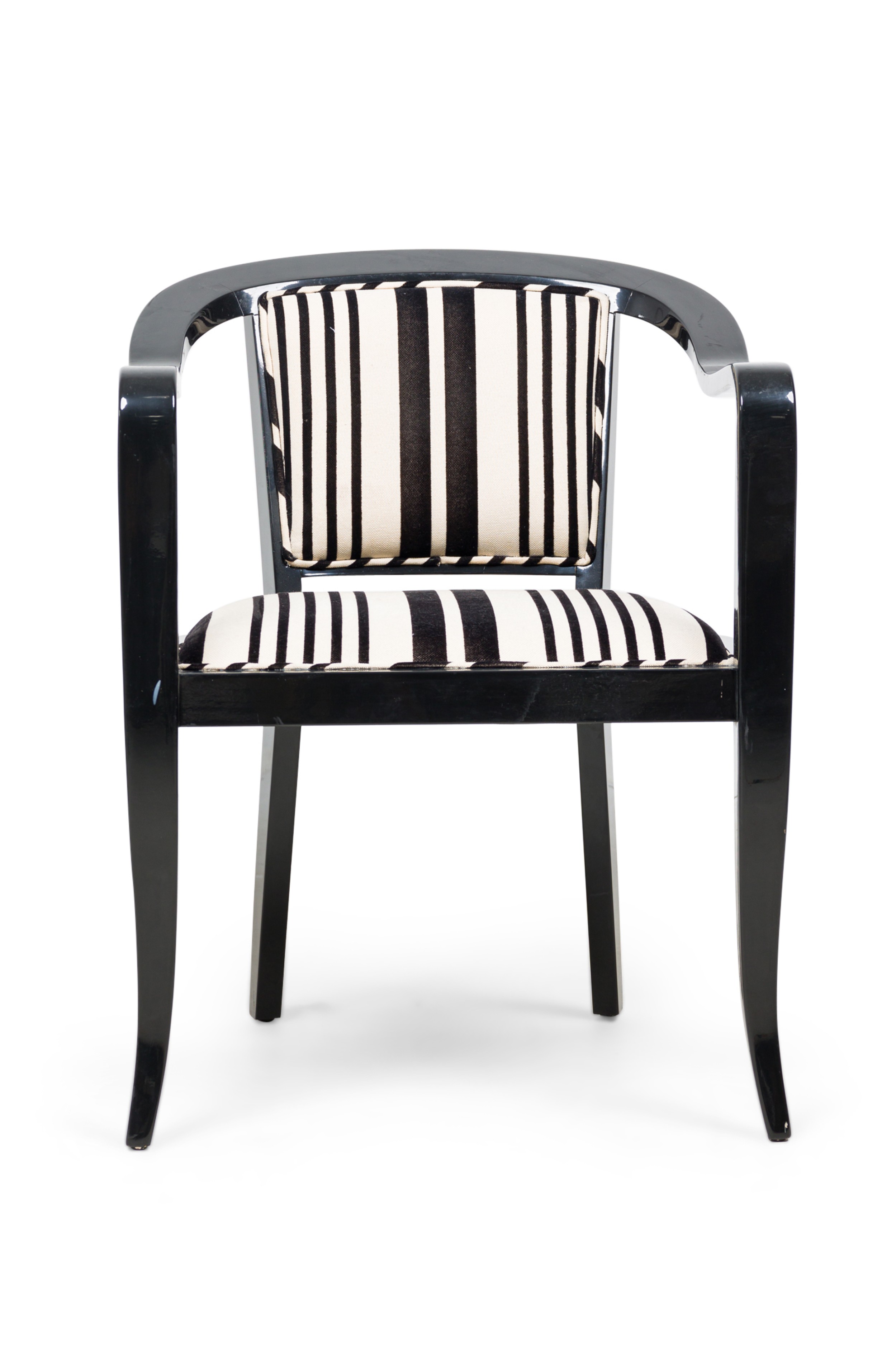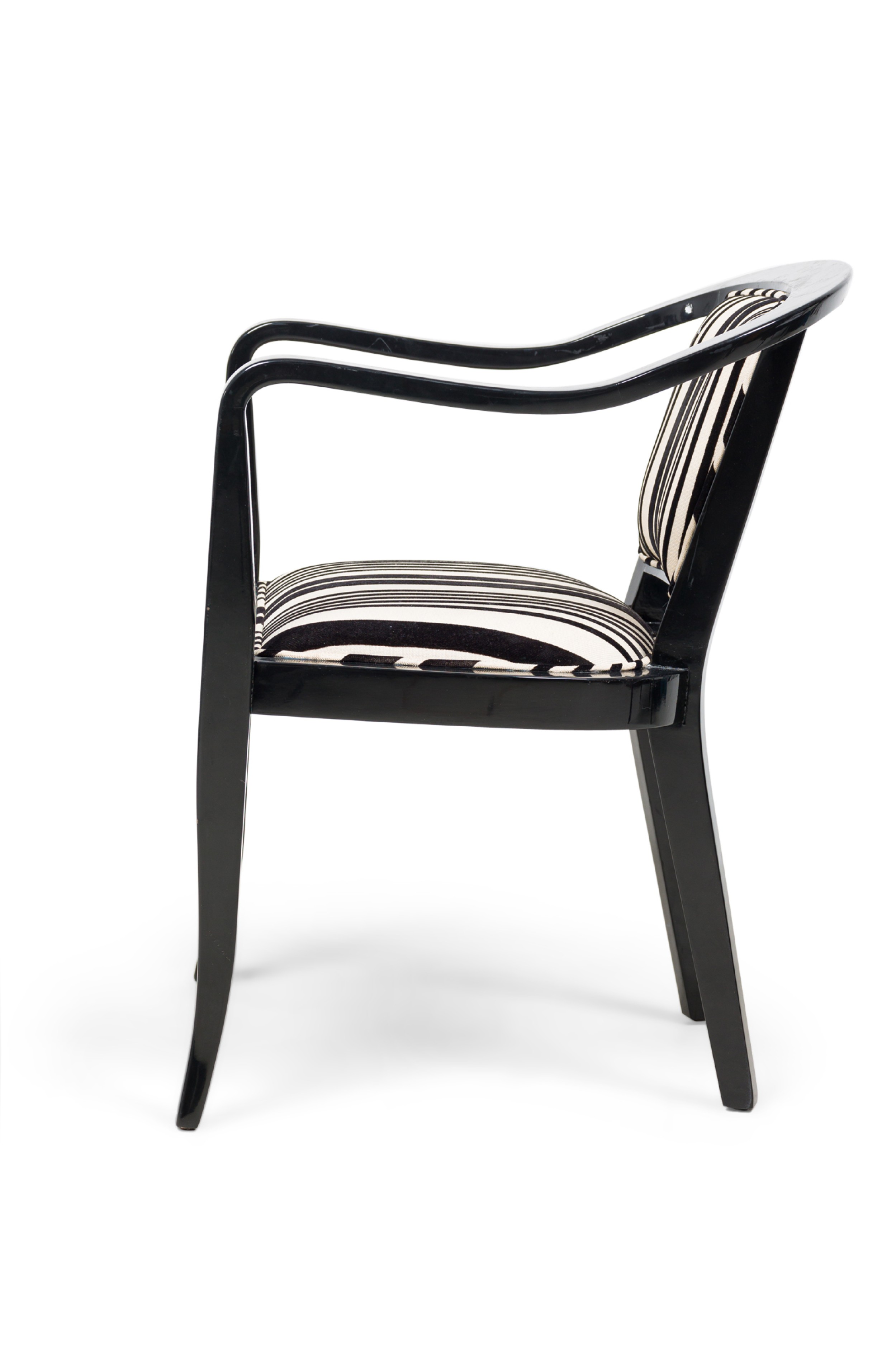 Set of 5 American Mid-Century ebonized wood continuous roundback armchair with black and white stripped upholstery (EDWARD WORMLEY for DUNBAR) (PRICED AS SET) (MATCHING SET of 4 with white upholstery: REG4008B).