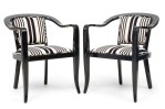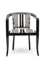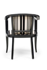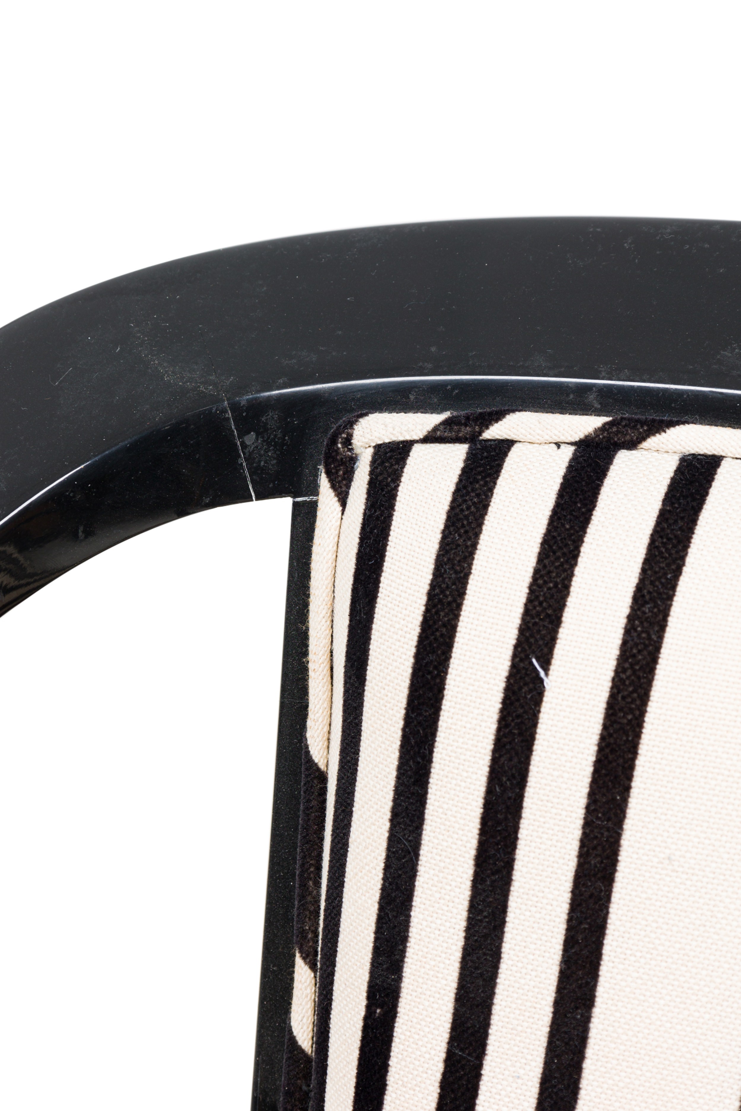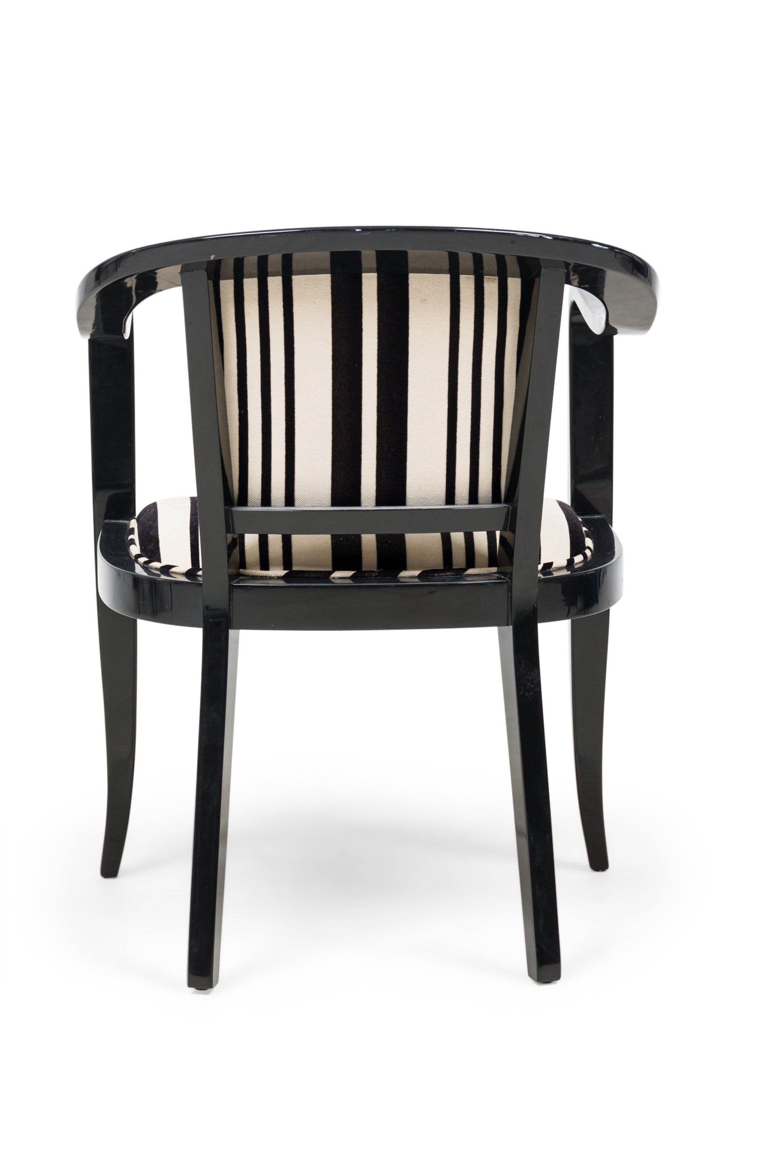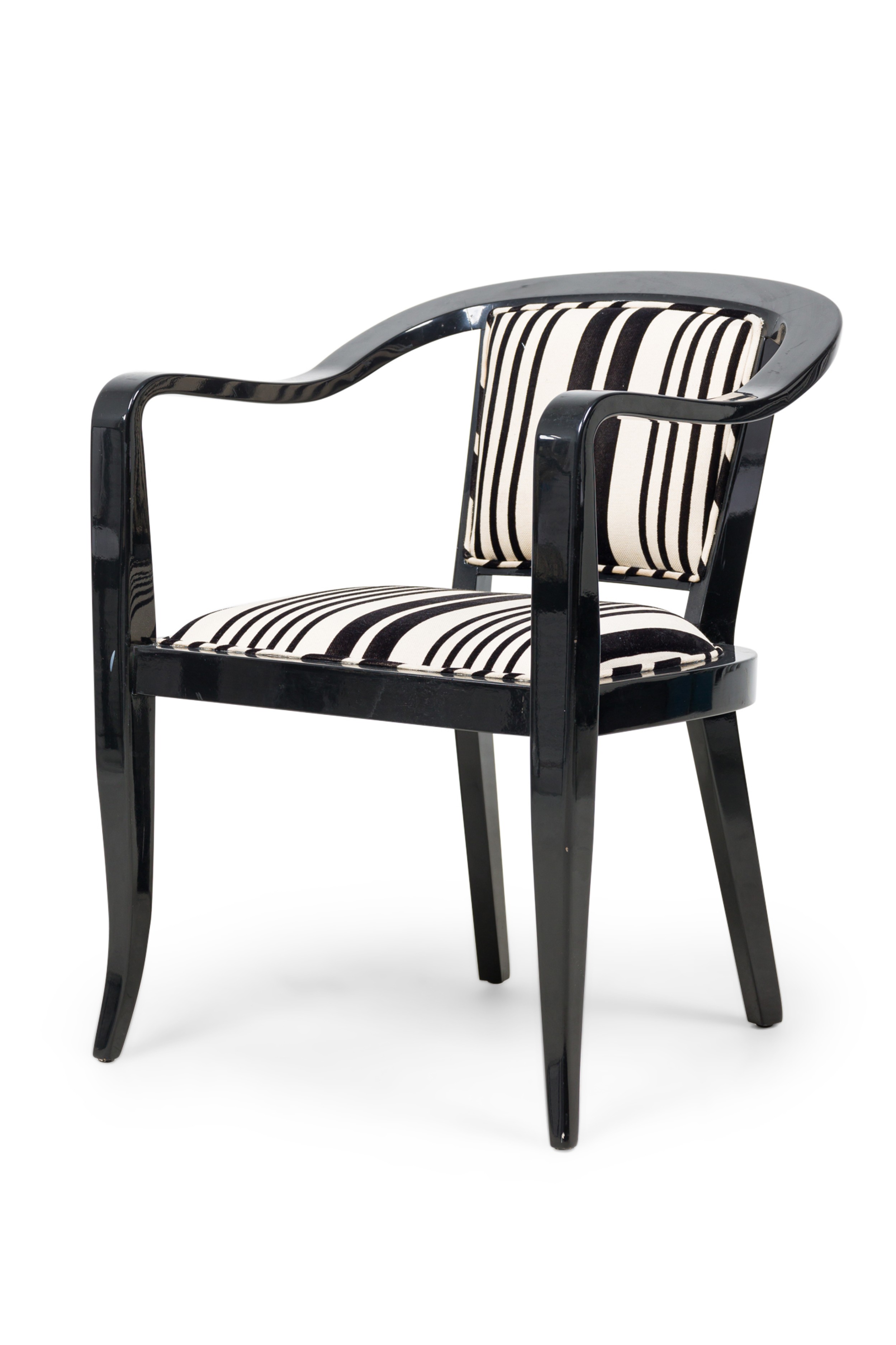 Set of 5 American Mid-Century ebonized wood continuous roundback armchair with black and white stripped upholstery (EDWARD WORMLEY for DUNBAR) (PRICED AS SET) (MATCHING SET of 4 with white upholstery: REG4008B).