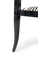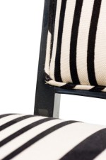 Set of 5 American Mid-Century ebonized wood continuous roundback armchair with black and white stripped upholstery (EDWARD WORMLEY for DUNBAR) (PRICED AS SET) (MATCHING SET of 4 with white upholstery: REG4008B)
