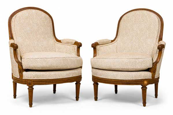 Style: French Materials & Techniques: Carved, fabric, gilt / giltwood, upholstered, velvet, wood Category: Seating, Office/Library, Dining Room Condition: Distress, losses, all side chairs have slightly loose joints. Good; Minor losses