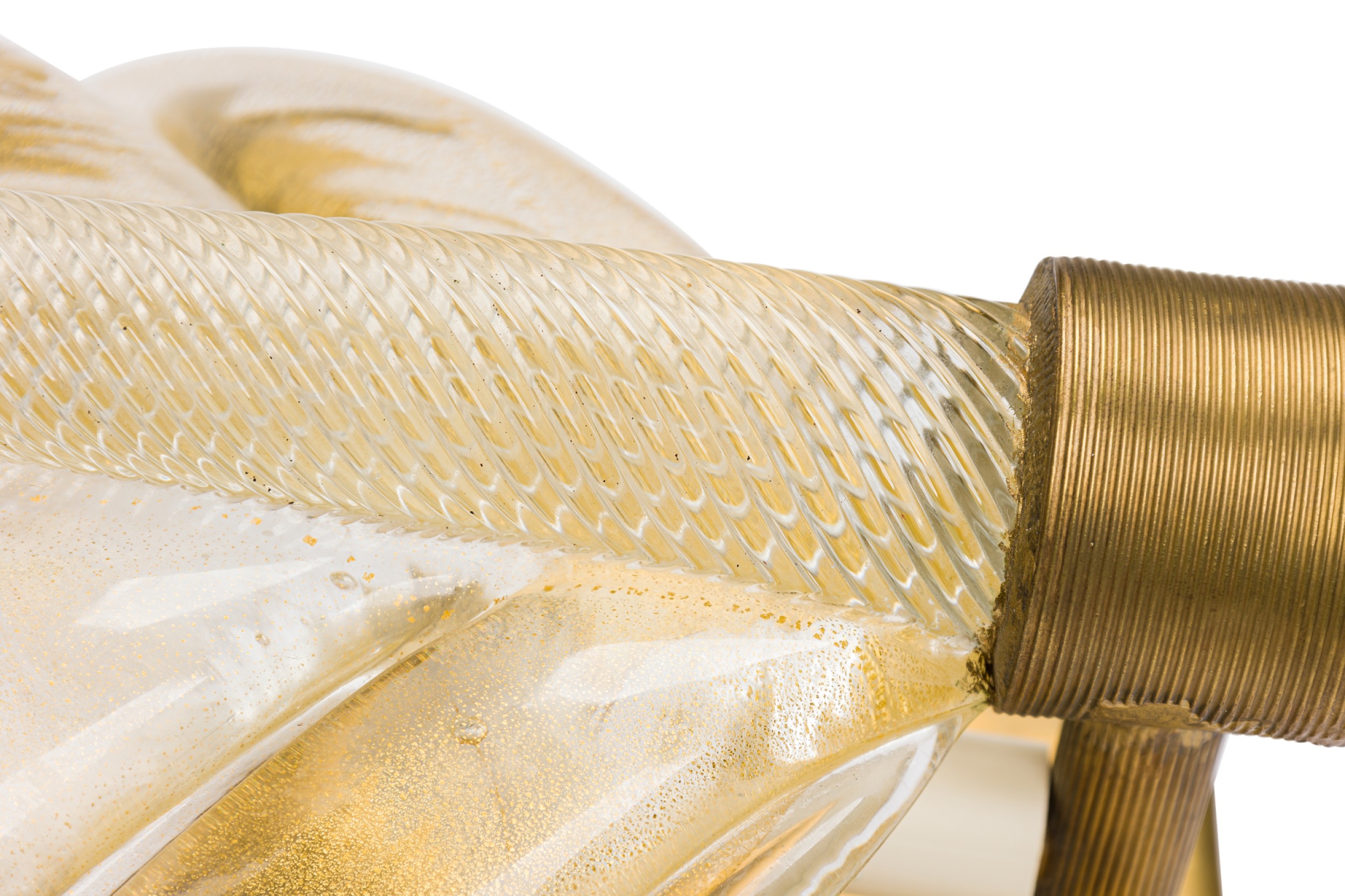 5 Italian Mid-Century Murano large gold dusted glass leaf design wall sconces with bronze mounting plates (PRICED EACH) (Similar SET of 5: REG4297; PAIR in smaller size: REG5392)