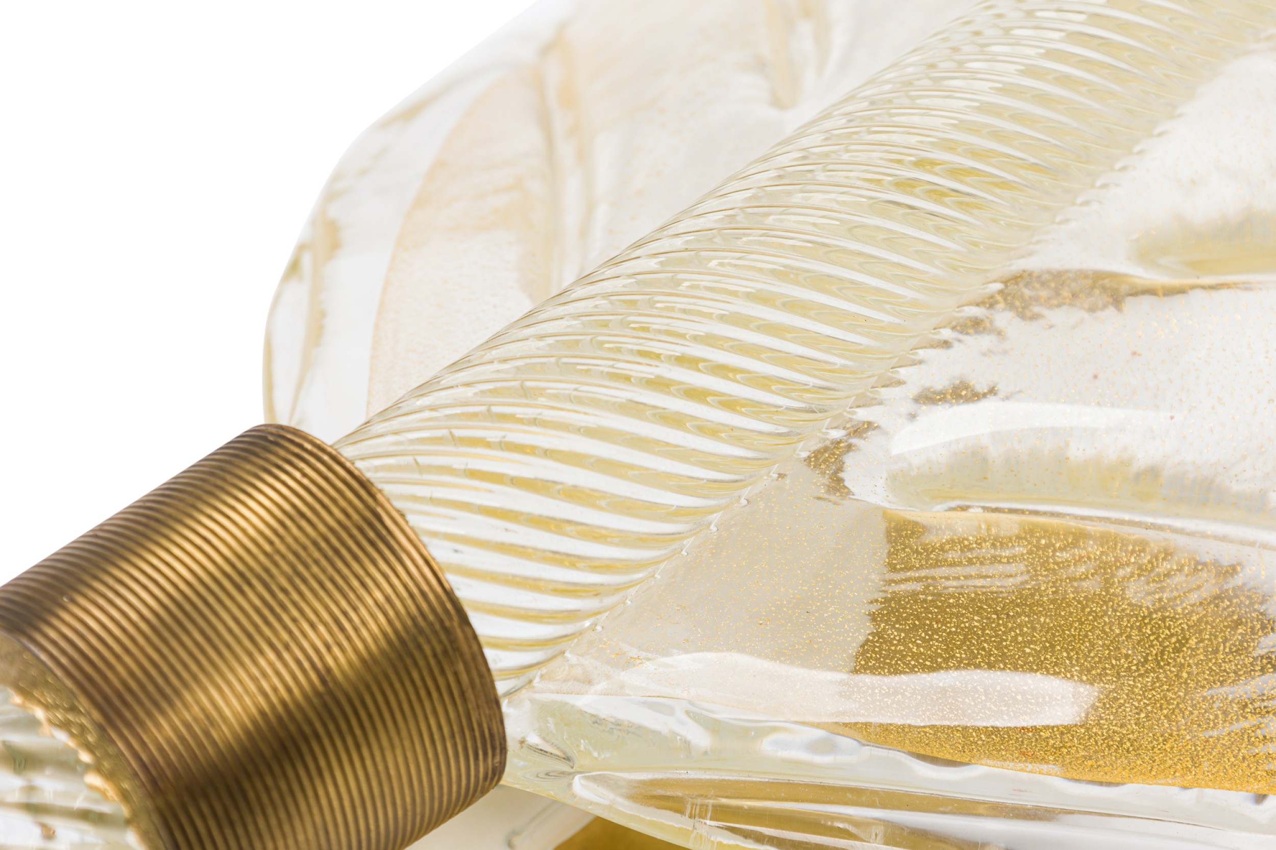 5 Italian Mid-Century Murano large gold dusted glass leaf design wall sconces with bronze mounting plates (PRICED EACH) (Similar SET of 5: REG4297; PAIR in smaller size: REG5392).
