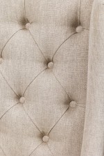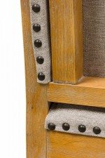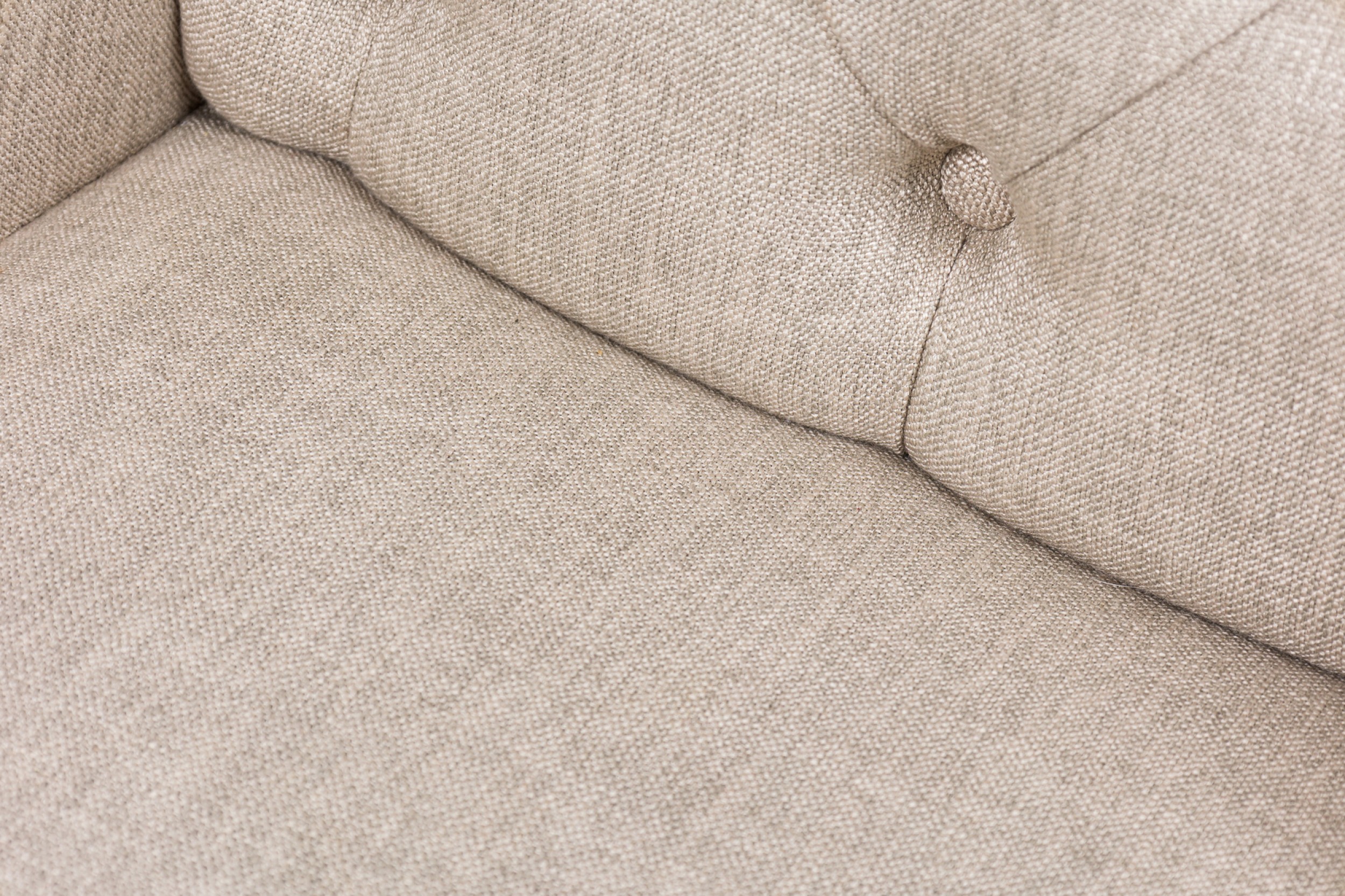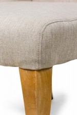 Style: Contemporary/Post-War Design Materials & Techniques: Fabric, tufted, upholstered, wood, woven Category: Seating, Dining Room Condition: Rips to facing under seats. Good; Wear consistent with age and use