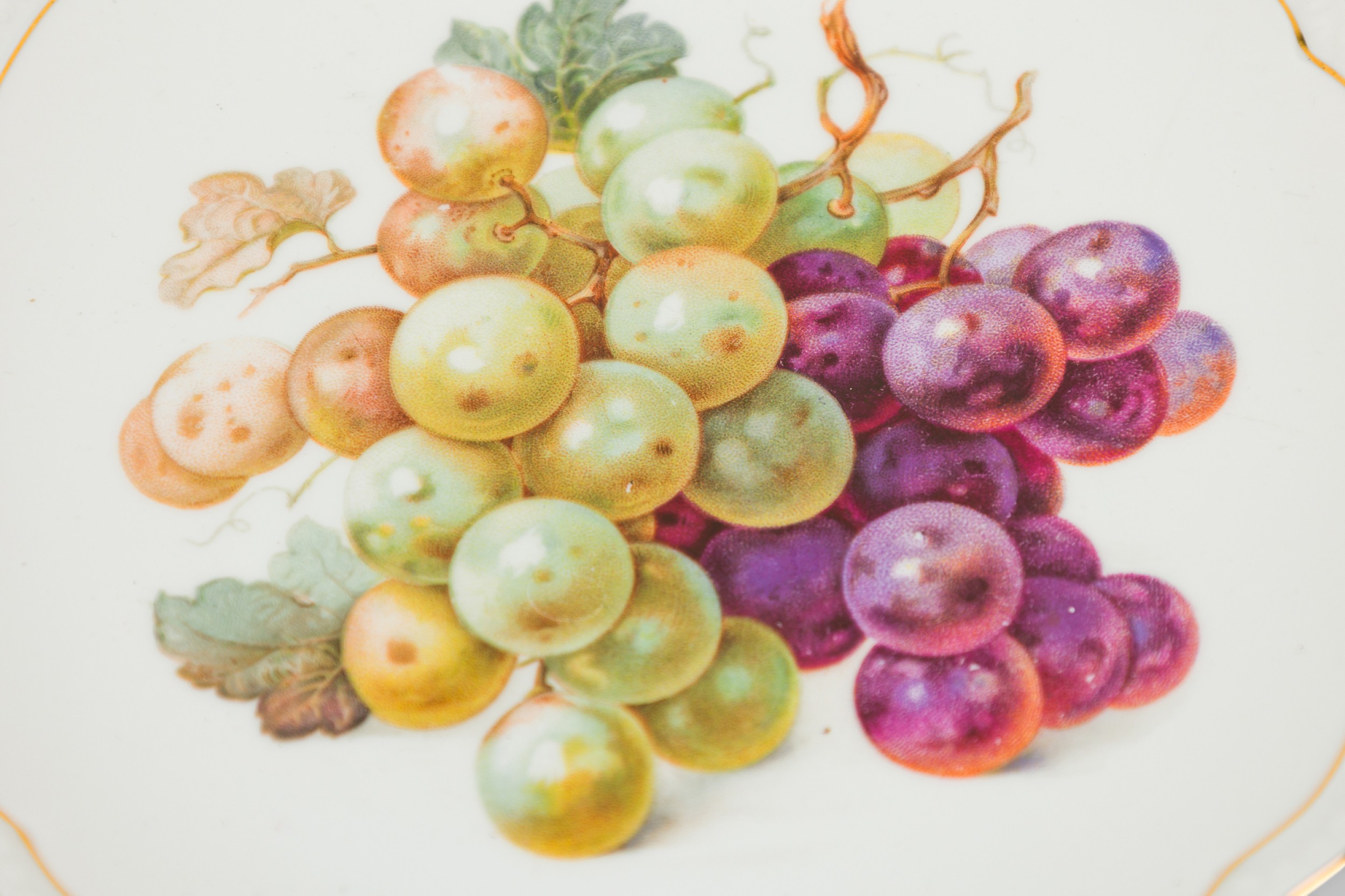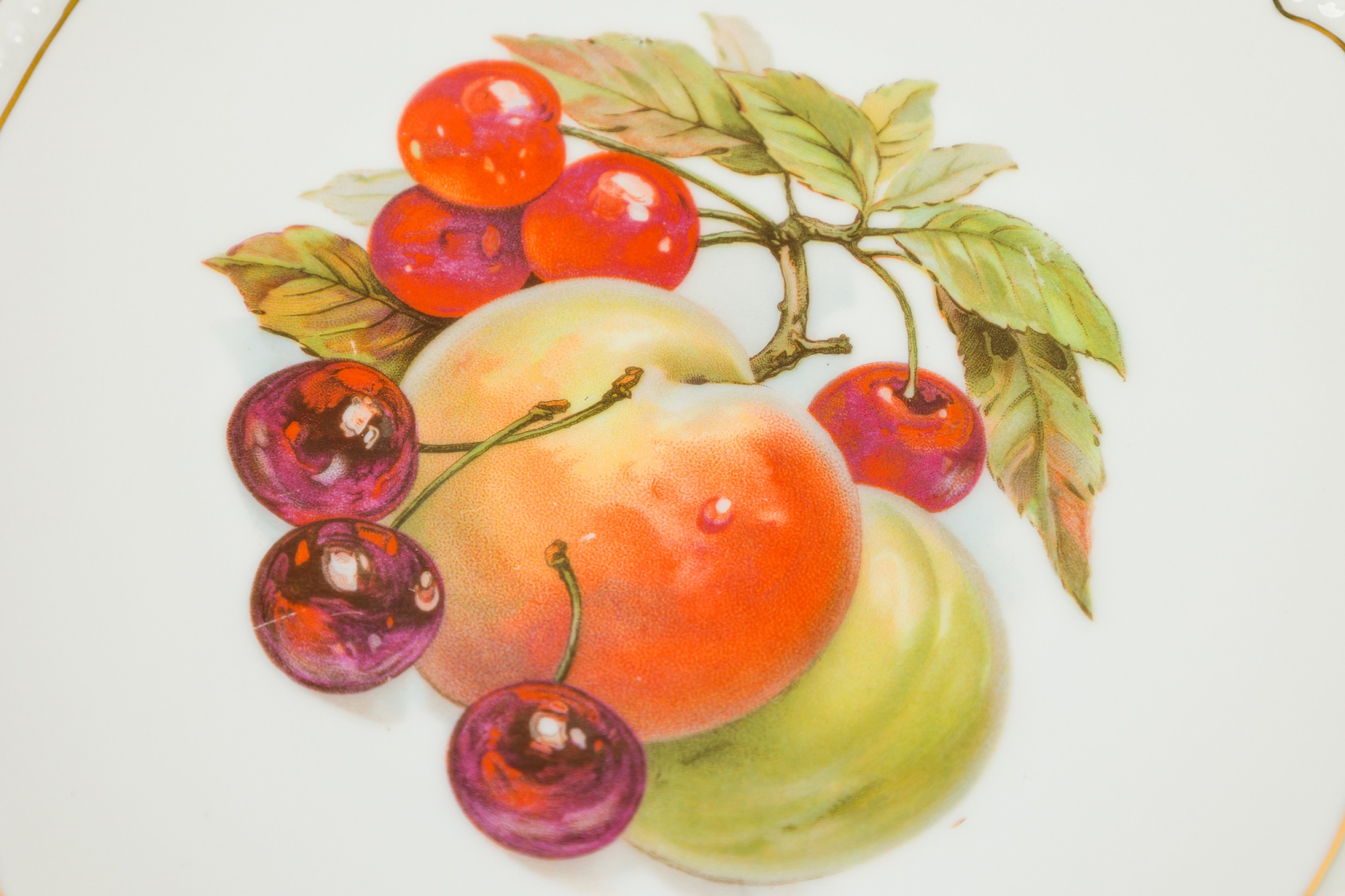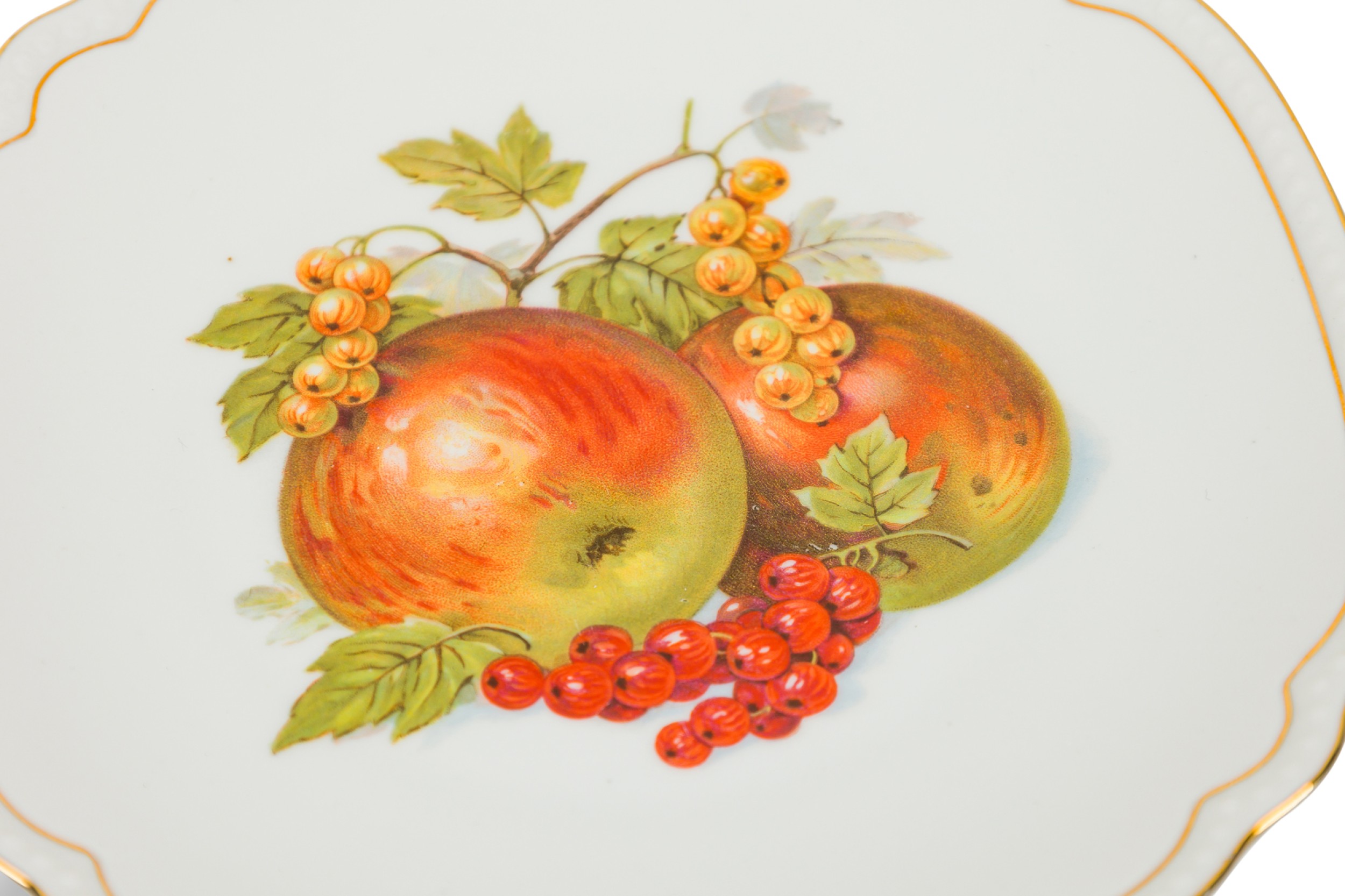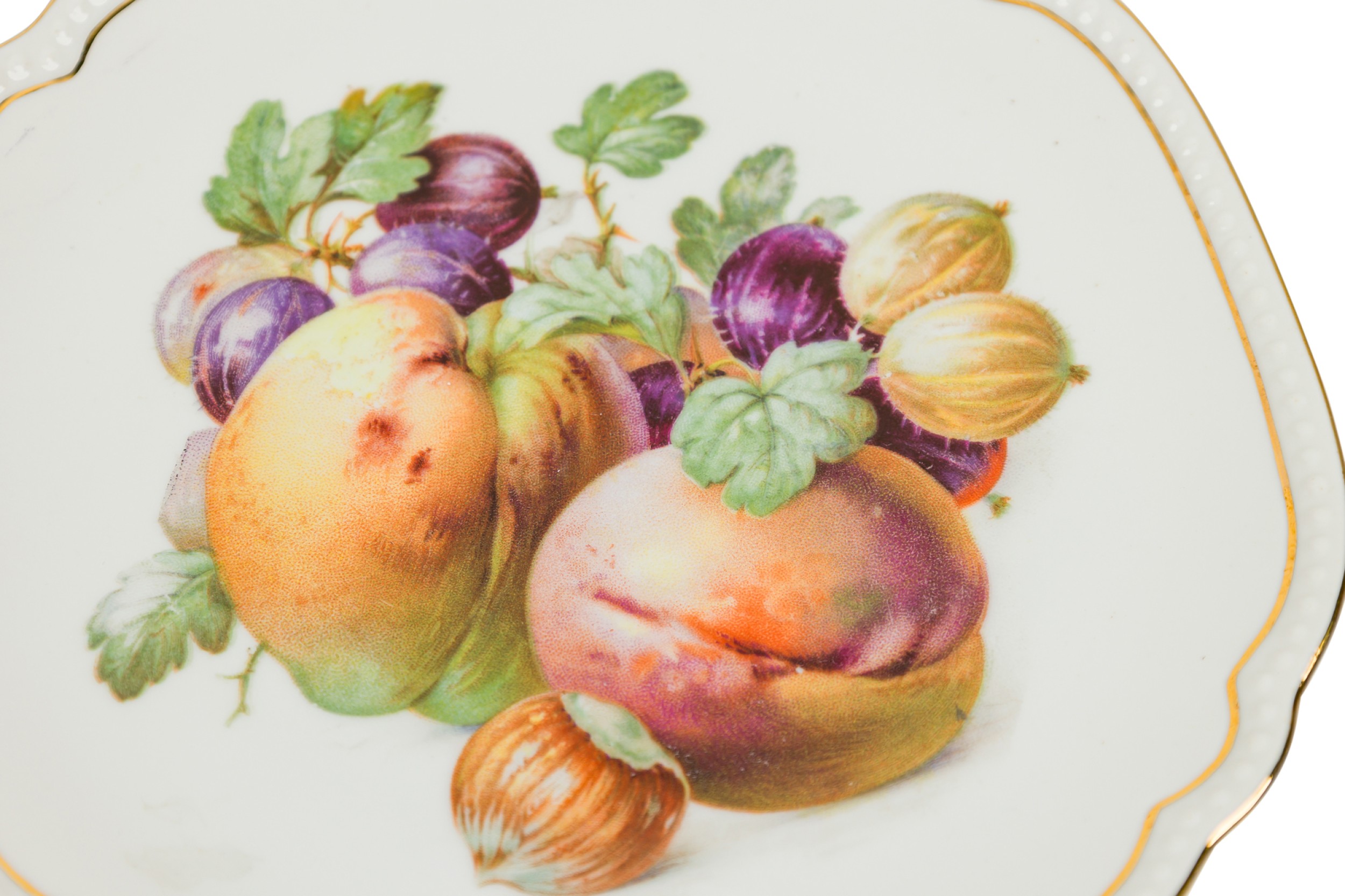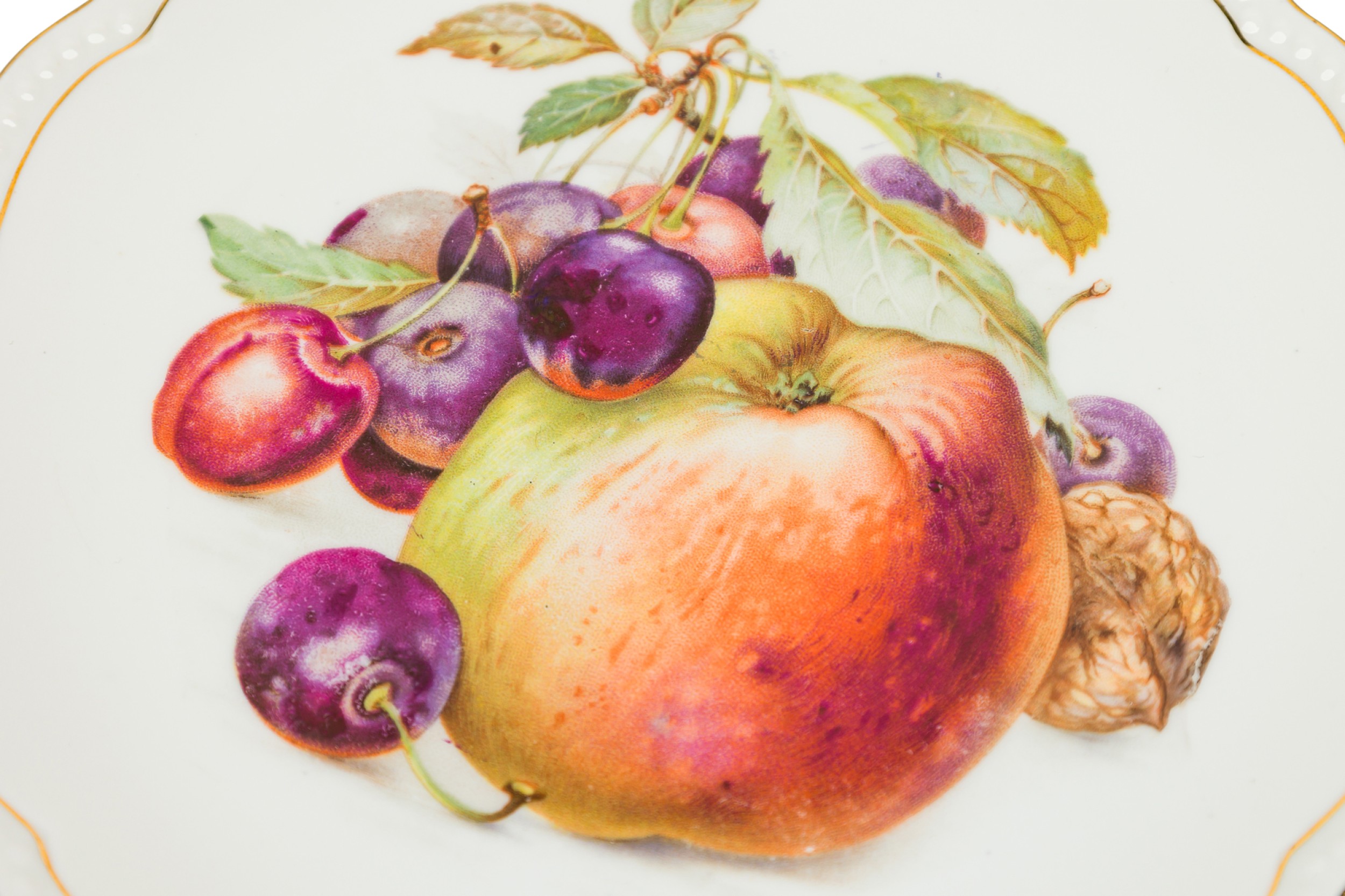 SET of 5 Czech Mid-Century china porcelain dessert plates with hand painted prints of fruits (PRICED AS SET)