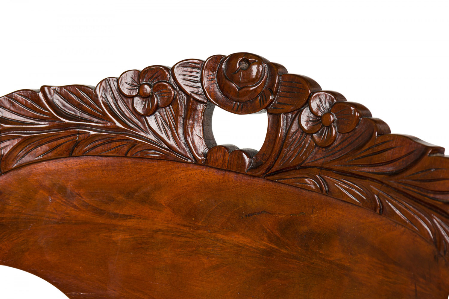Set of 6 American Empire Carved Wood Gondola Dining Chairs with Acanthus Weave Upholstered Seats