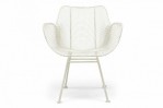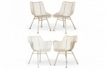 Set of 6 Russell Woodard Mid-Century "Sculptura" White Metal Dining Chairs, 2 with Arms, 4 Sides