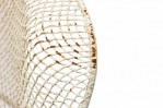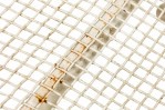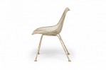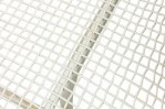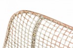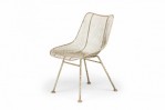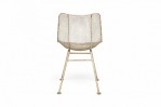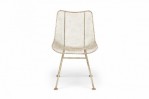 SET of 6 Mid-Century American white mesh dining chairs, 2 with arms, 4 sides made from wrought iron and woven steel for indoor and/or outdoor use (RUSSELL WOODARD)(PRICED AS SET)(Other examples as set of 7 low side chairs: DUF0813)
