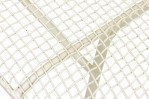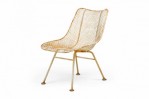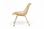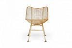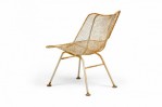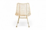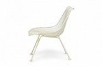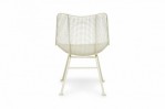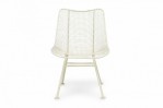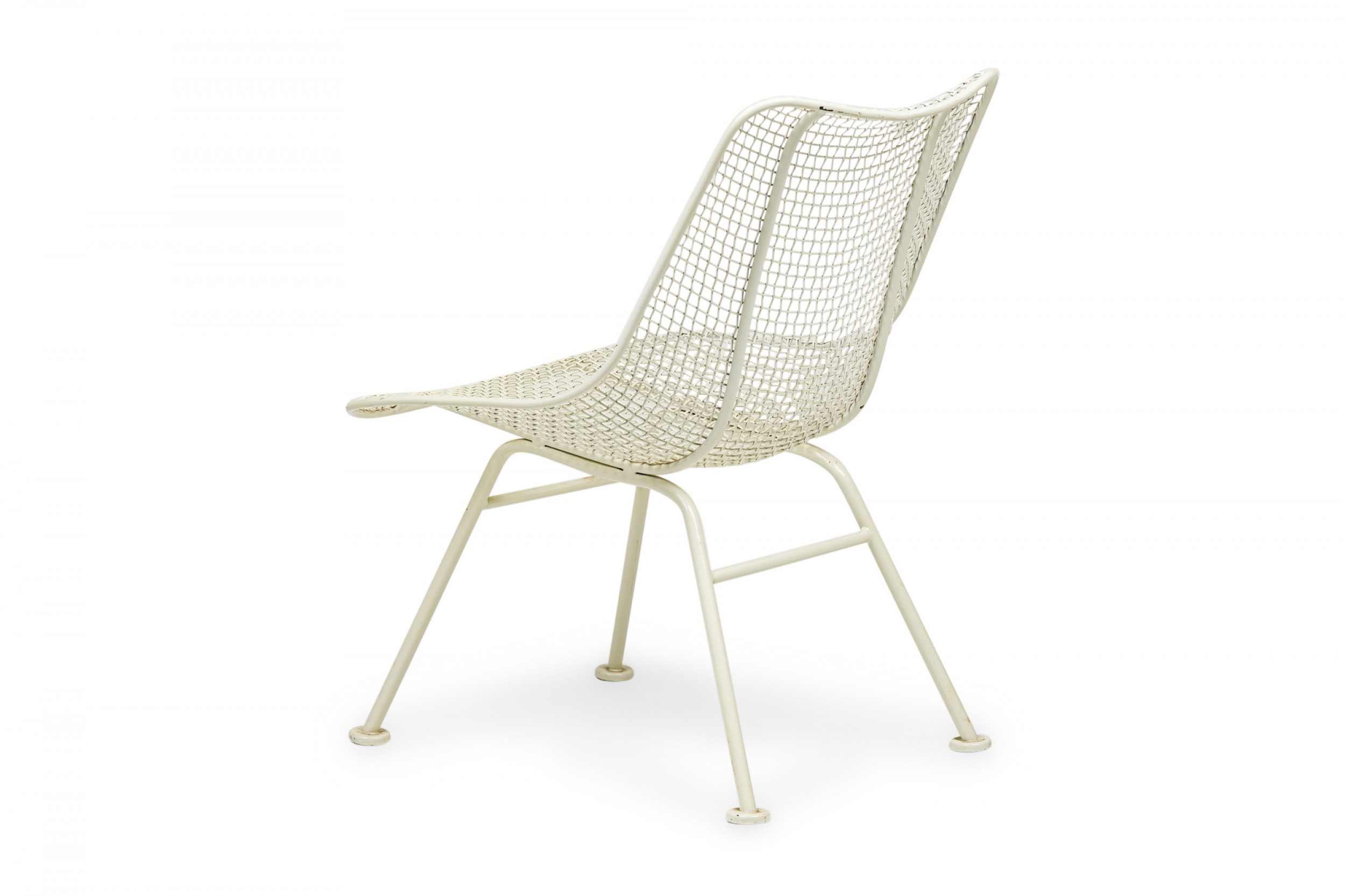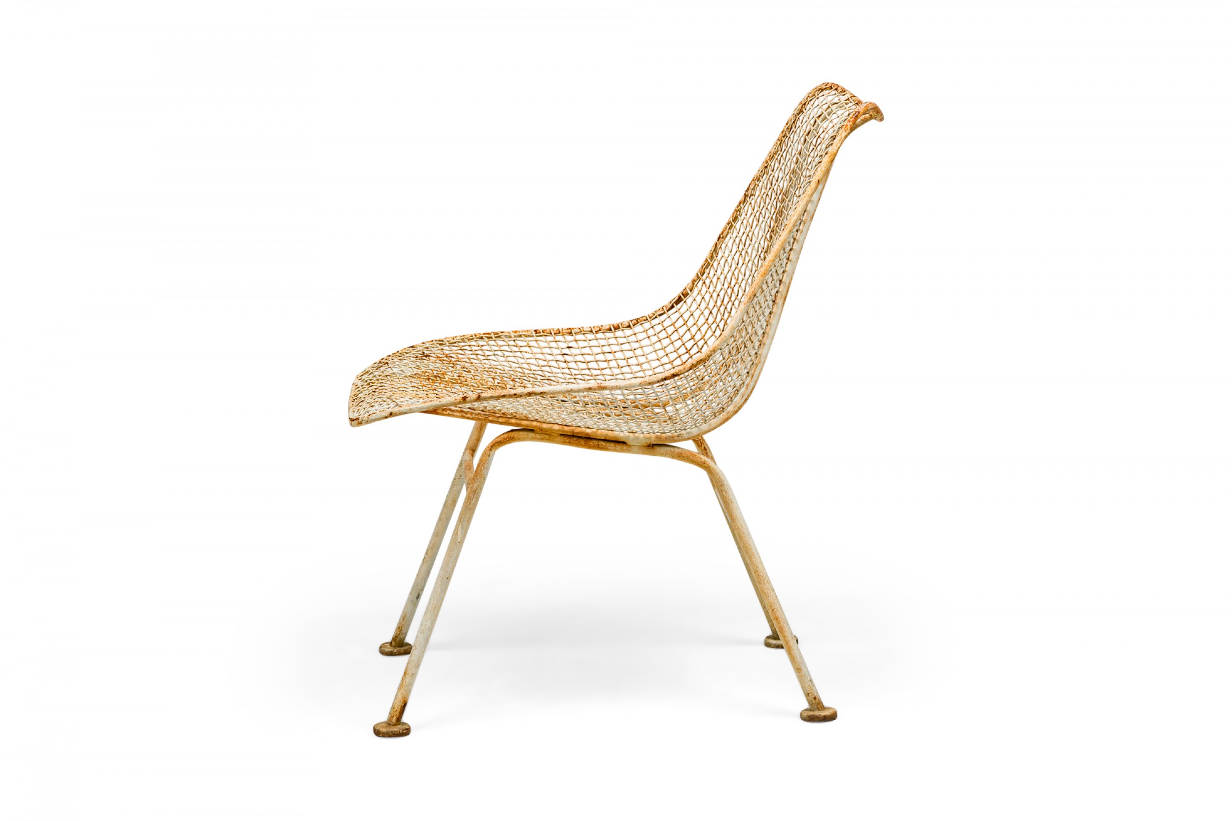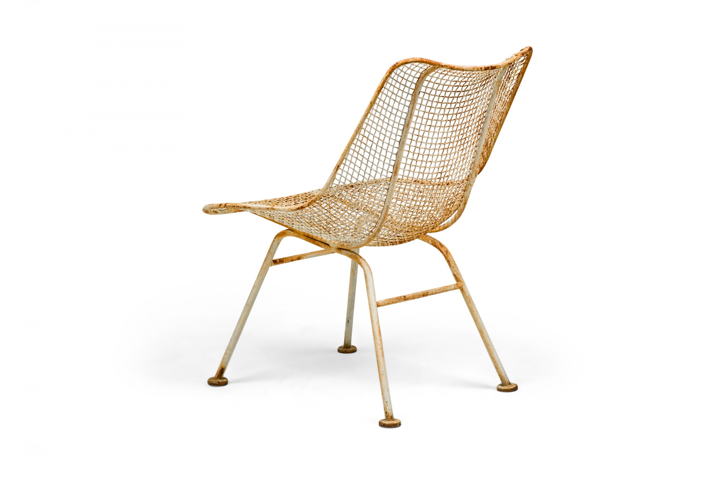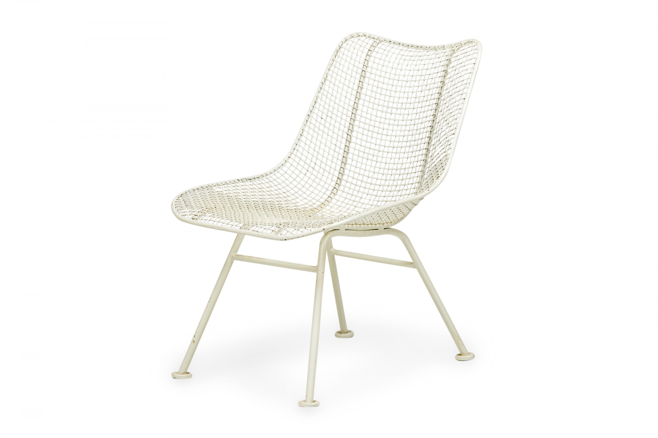SET of 7 Mid-Century American white mesh low dining chairs made from wrought iron and woven steel for indoor and/or outdoor use (RUSSELL WOODARD)(PRICED AS SET)(Other examples as set of 6 with 2 arms: DUF0815).