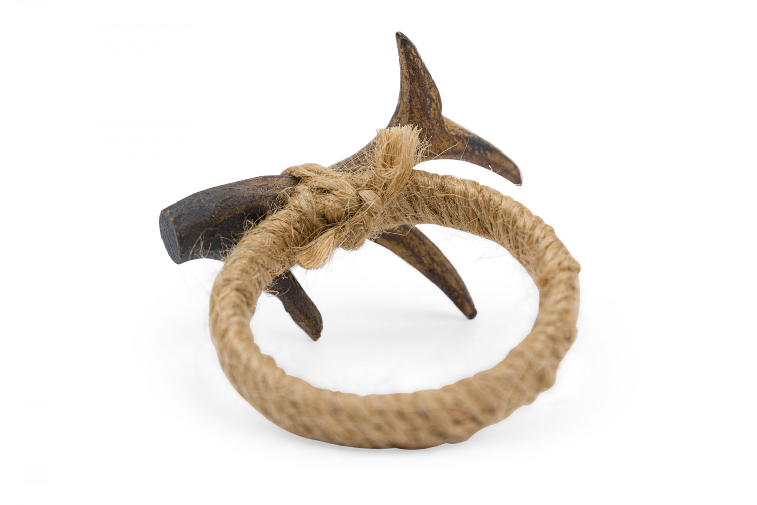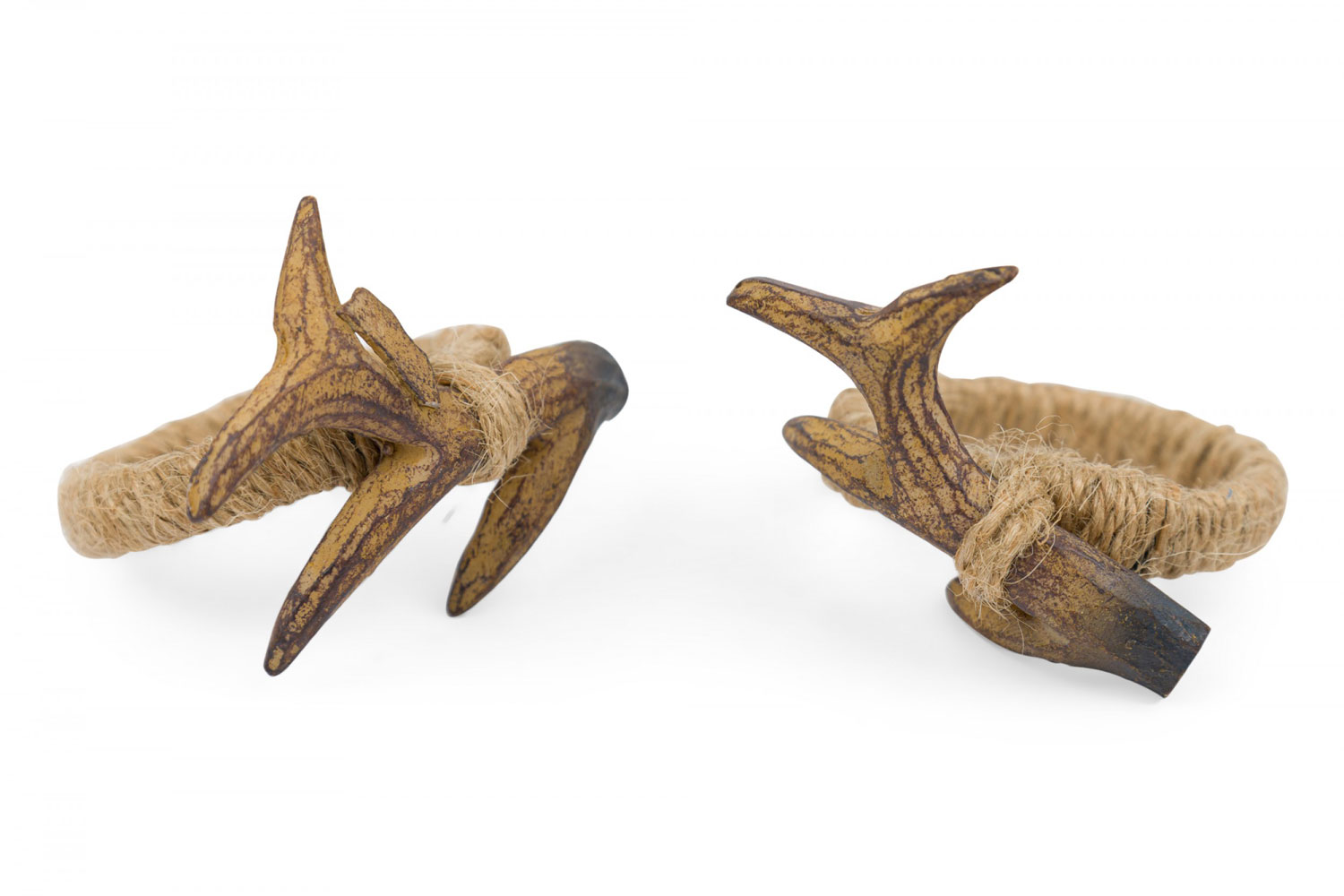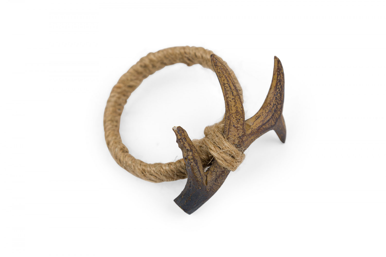 Set of 8 Contemporary Rustic Rope and Mini Faux Antler Napkin Rings