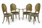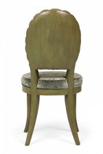 Set of 8 Italian Grotto Mid-Century Carved Wood Green Upholstered Shellback Dining Chairs