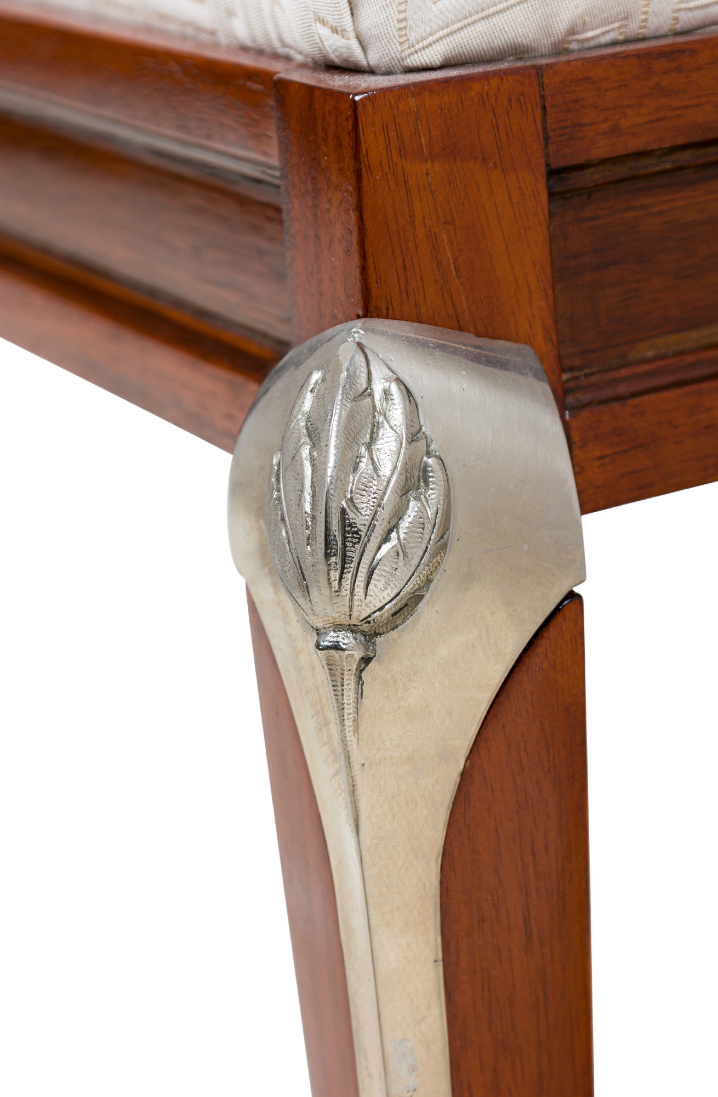Set of 8 Jean Pascaud French Mid-Century Mahogany and Silvered Bronze Upholstered Dining Chairs