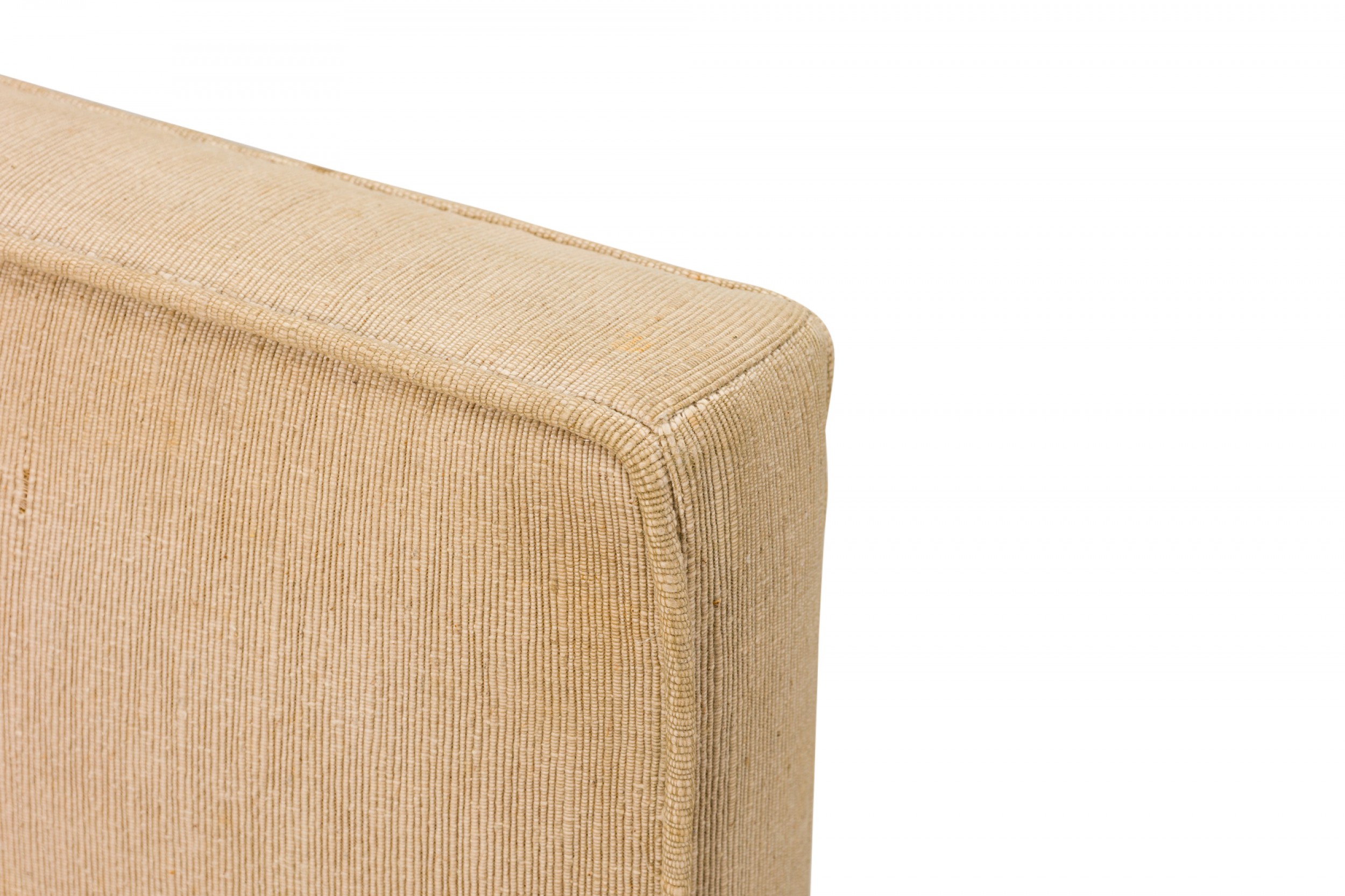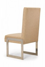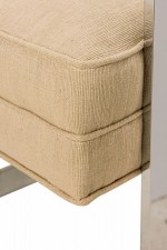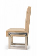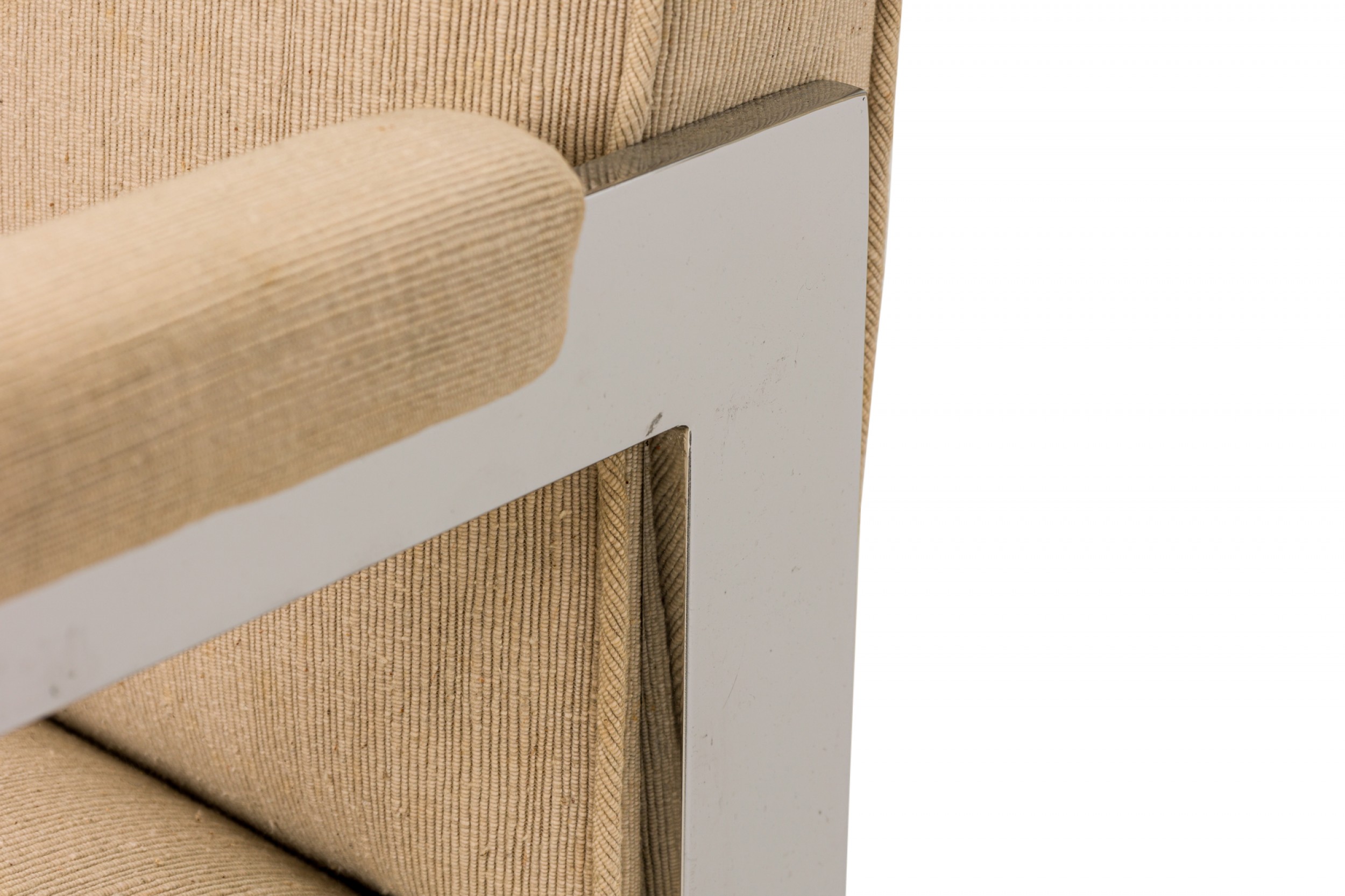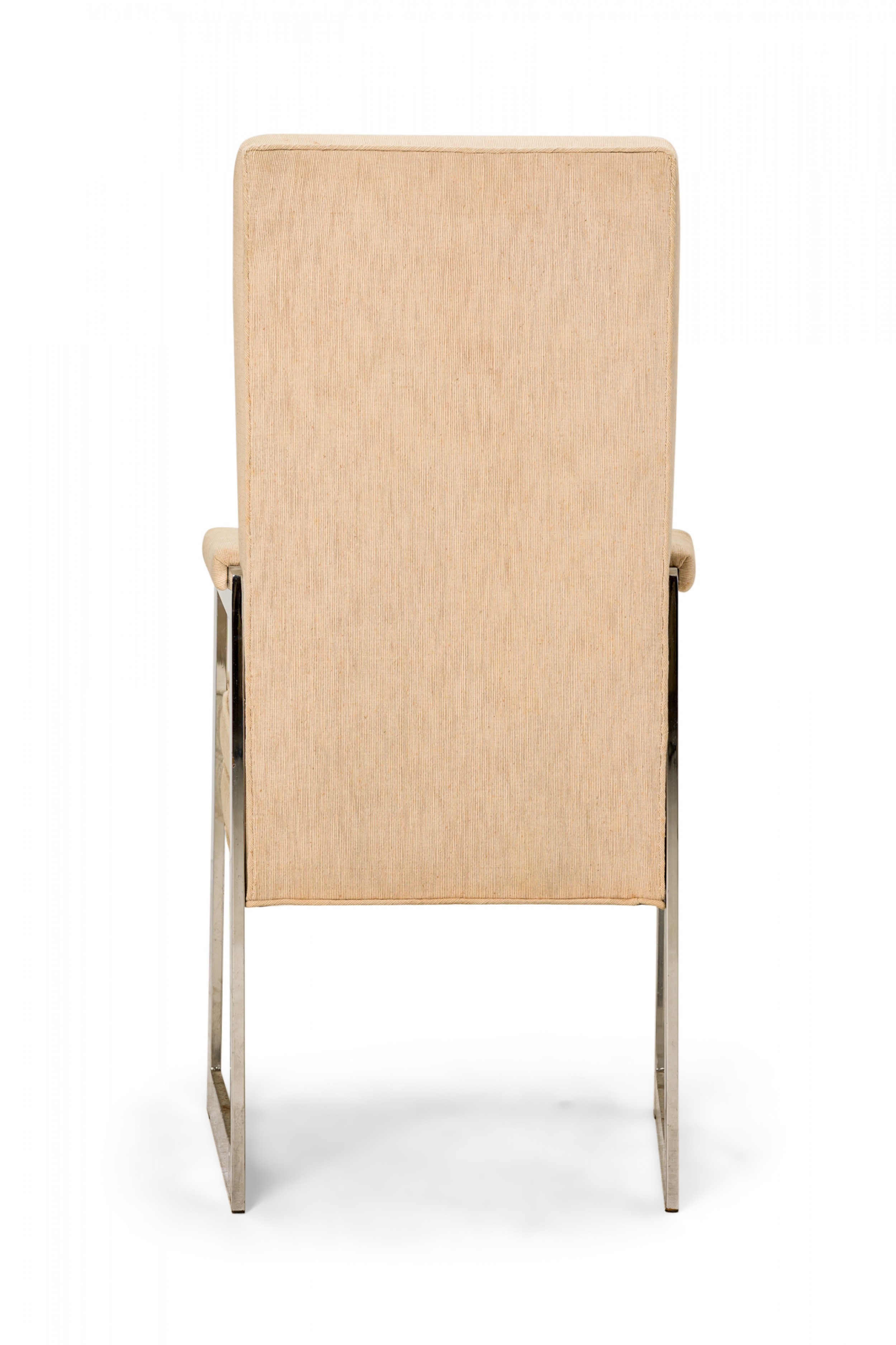 SET of 8 American Mid-Century dining chairs comprised of two armchairs and six side chairs upholstered in beige fabric with matching seat covers, and resting on square polished aluminum legs.(PACE COLLECTION)(PRICED AS SET)(Available individually: Armchairs: DUF0578A, Side Chairs: DUF0578B)