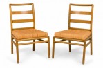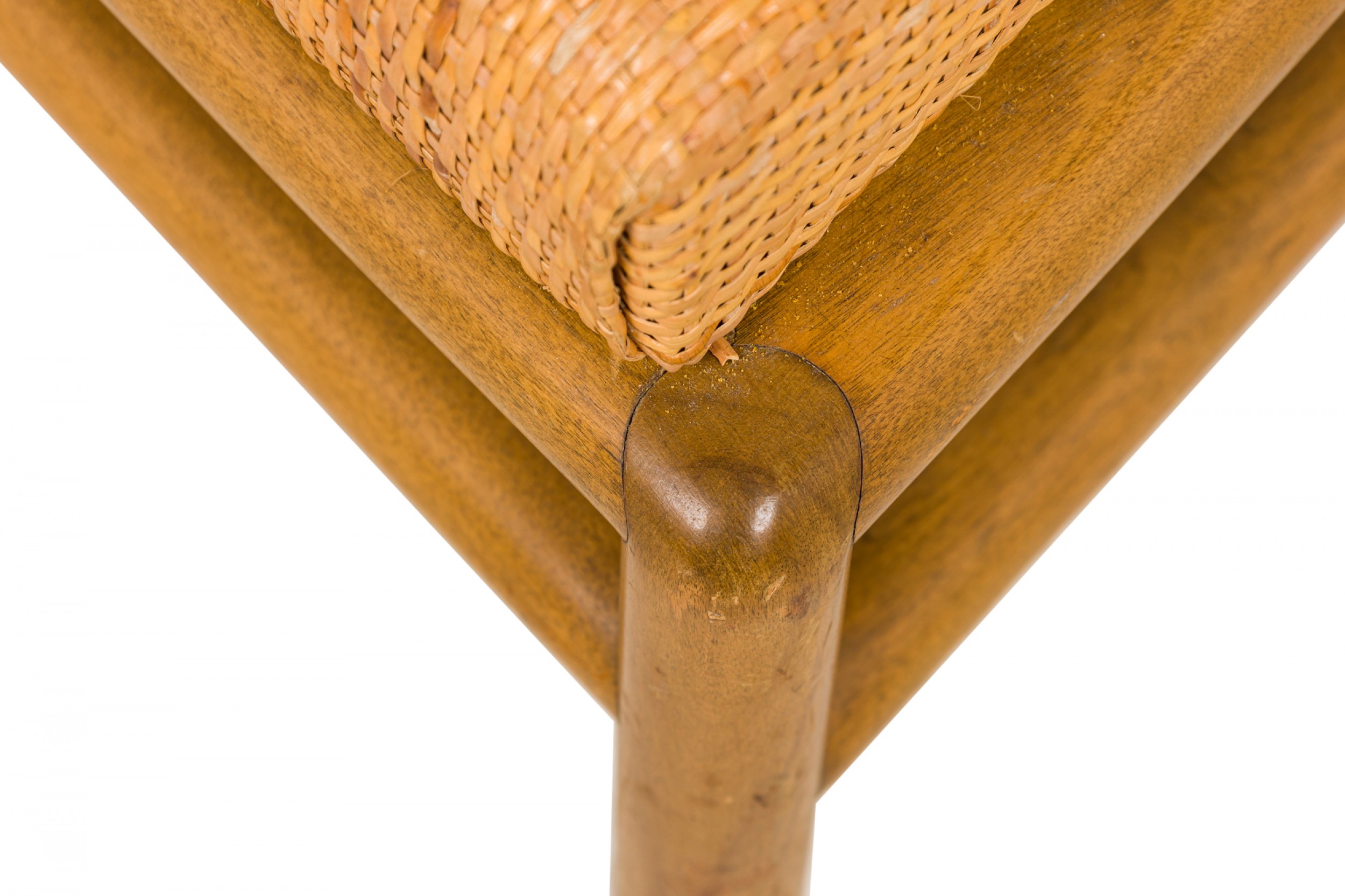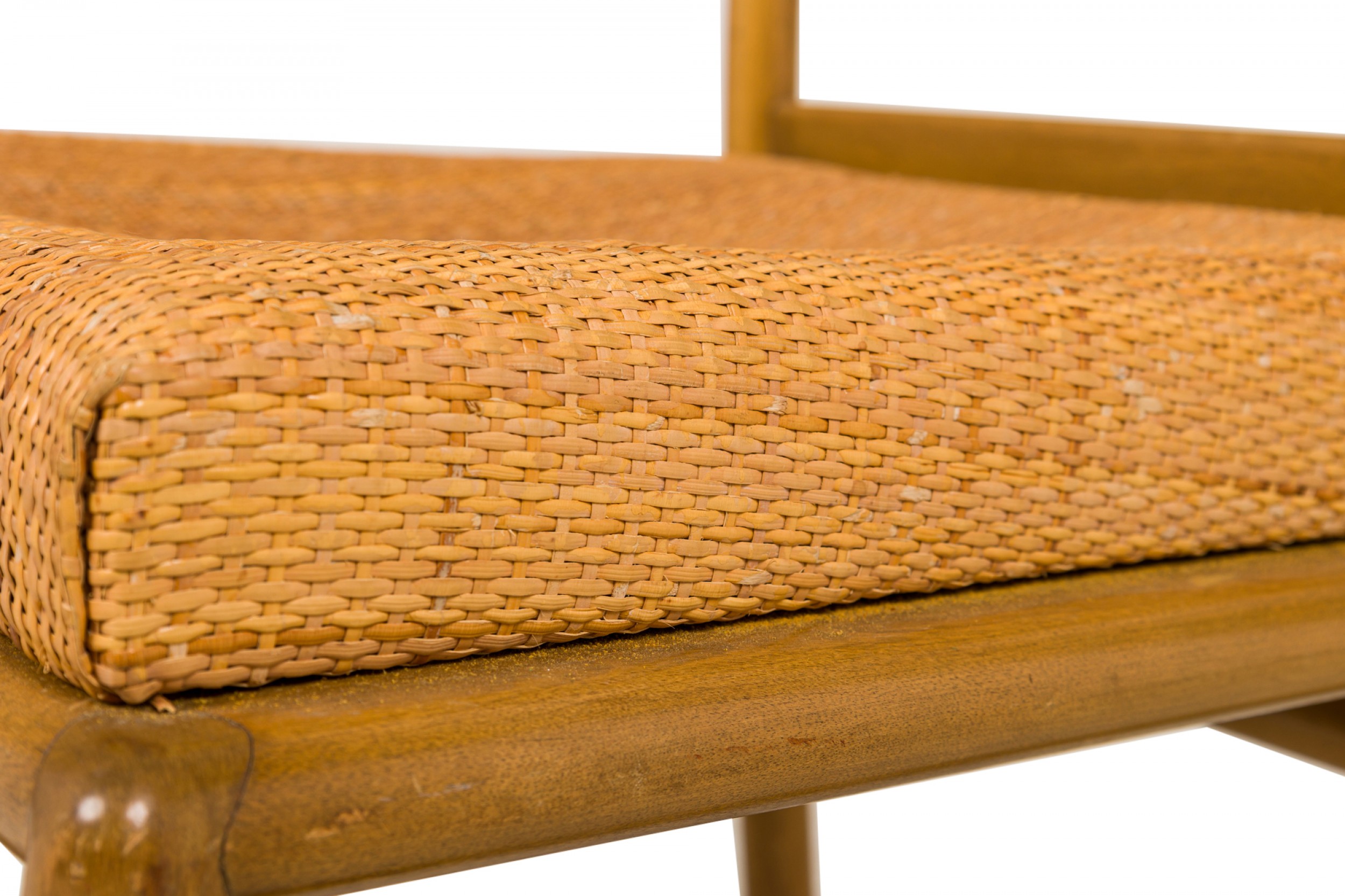 SET of 8 American Mid-Century dining side chairs with light wooden frames, woven rattan seats, and ladder backs, resting on four dowel legs with stretchers. (T.H. ROBSJOHN-GIBBINGS FOR WIDDICOMB FURNITURE COMPANY)(PRICED AS SET)