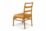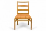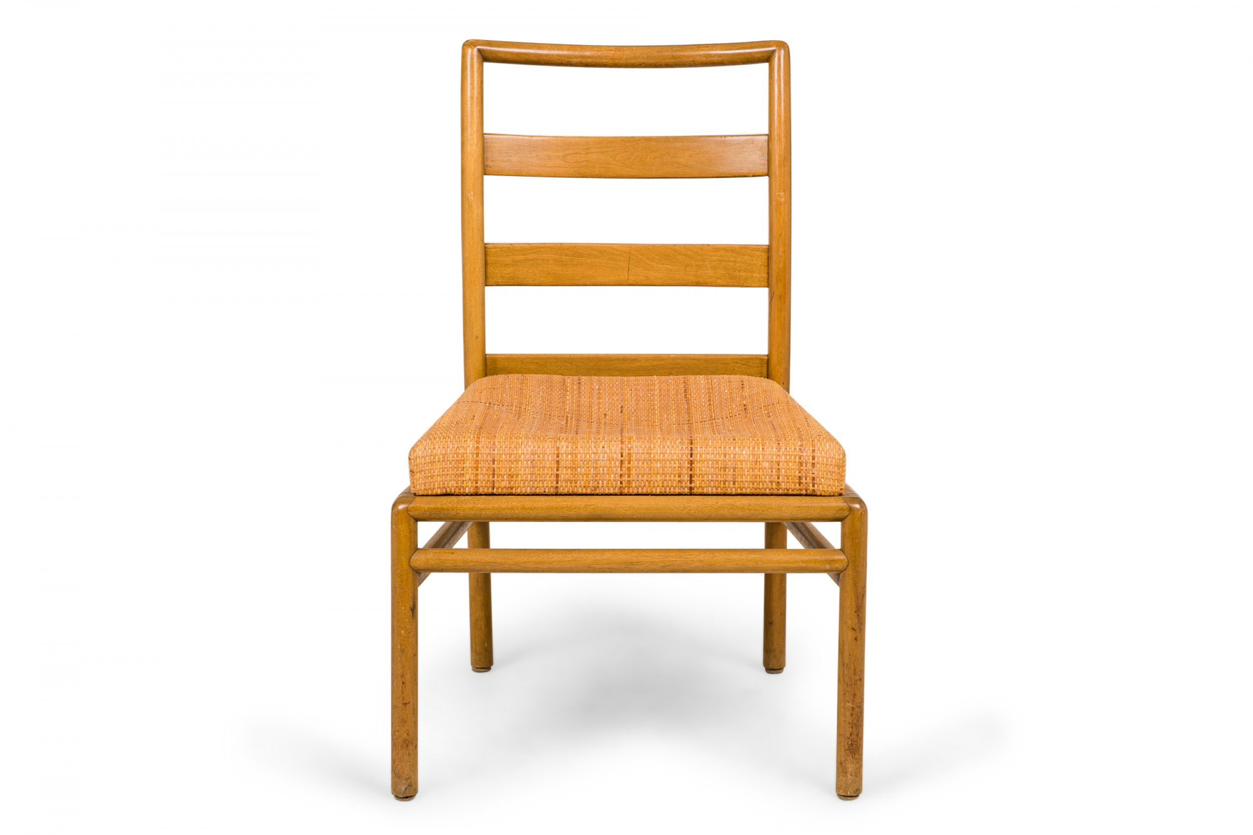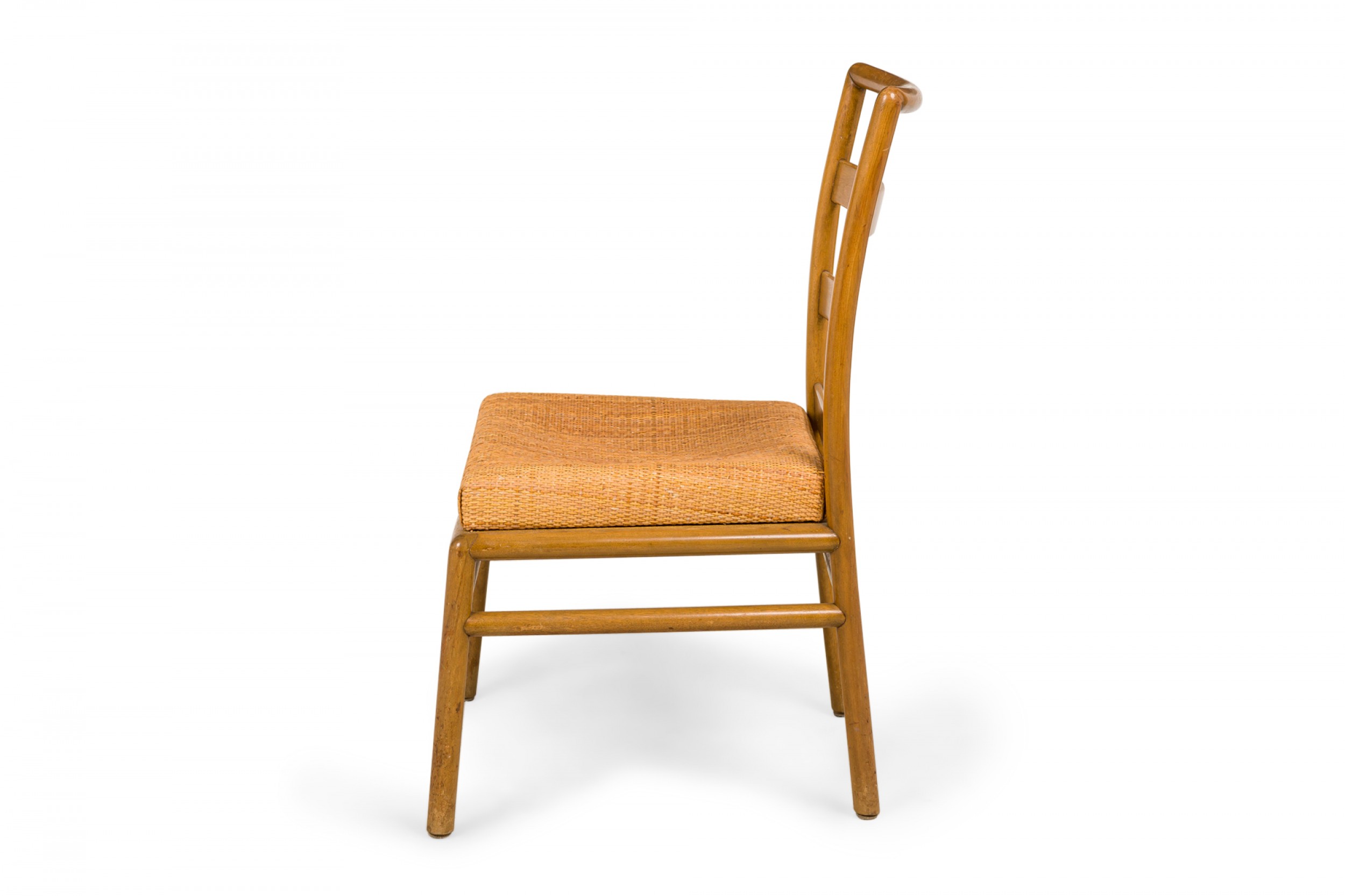 SET of 8 American Mid-Century dining side chairs with light wooden frames, woven rattan seats, and ladder backs, resting on four dowel legs with stretchers. (T.H. ROBSJOHN-GIBBINGS FOR WIDDICOMB FURNITURE COMPANY)(PRICED AS SET).