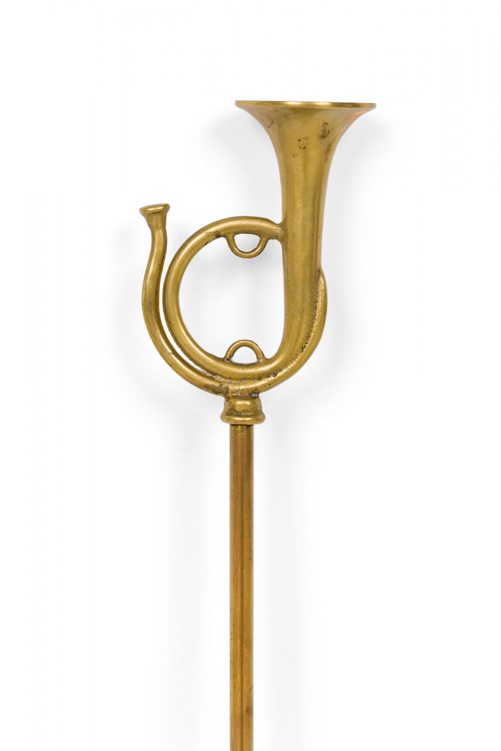 Set of English Country Style Hunting Horn Finial Brass Fire Tools