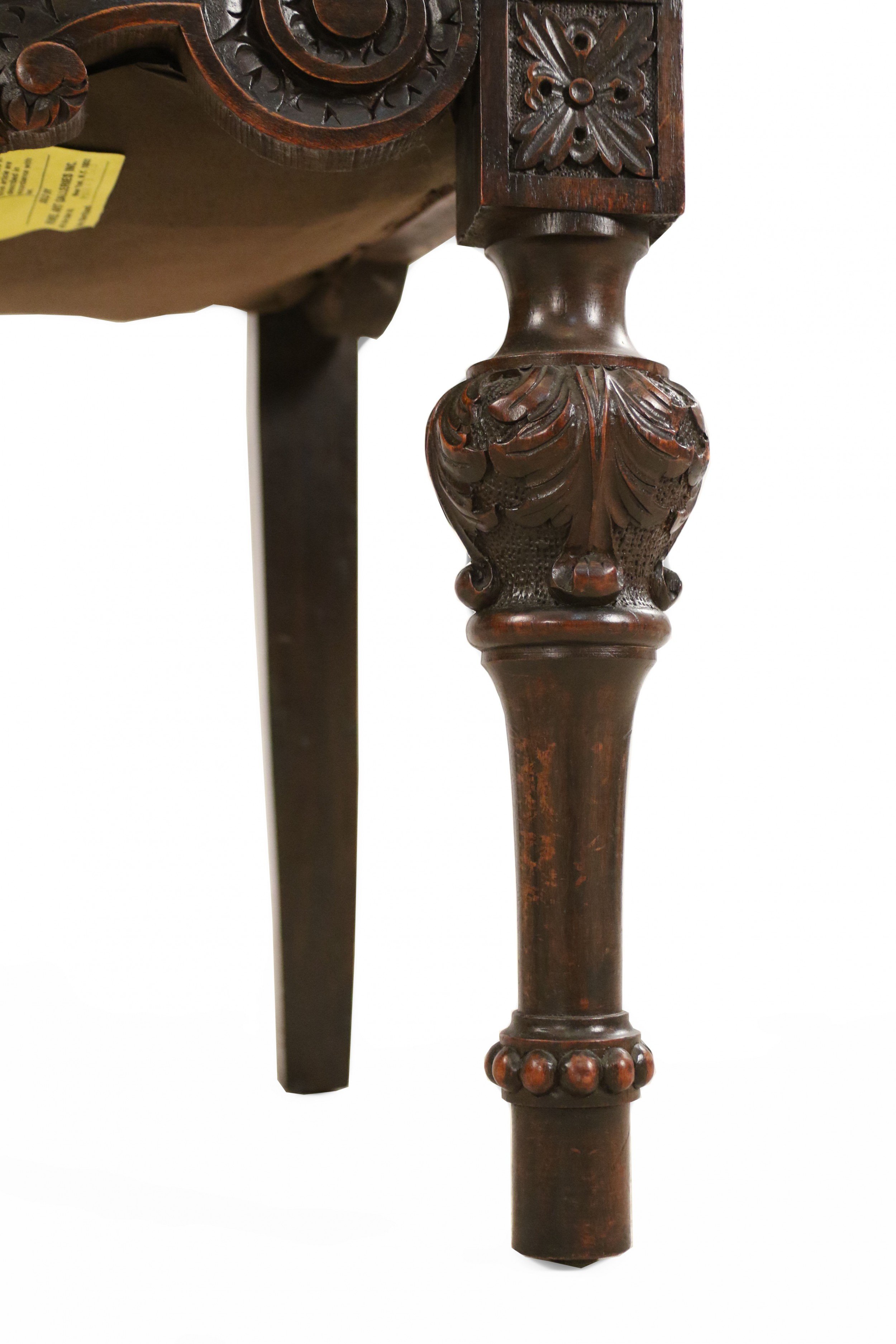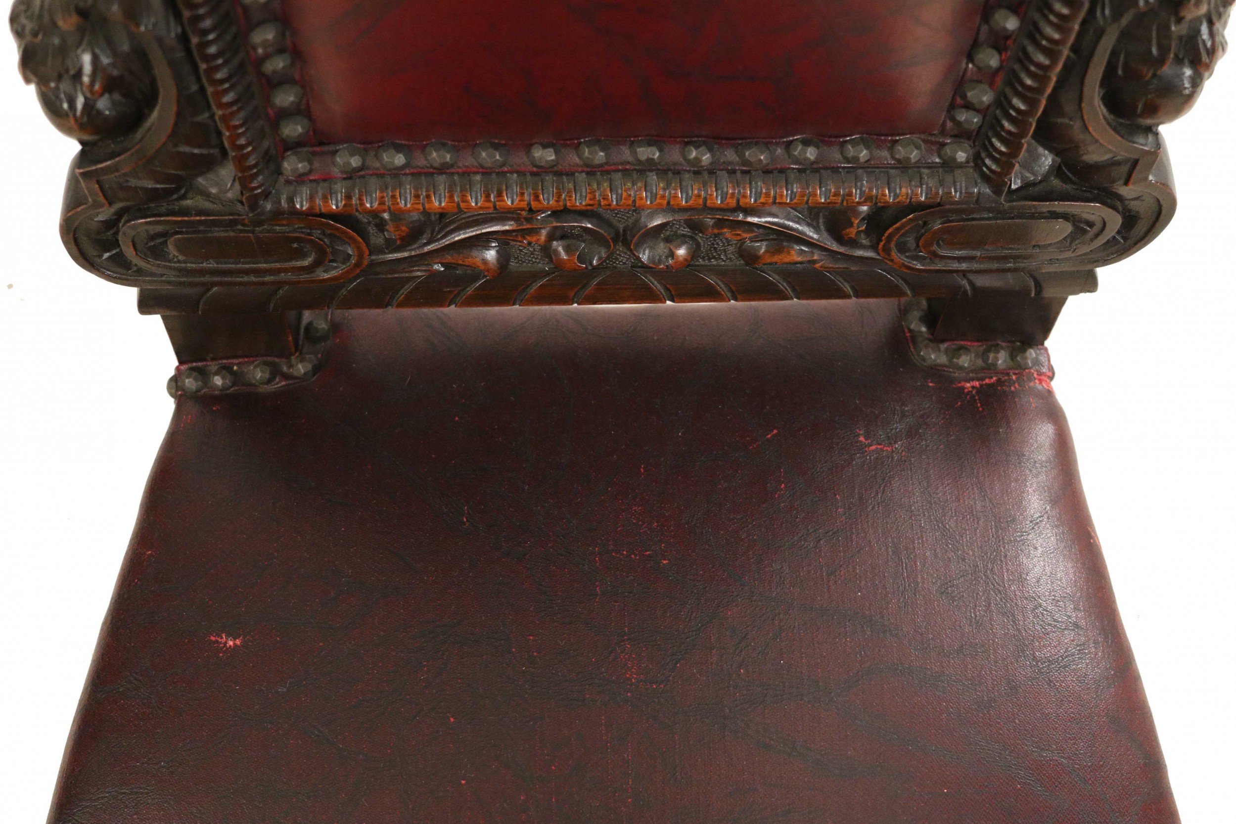 Style: Italian Materials & Techniques: Carved, leather, walnut Category: Seating, Office/Library, Dining Room Condition: Antique condition