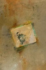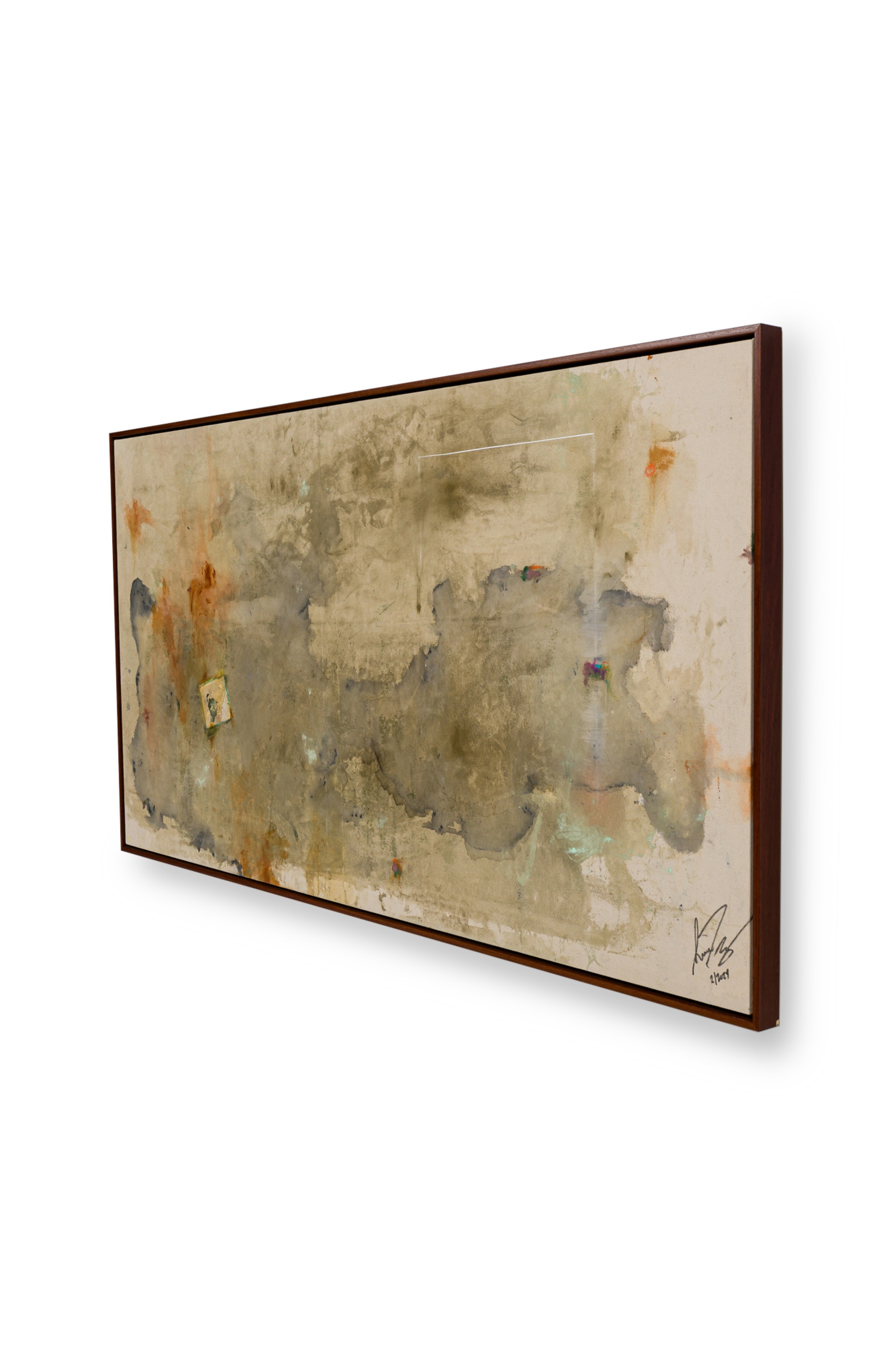 American contemporary abstract expressionist composition in a color field of muted earth tones of mixed media on canvas (Signed: Lower Right) (SHARONE HALEVY).