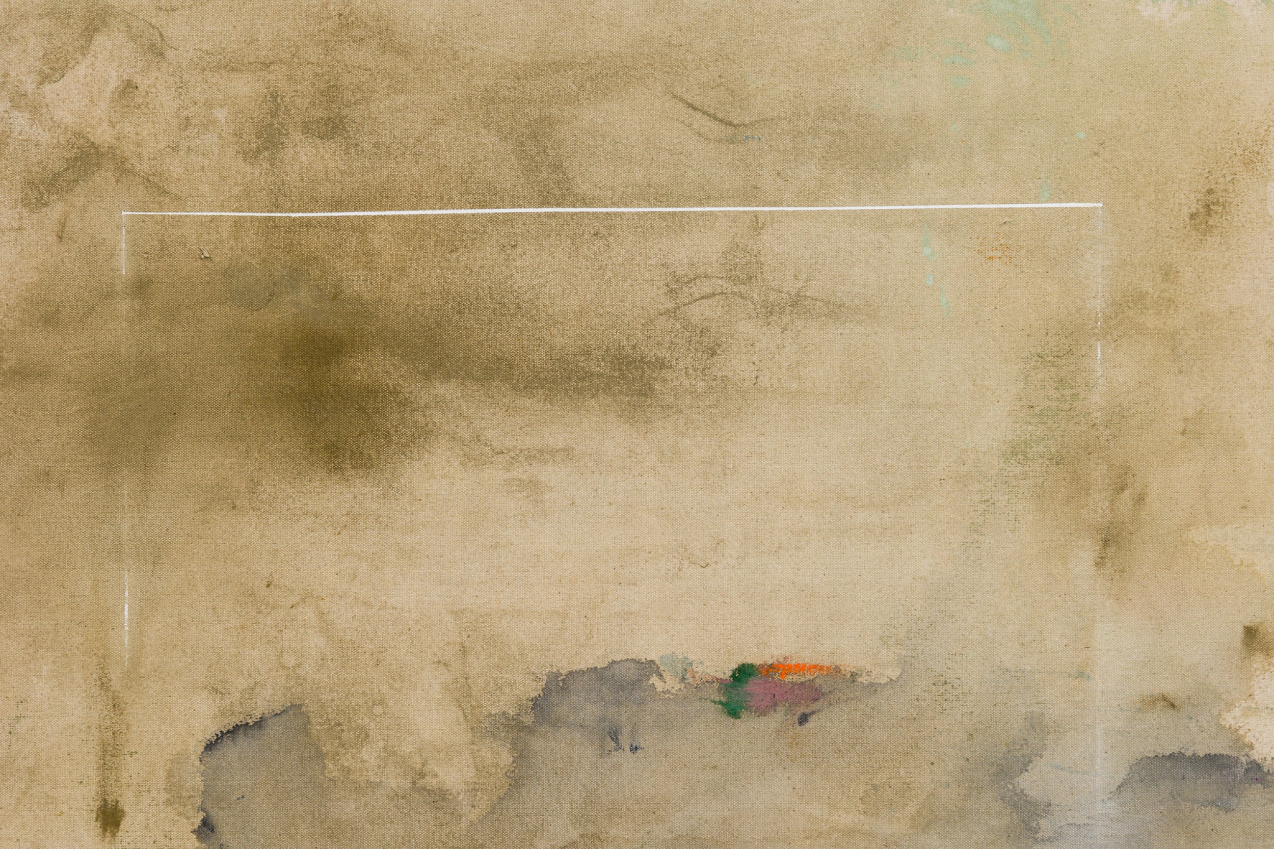American contemporary abstract expressionist composition in a color field of muted earth tones of mixed media on canvas (Signed: Lower Right) (SHARONE HALEVY)