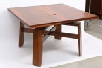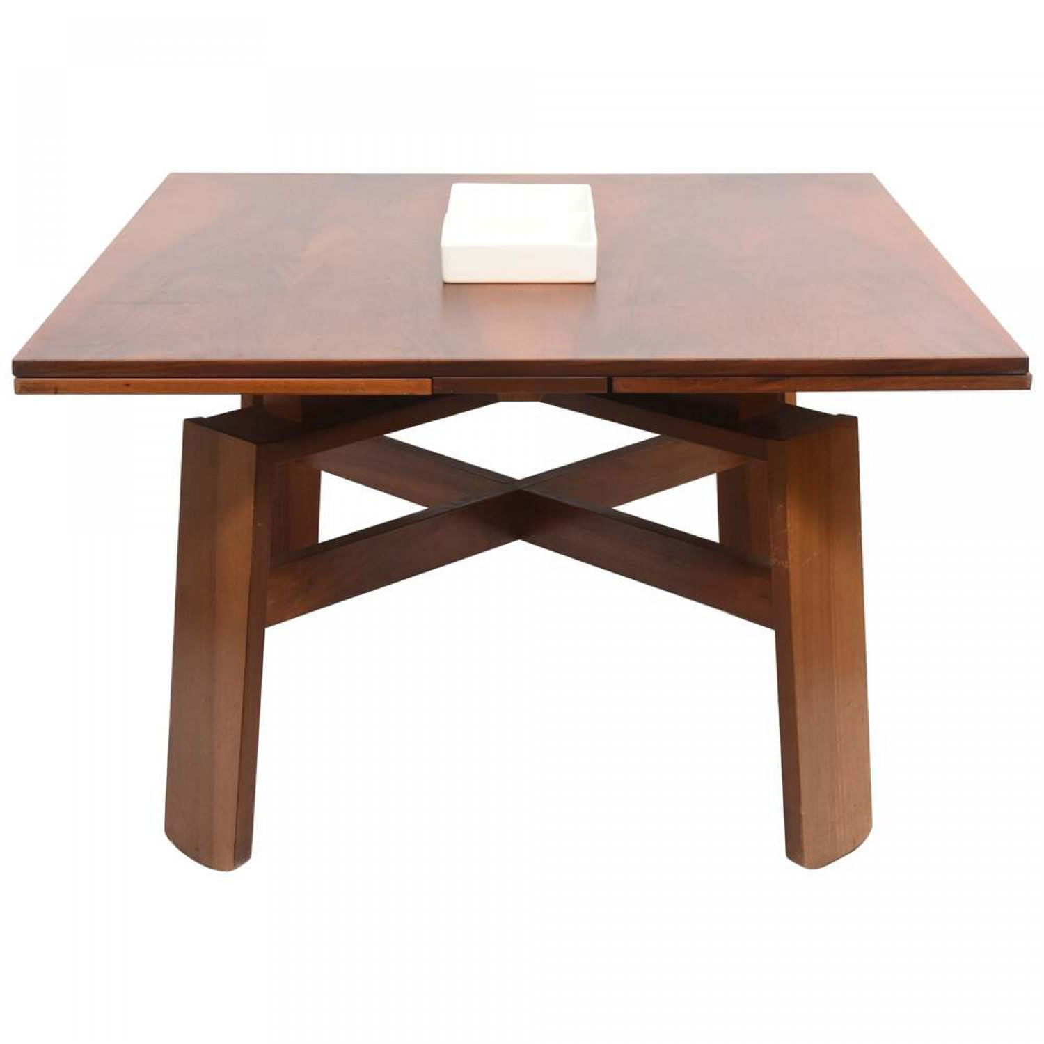 Italian Mid-Century Modern extension table with two fold out leaves resting on four wide legs connected with an x-shaped stretcher.(SILVIO COPPOLA)