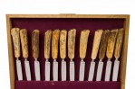 Solingen Germany Vintage Horn and Steel Flatware Set in Wooden Box