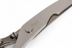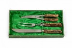 3-Piece German Rustic stainless steel and horn carving utensil set comprised of a carving knife, carving fork, and shears, in a green satin-lined box. (stampled, OTHELLO SOLINGEN ROSTFREI)(PRICED AS SET)(Similar piece: 063344).
