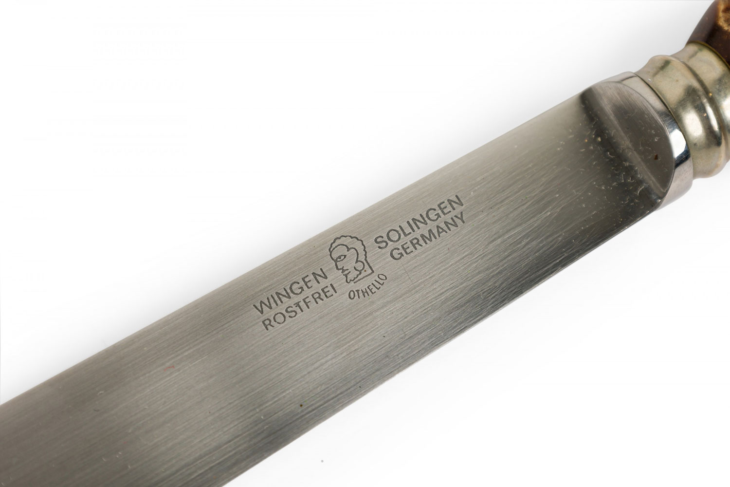 Solingen Othello Germany 3-Piece Rustic Horn Handle Silver Carving Utensil Set