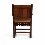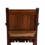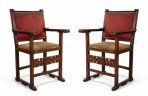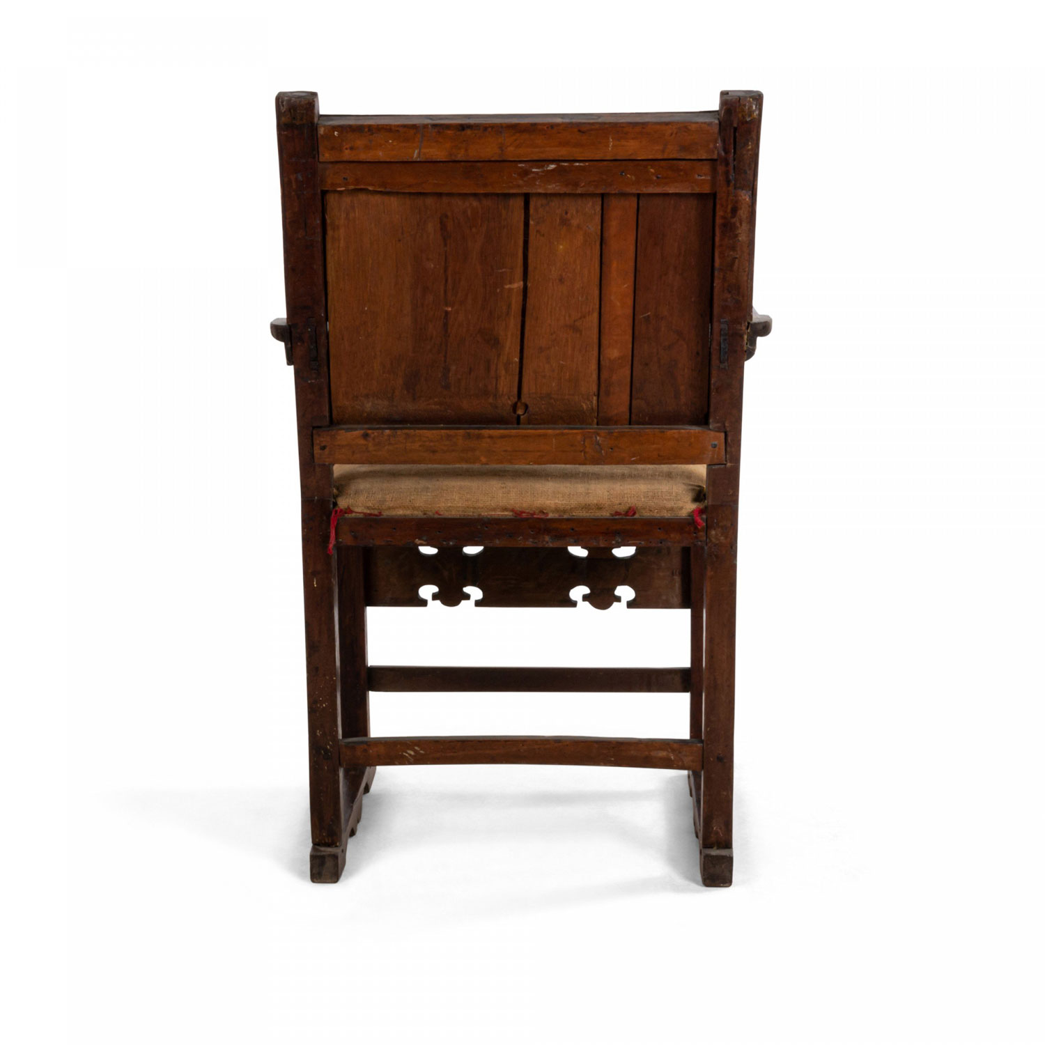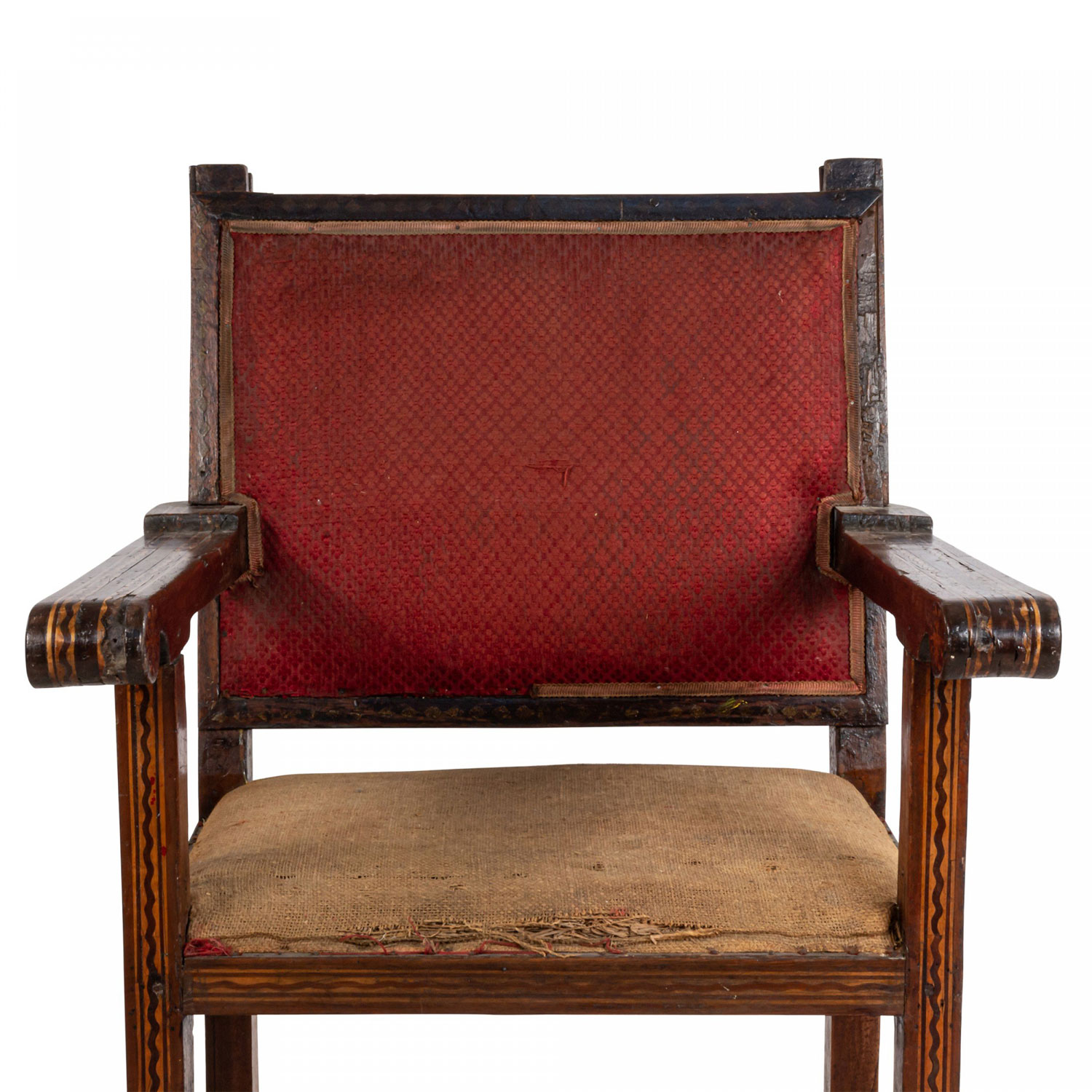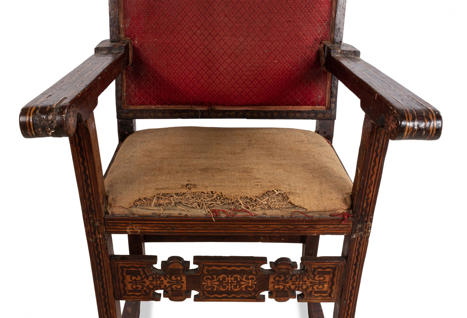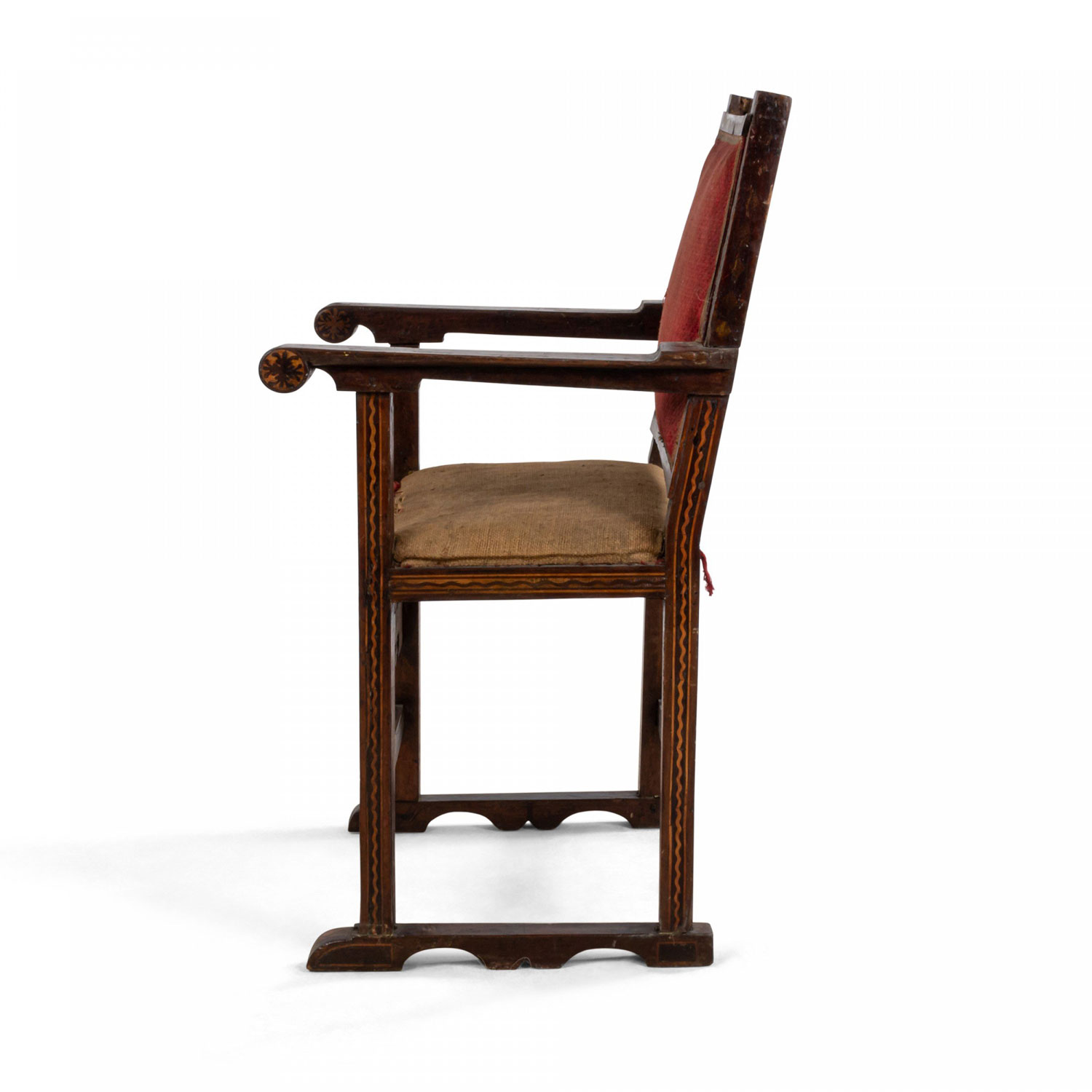 PAIR of Spanish Colonial (South American possibly 17th Cent) walnut Armchairs with a square back and from stretcher with a geometric inlaid design.