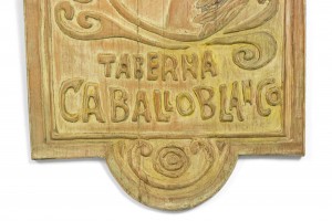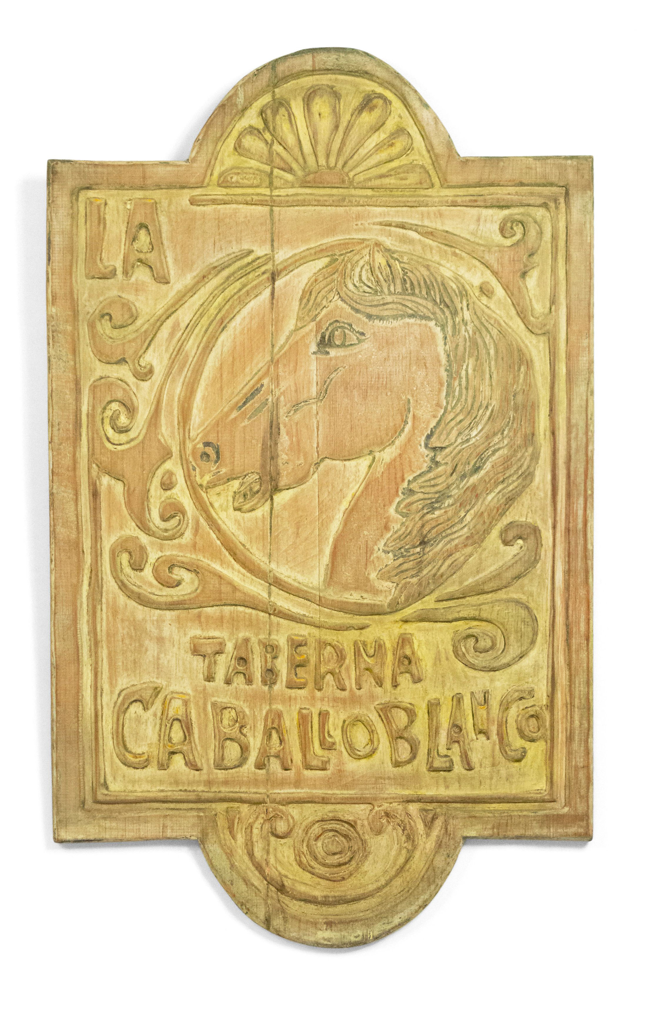 Spanish Provincial style (20th Century) stripped horse head wall plaque/sign (La Taberna Caballoblanco) (Related Item: 049724I ).