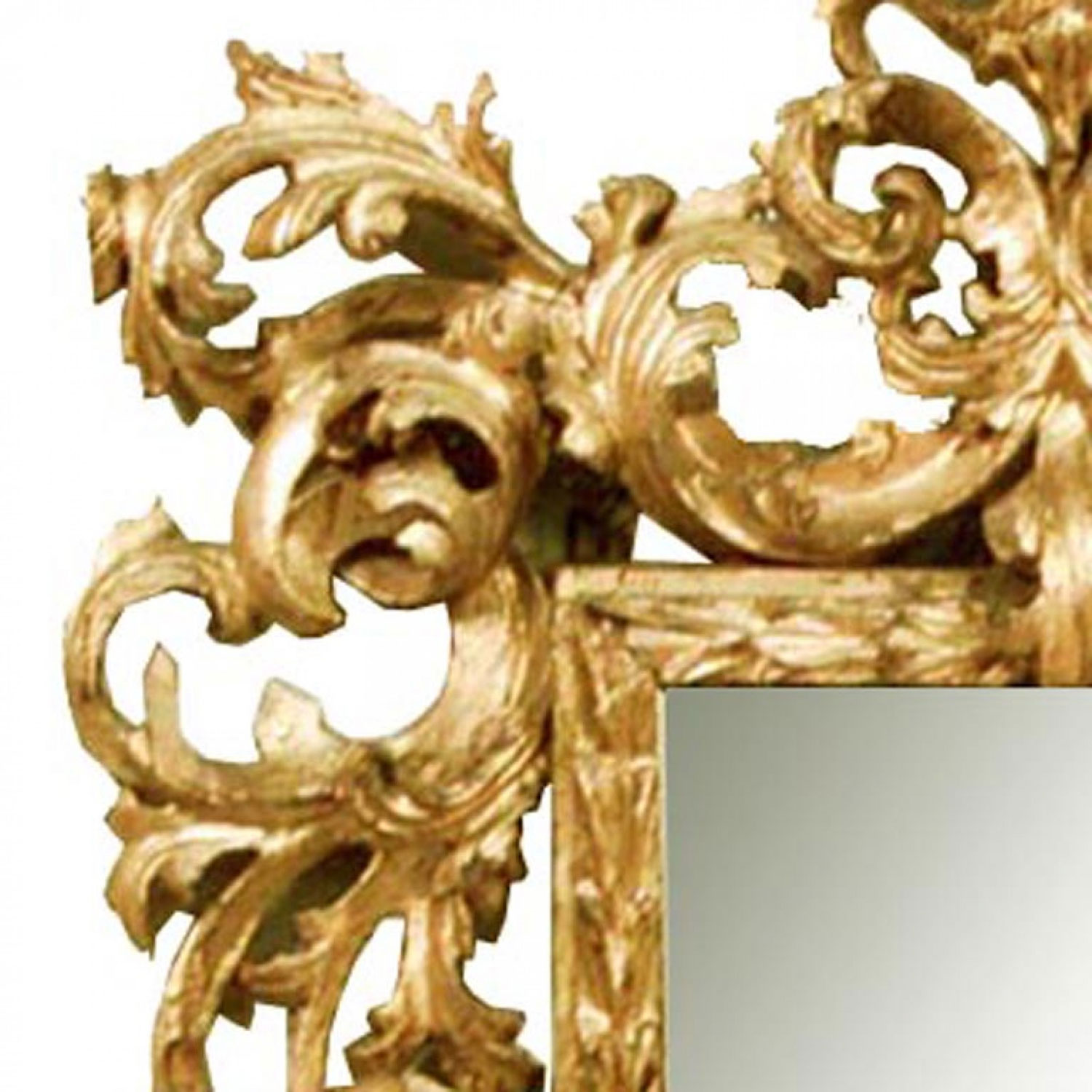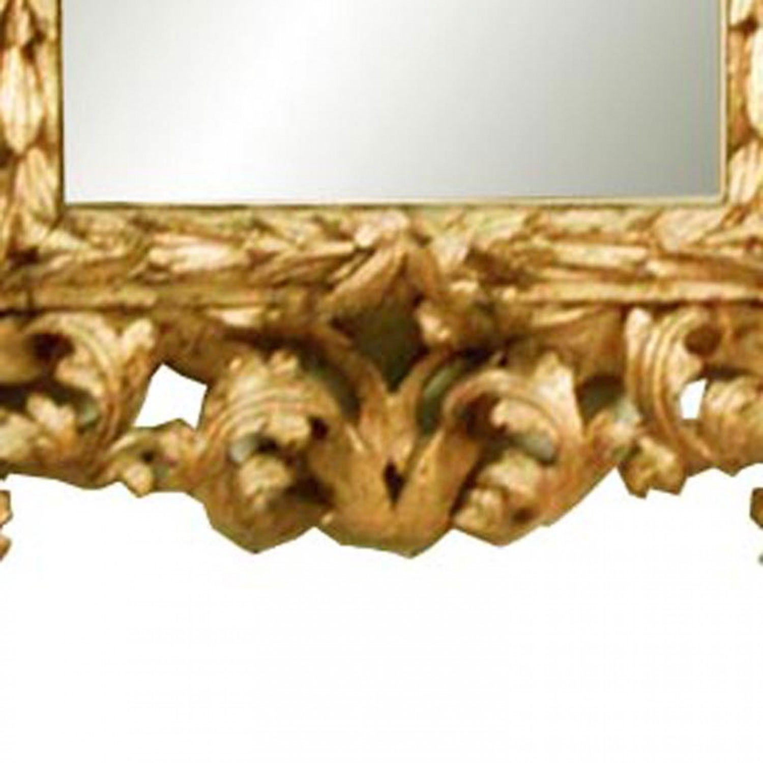 Spanish Rococo-style (19th Century) giltwood wall mirror with rectangular plate surrounded by carved scrolling acanthus leaves..