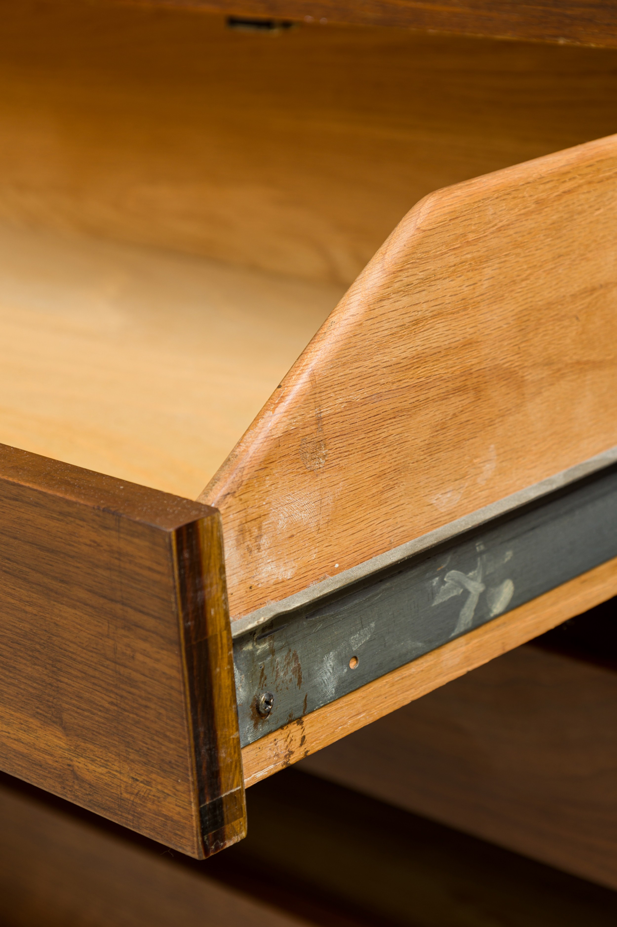 Style: Mid-Century Materials & Techniques: Carved, walnut, wood Category: Bedroom, Dining Room Condition: Minor wear consistent with age and use. Good; Wear consistent with age and use