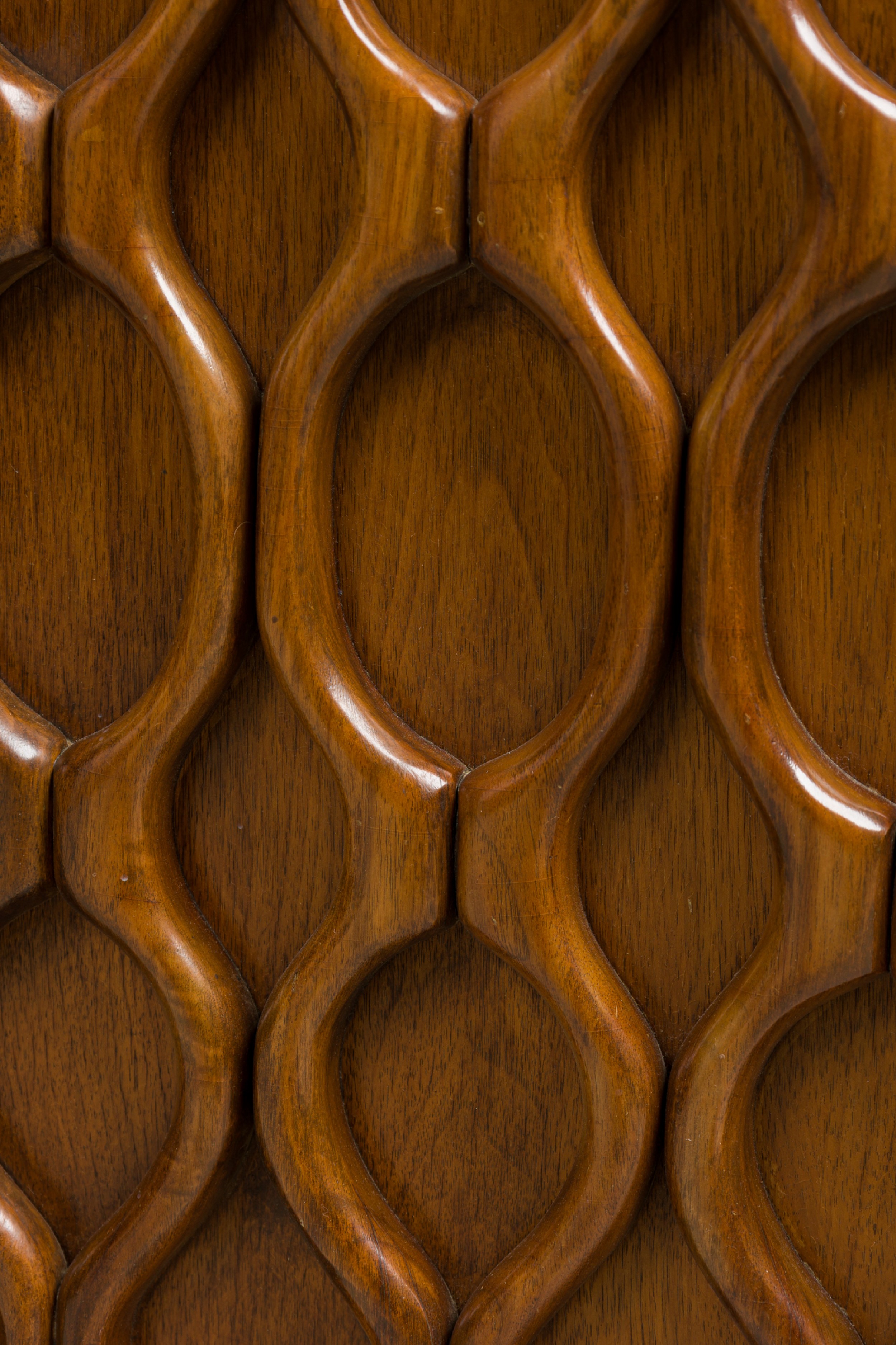 Stanley Furniture American Mid-Century Modern Walnut Geometric Carved Front Sideboard / Credenza