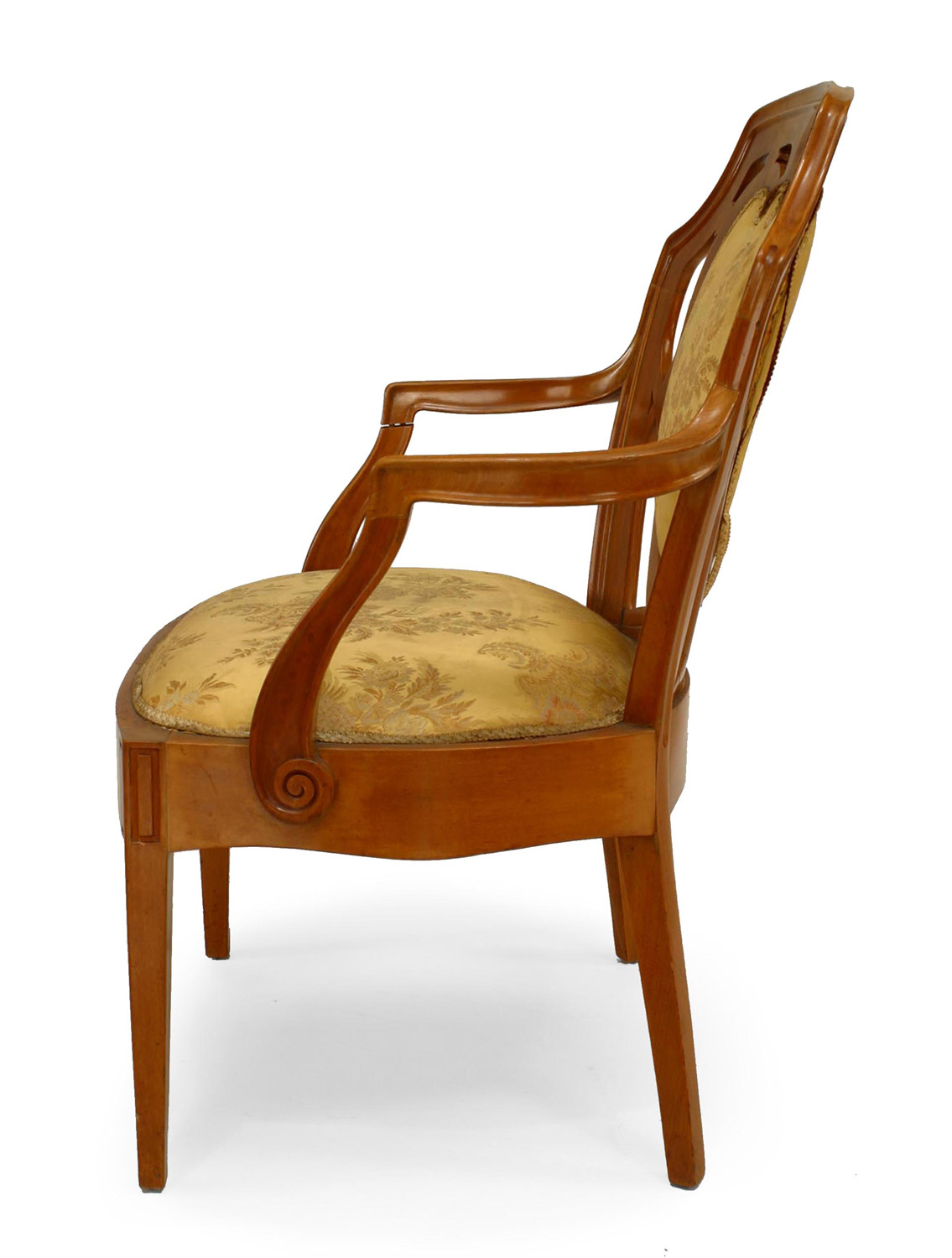 Set of 4 Swedish Biedermeier Gold Floral Arm Chair